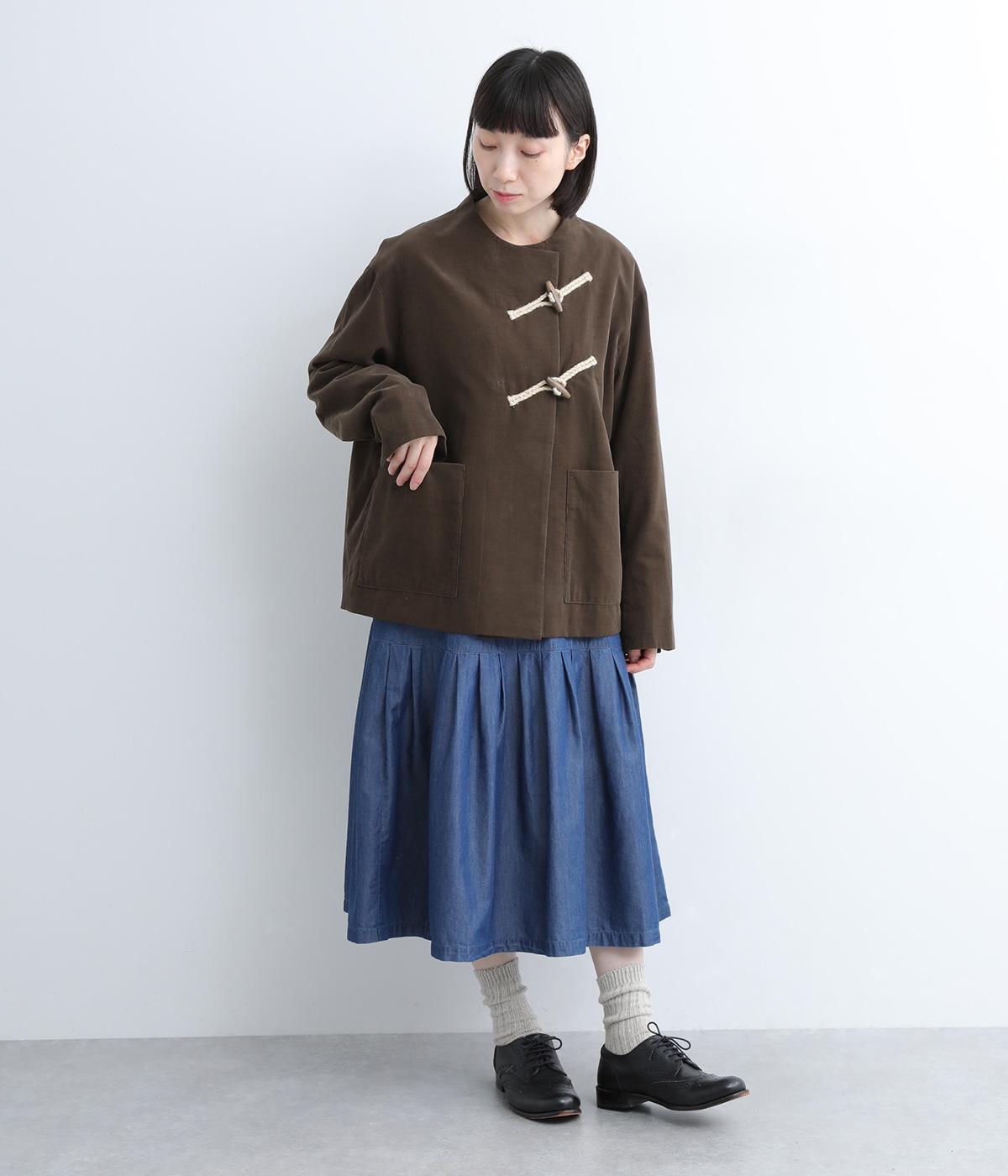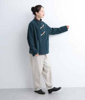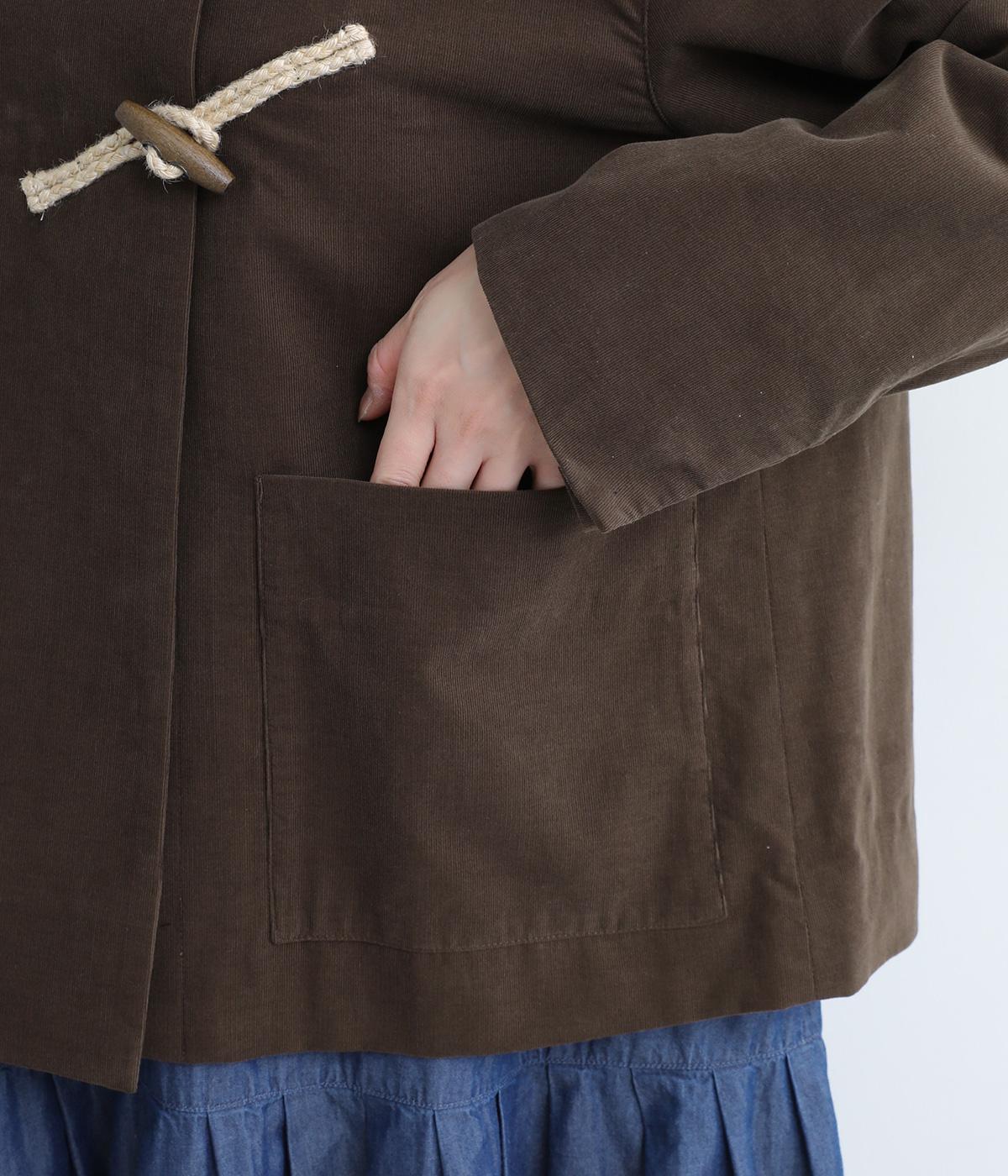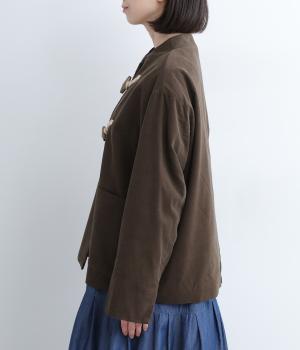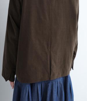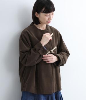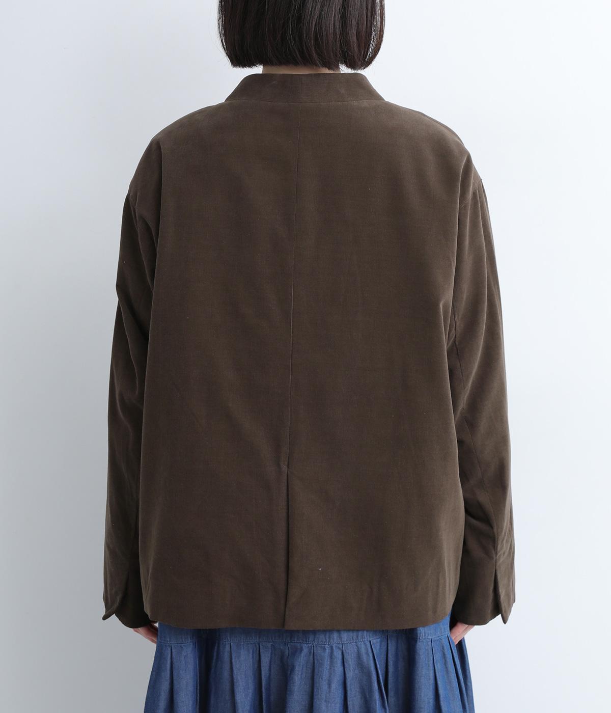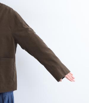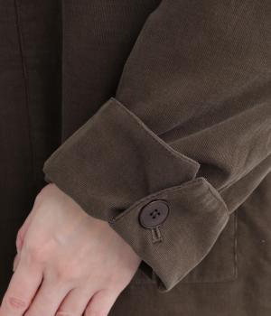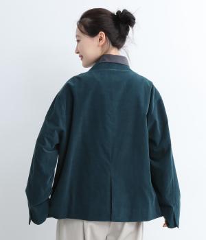 畝幅がとても細く上品な印象を与えるコットンコーデュロイを使用。液流染色にタンブラー加工で、やわらかな風合いにふっくらとした仕上がり。総裏地つきで、通りをよくするため袖裏にはキュプラを。