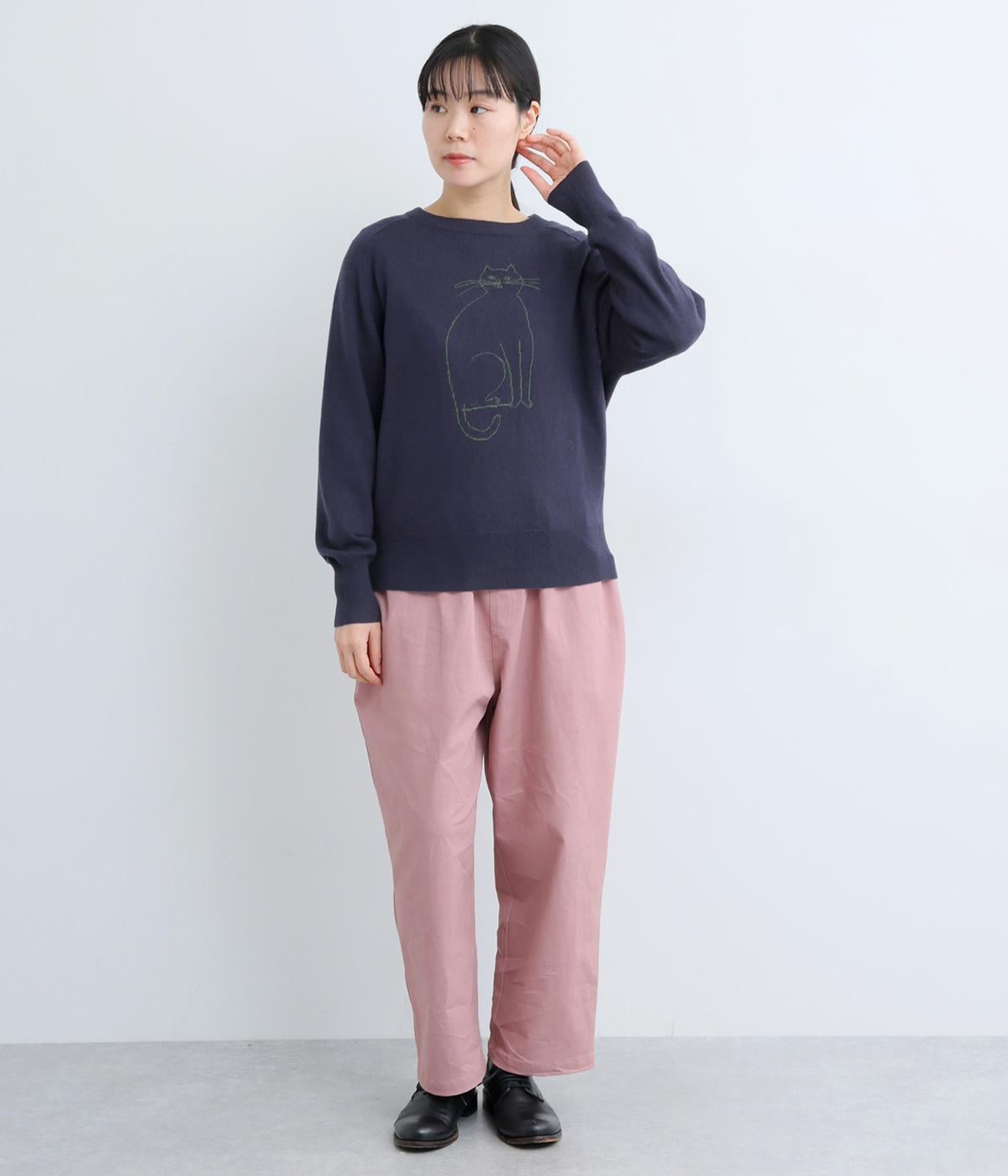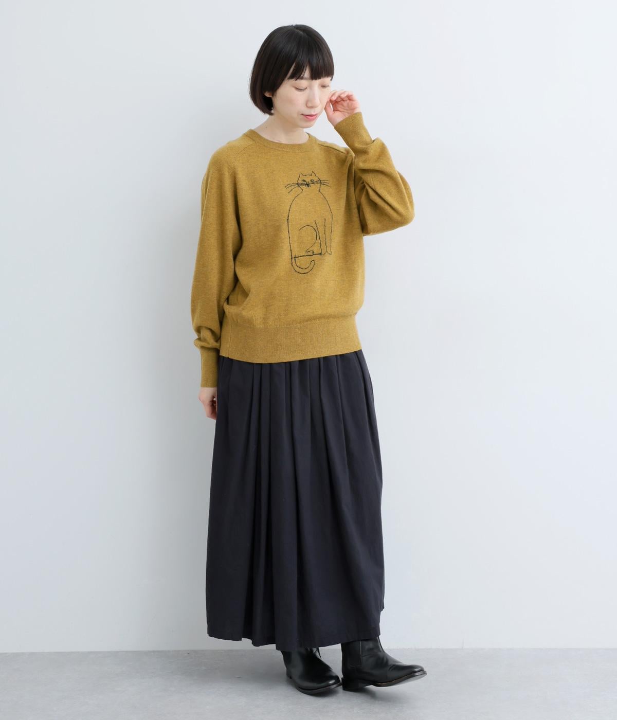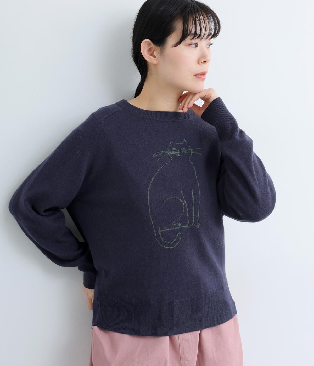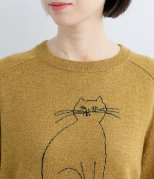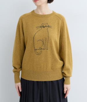アーティスト・「TORANEKOBONBON」(トラネコボンボン)とのコラボインターシャニットです。フロントは座っているネコのイラスト、バックはLOISIRのエンブレムが入っています。シンプルなプルオーバー型で幅広いスタイルに合わせていただけます。