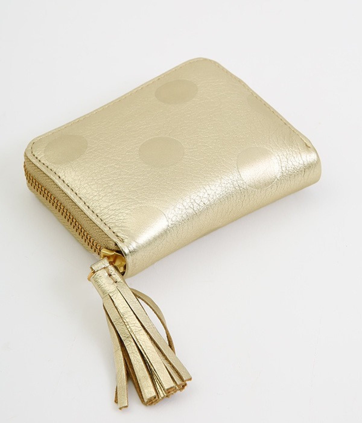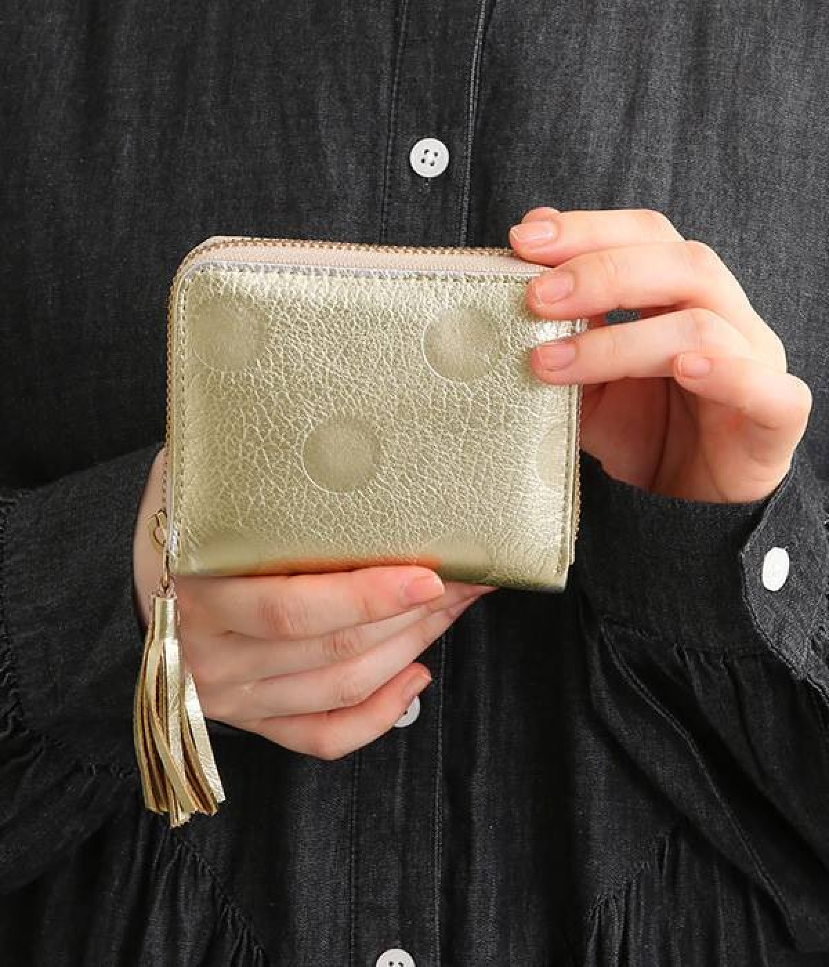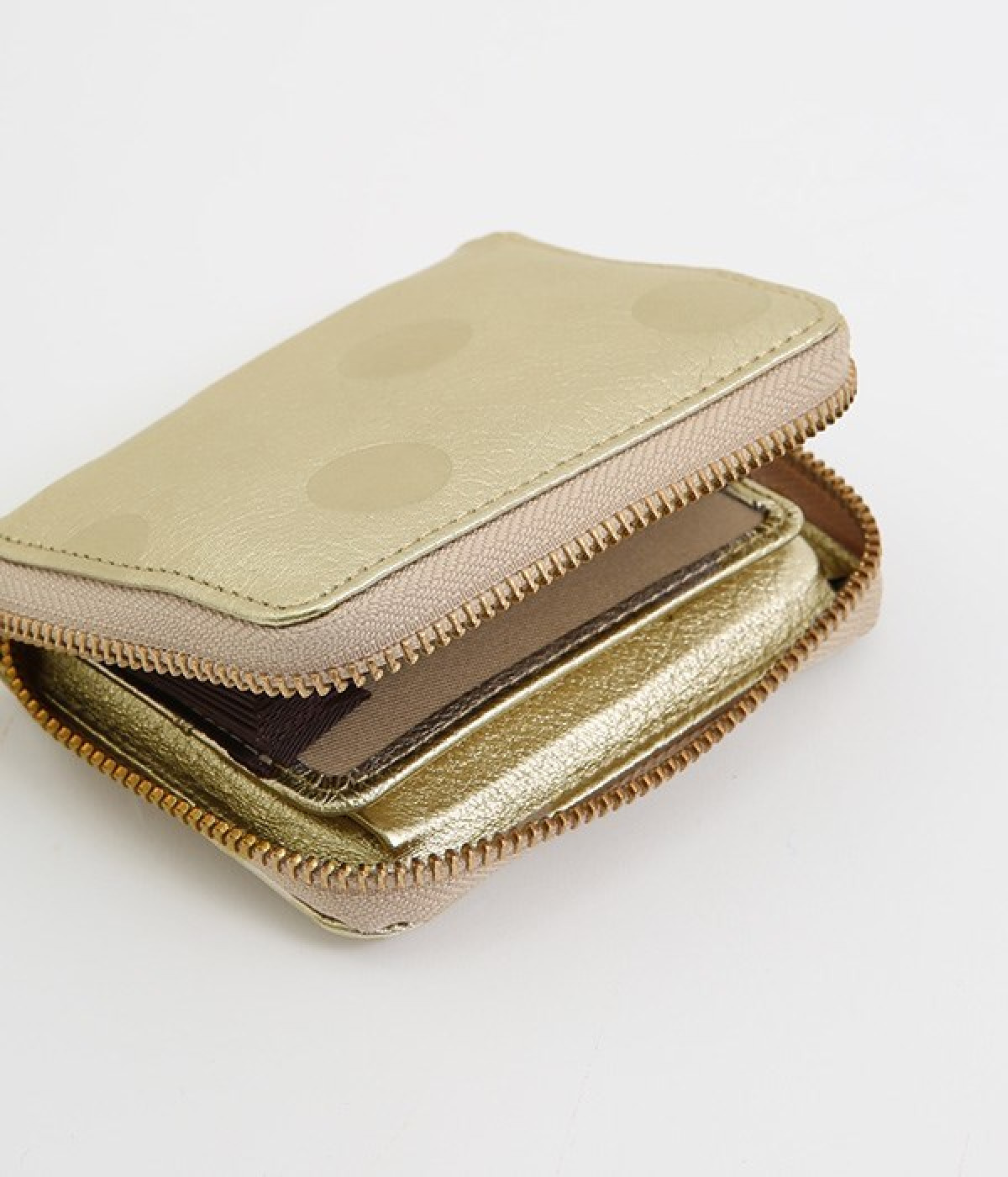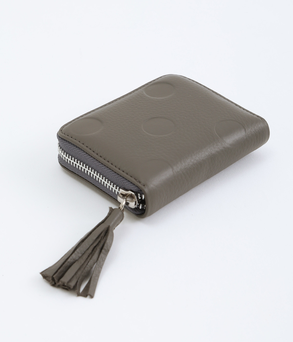 カード、お札、小銭をコンパクトに収納する、長財布とミニ財布の良いところを掛け合わせたウォレットです。小荷物派にうれしい、ミニショルダーやハンドバッグ、ポケットにも入るサイズ設計。ドット型押しを施した牛革を使用しており、大人にふさわしいポップ感を表現しました。出し入れしやすいジャバラ式のカードポケットが備わり、カード類をコンパクトに収納可能。ジャバラポケット下はお札を折らずに収納できるよう、スリップ式になっているのもポイント。本体にスキミング防止シートが内蔵されており、安全面にも気配りを。箱入れでお届けするのでプレゼントにもおすすめです。