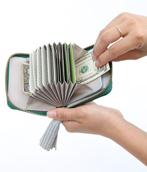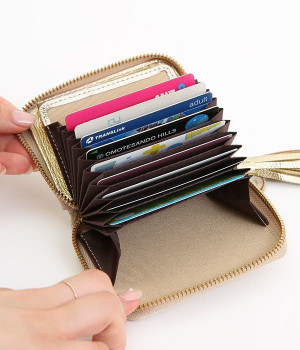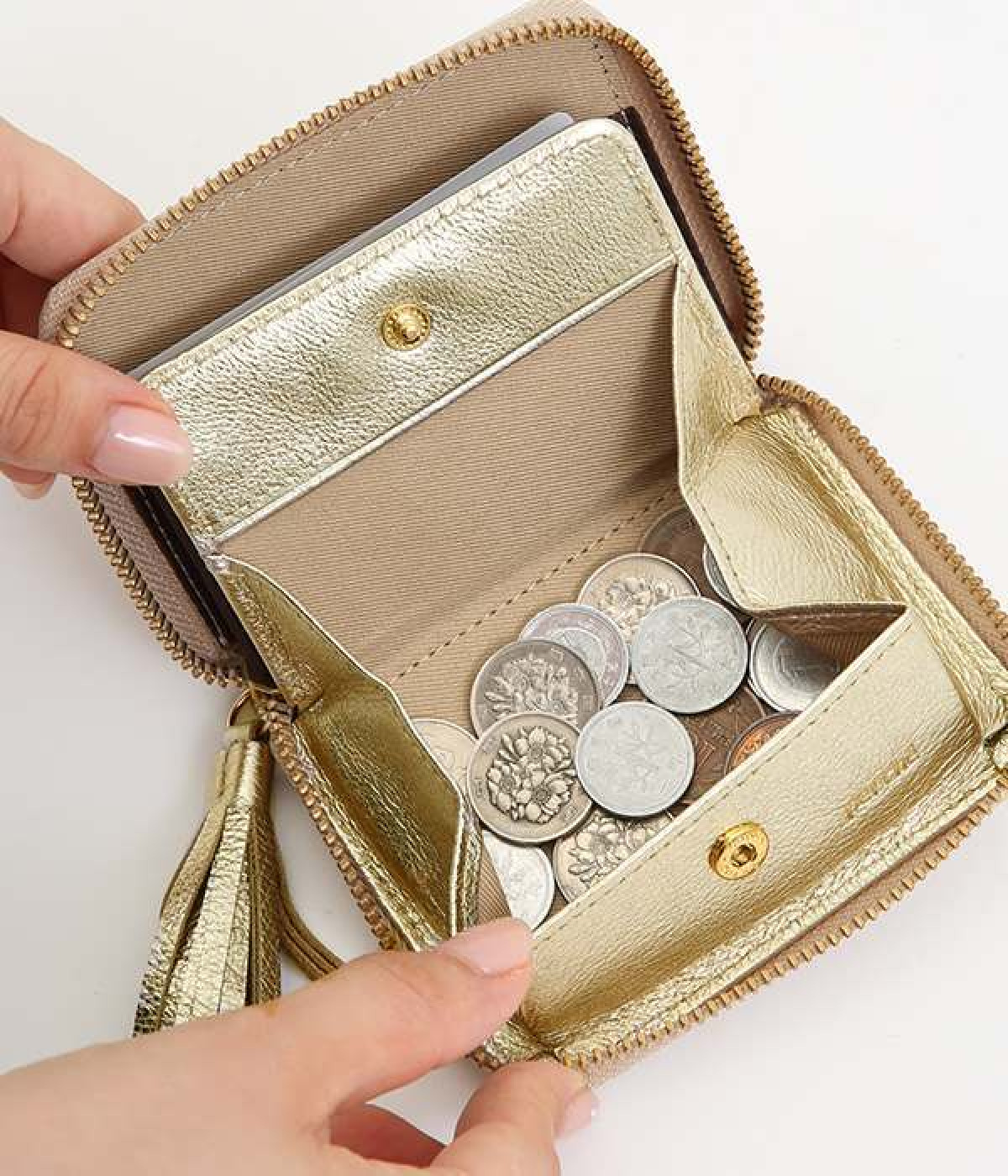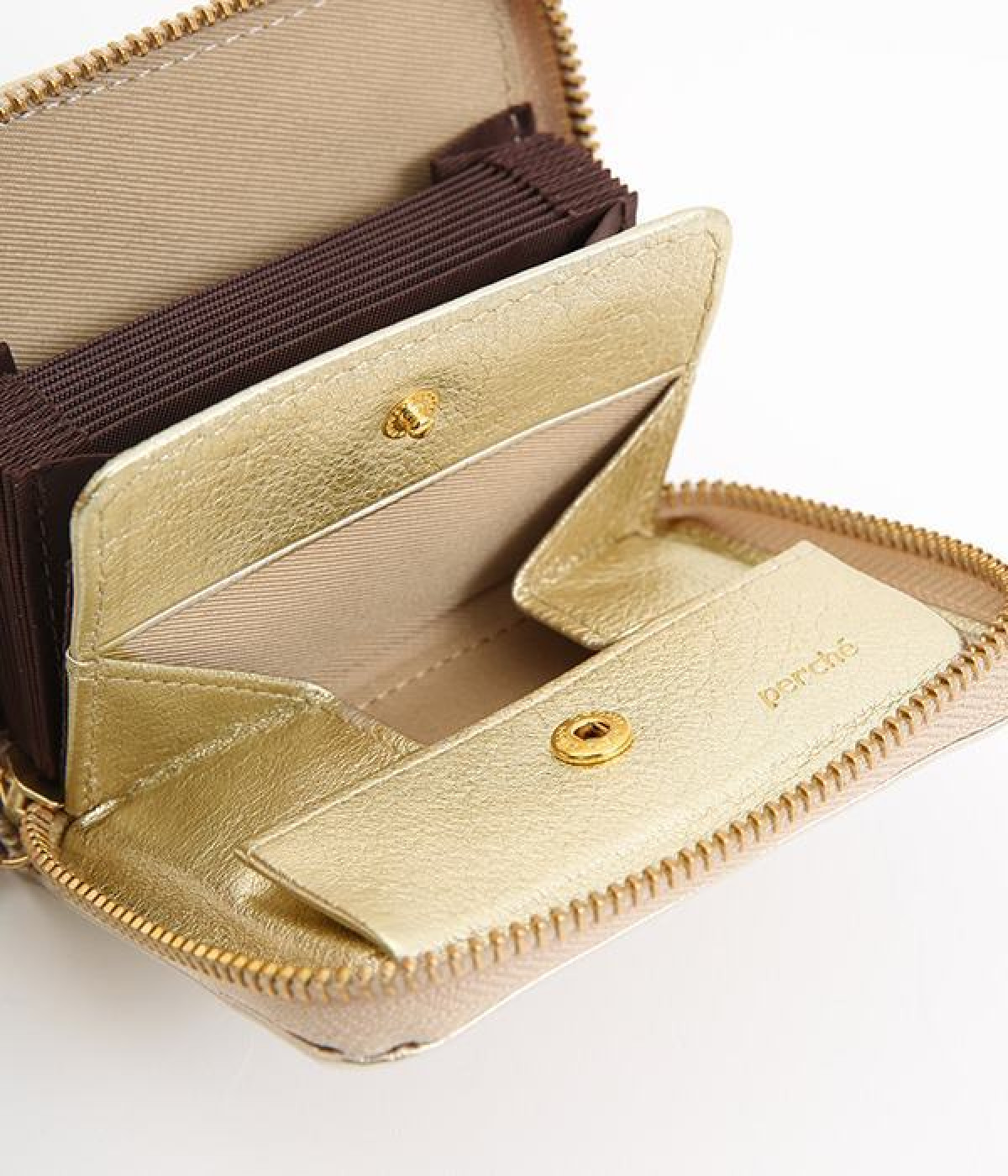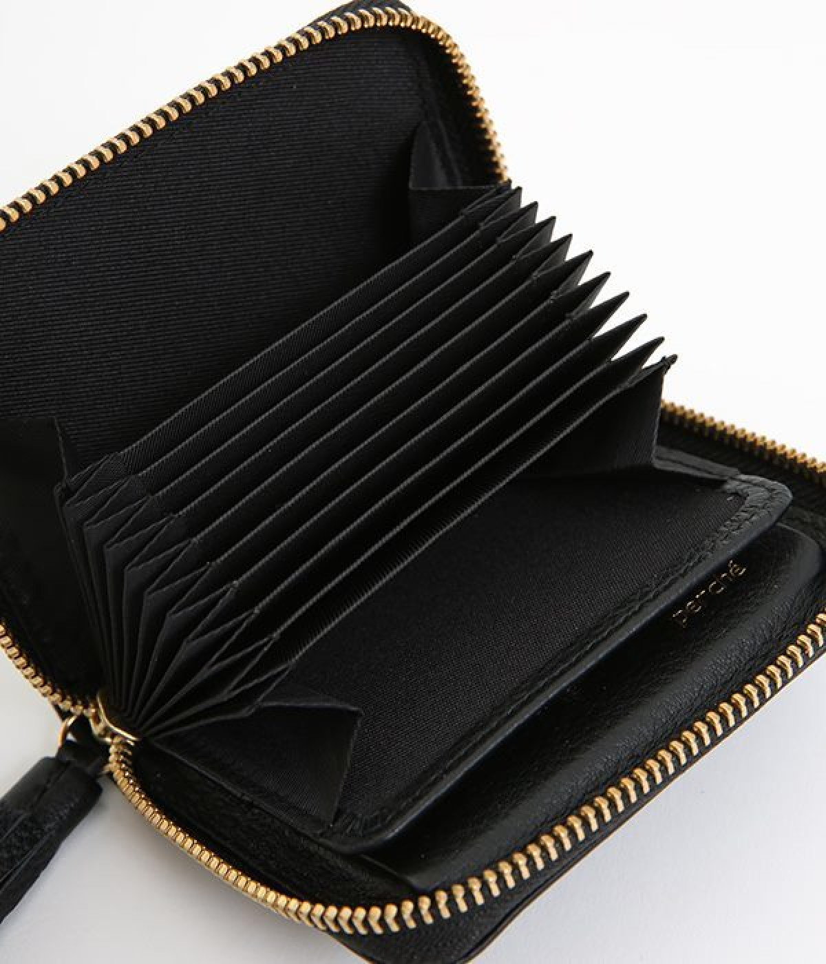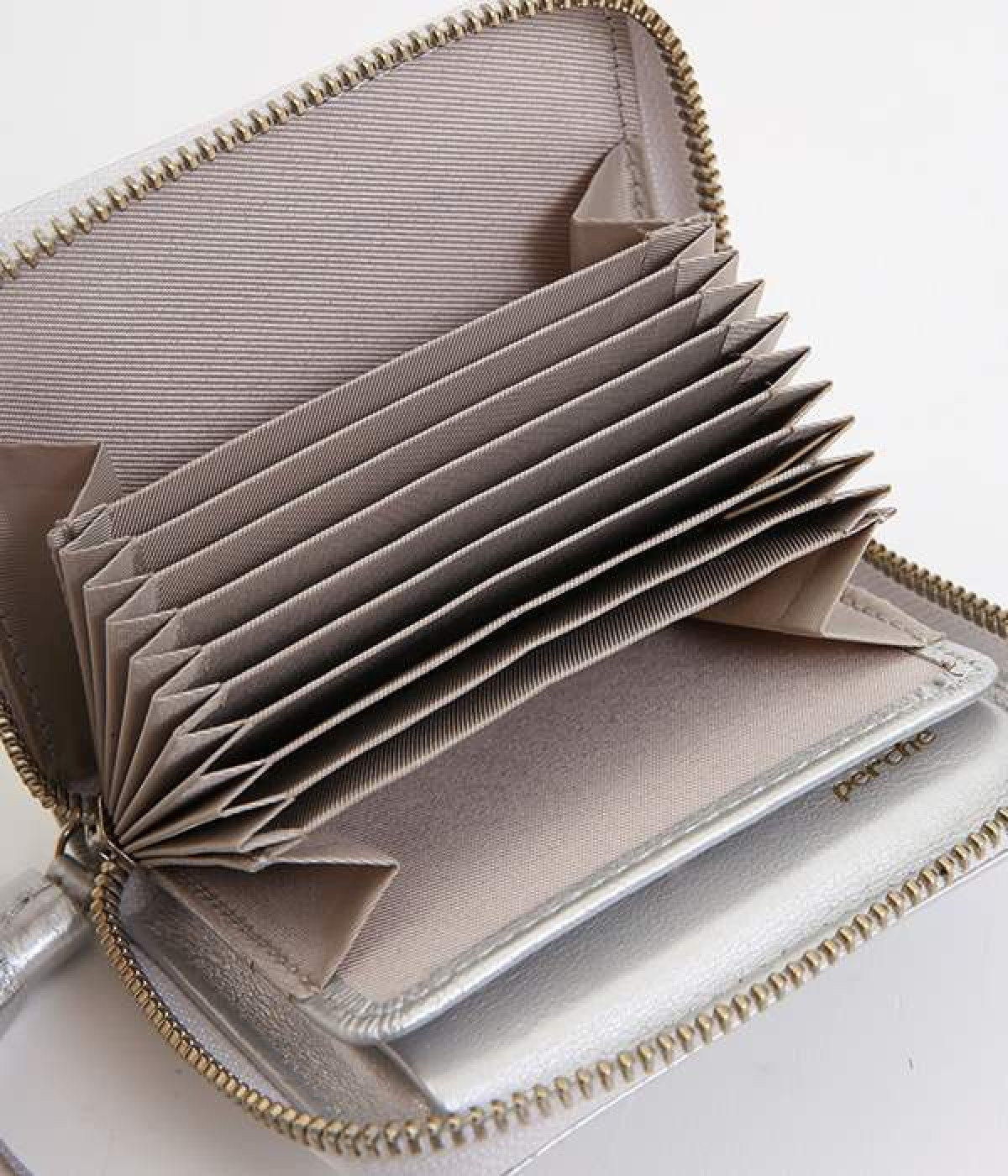 カード、お札、小銭をコンパクトに収納する、長財布とミニ財布の良いところを掛け合わせたウォレットです。小荷物派にうれしい、ミニショルダーやハンドバッグ、ポケットにも入るサイズ設計。ドット型押しを施した牛革を使用しており、大人にふさわしいポップ感を表現しました。出し入れしやすいジャバラ式のカードポケットが備わり、カード類をコンパクトに収納可能。ジャバラポケット下はお札を折らずに収納できるよう、スリップ式になっているのもポイント。本体にスキミング防止シートが内蔵されており、安全面にも気配りを。箱入れでお届けするのでプレゼントにもおすすめです。