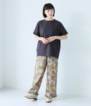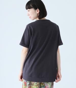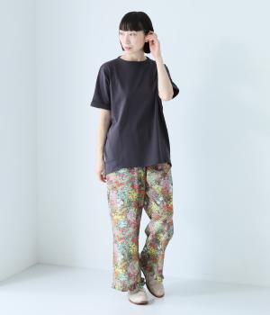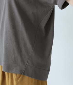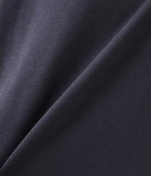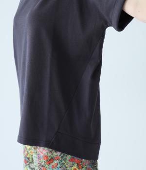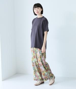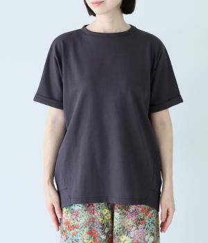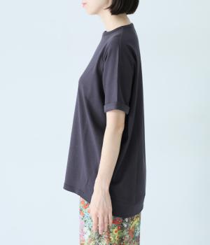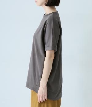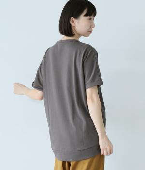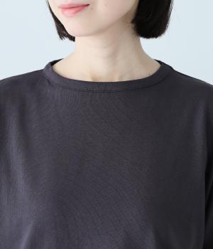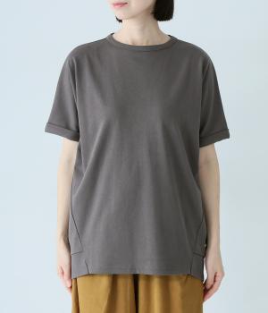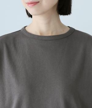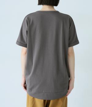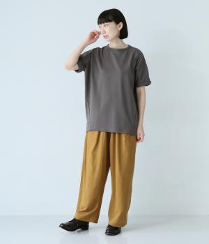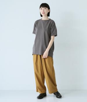 通常のTシャツよりしっかりとハリがあり、体のラインを拾いにくい生地感。表面がなめらかできれいめなので、ラフな印象になりすぎずに女性らしく上品見えします。