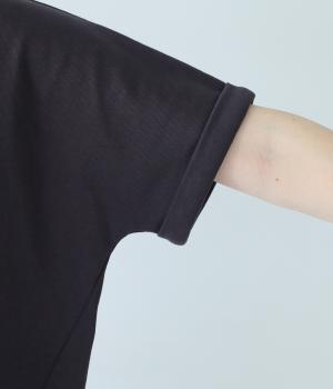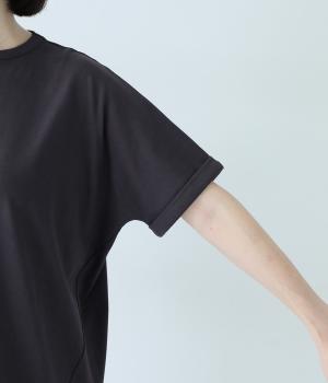 切り替えを入れて立体的に仕上げた、シンプルな中にこだわりが光るコクーンTシャツです。袖口を折り返したカフスデザインがアクセントに。ドルマンスリーブが気になる二の腕をカバーしてくれます。手抜き感が出ず、ブラウス感覚でも着用できるうれしい一枚です。