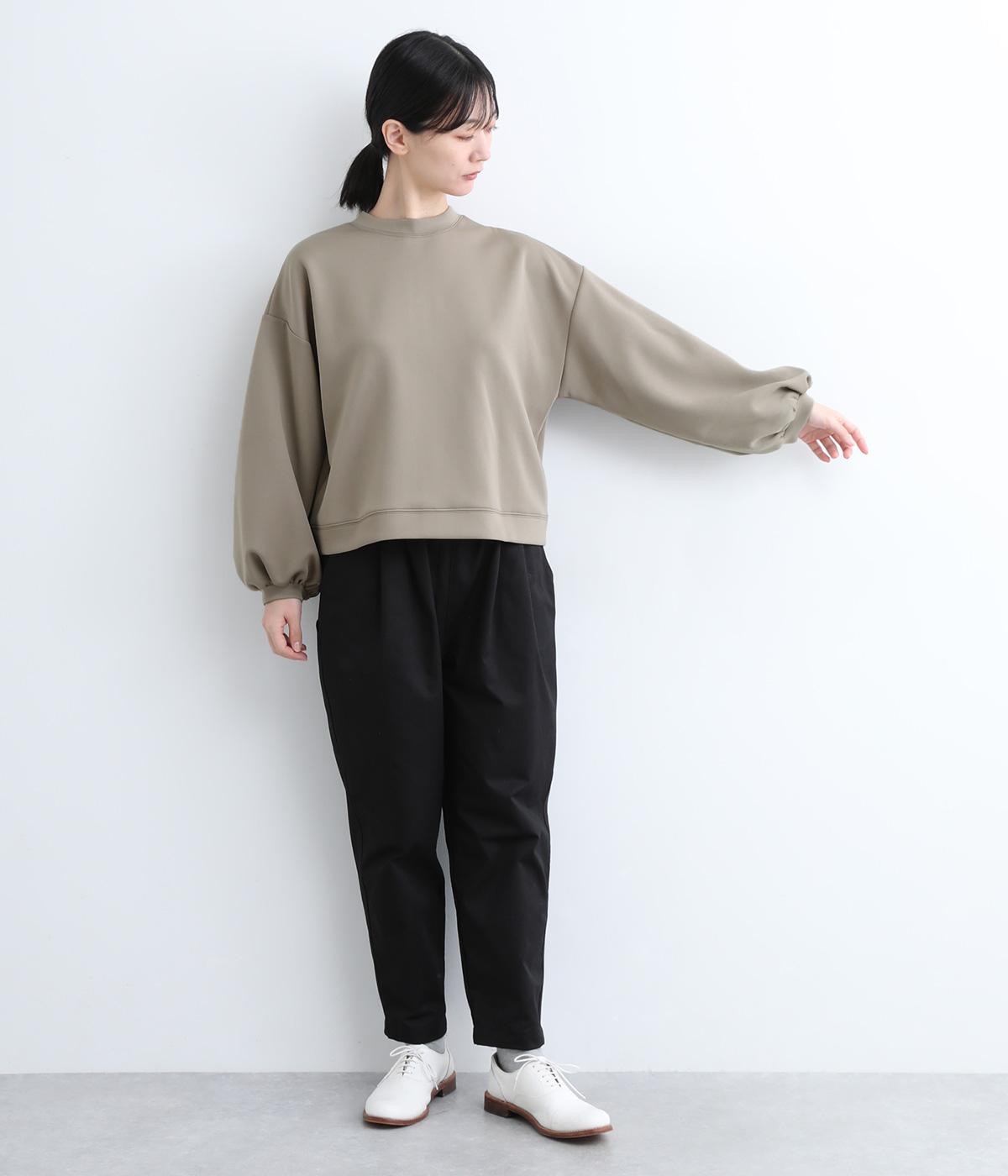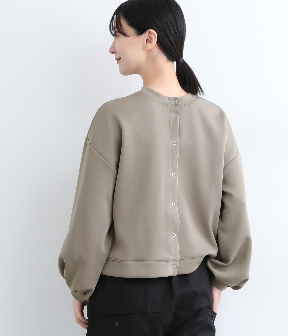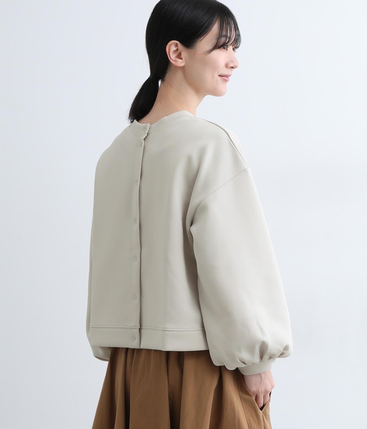 ボタンを後ろにすることで、プルオーバーとしても着られる2wayデザイン。ふんわりと丸みのある袖が、女性らしさを引き立てます。