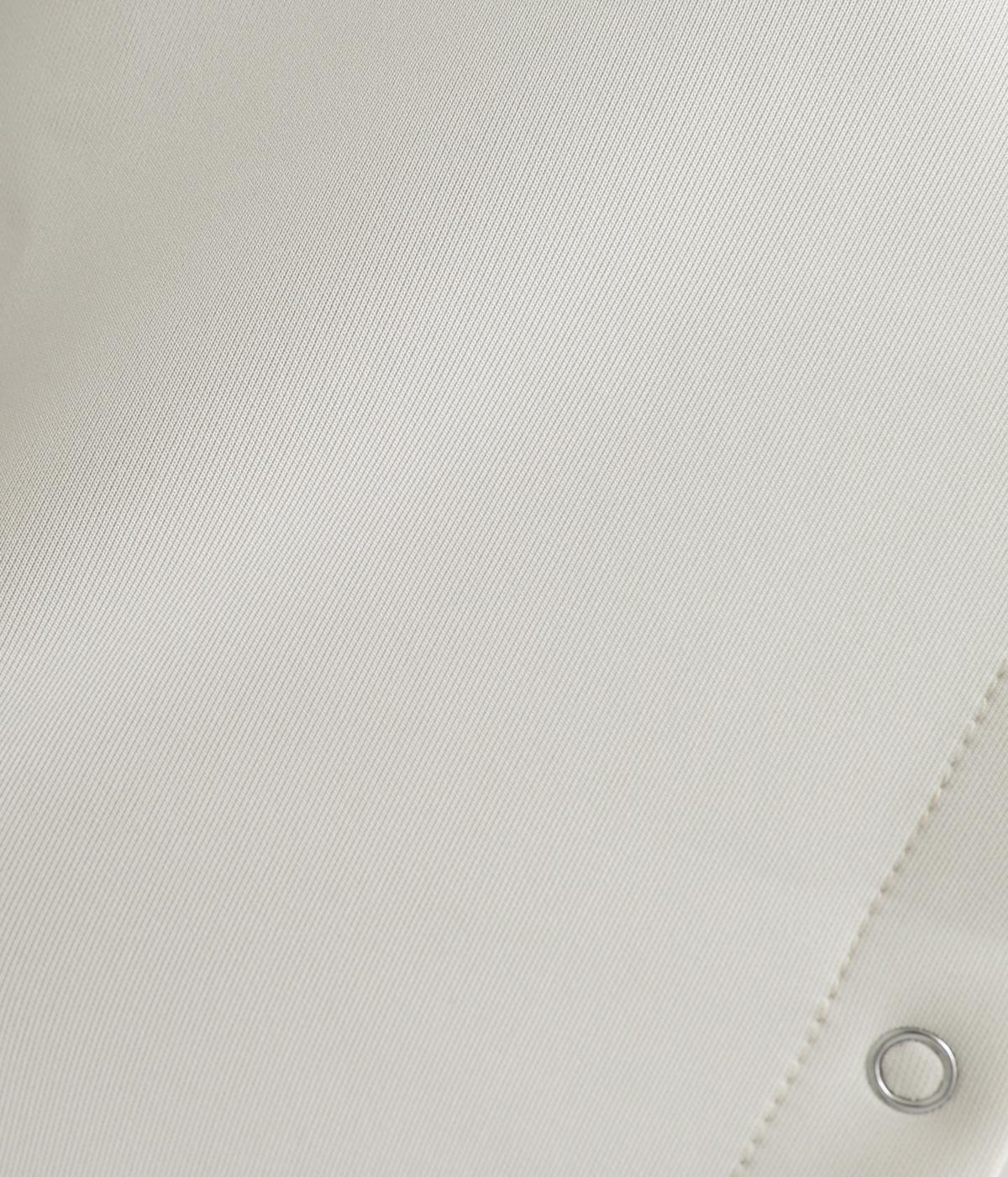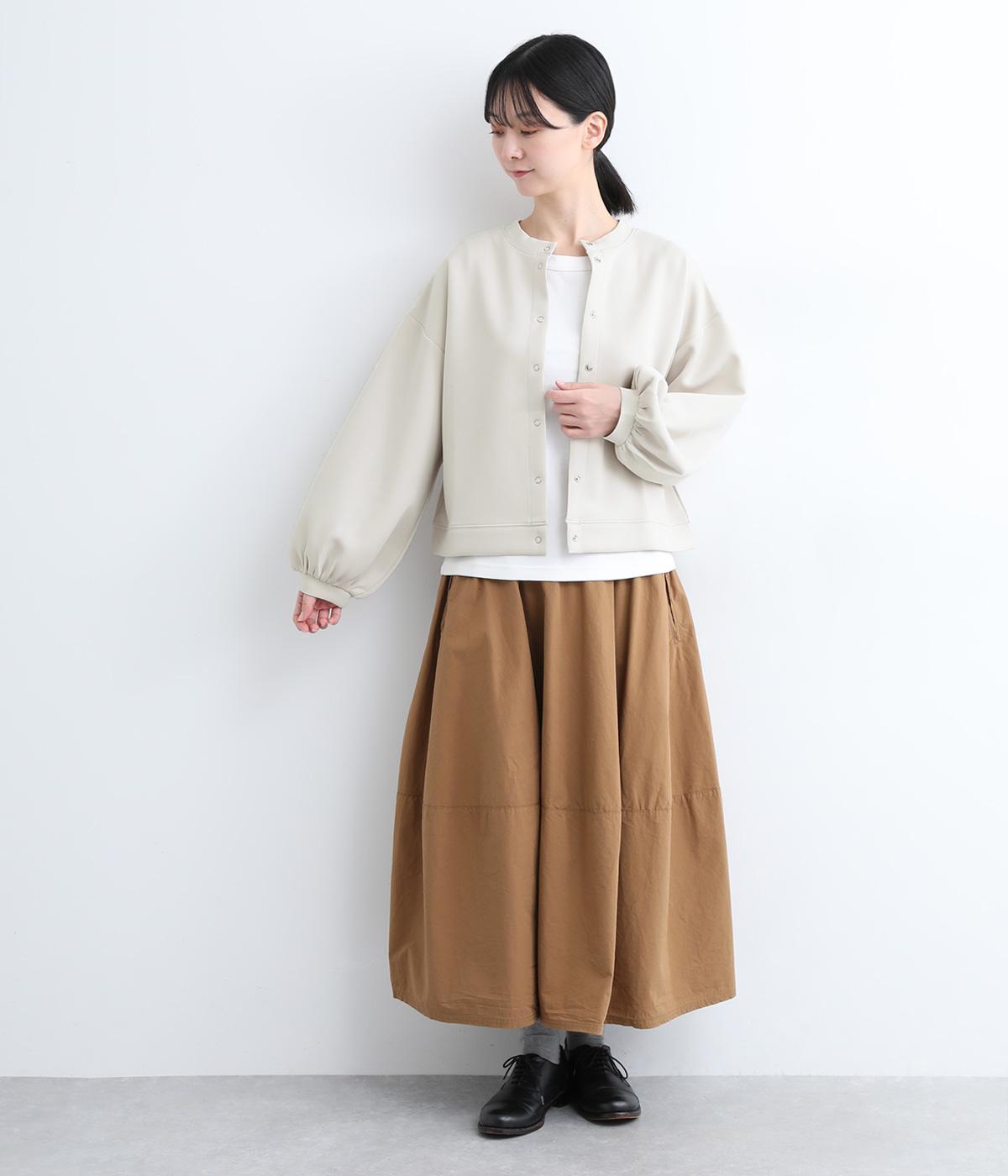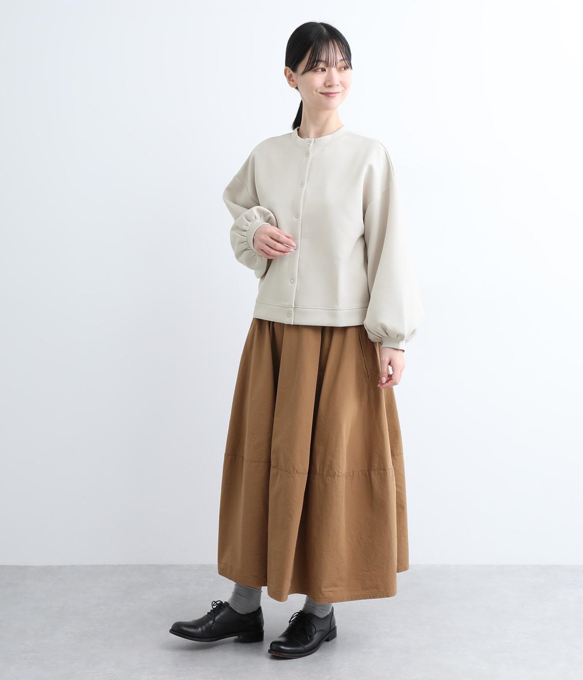 ポンチ素材ならではのやわらかさとふくらみが魅力的。上品なハリと光沢感で、大人らしい雰囲気に仕上がります。