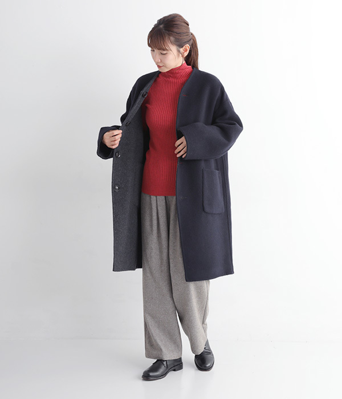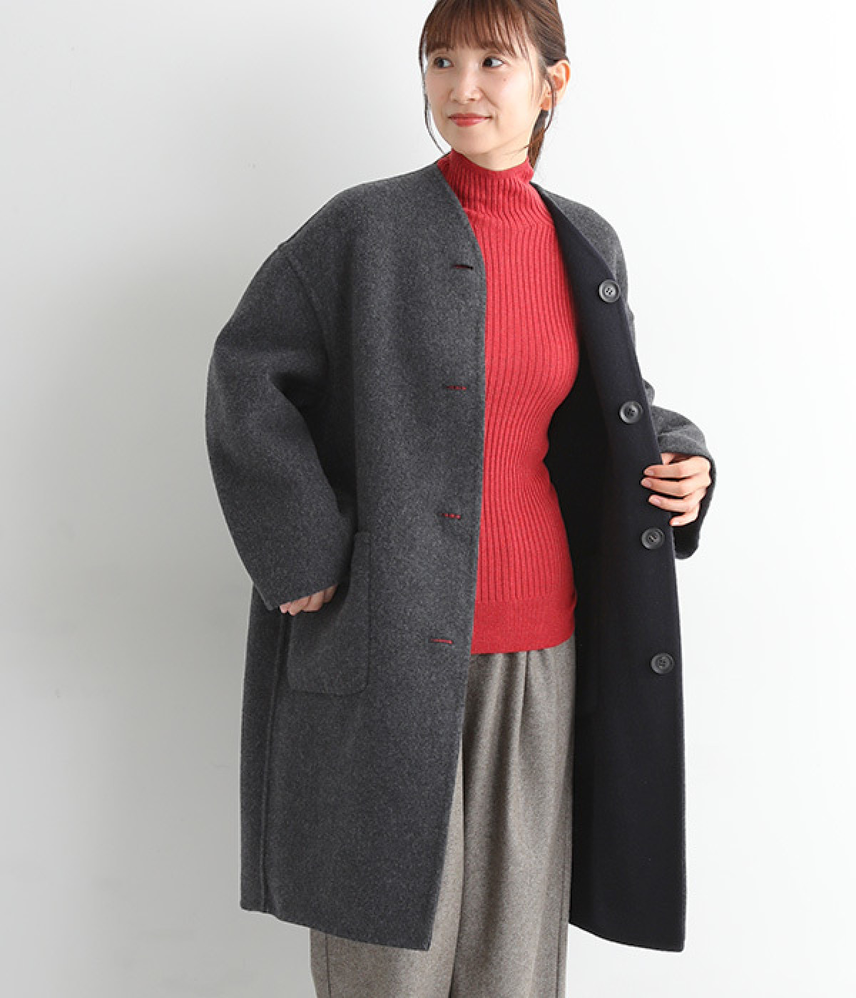 裏地なしでもあたたかなダブルフェイス生地