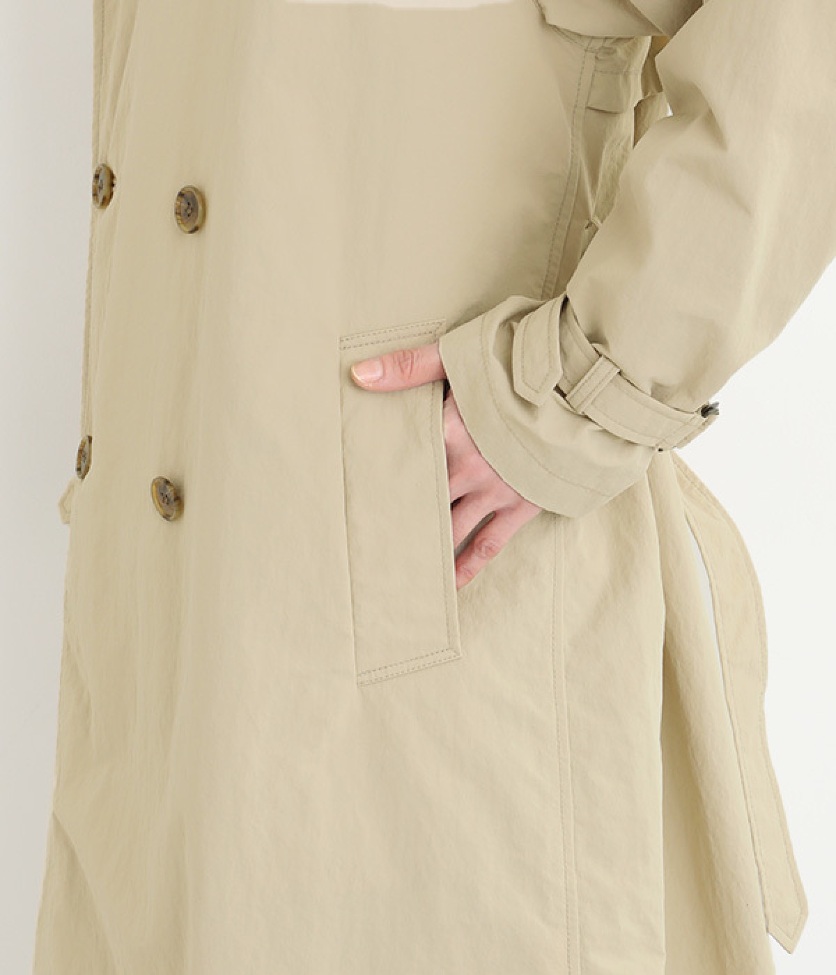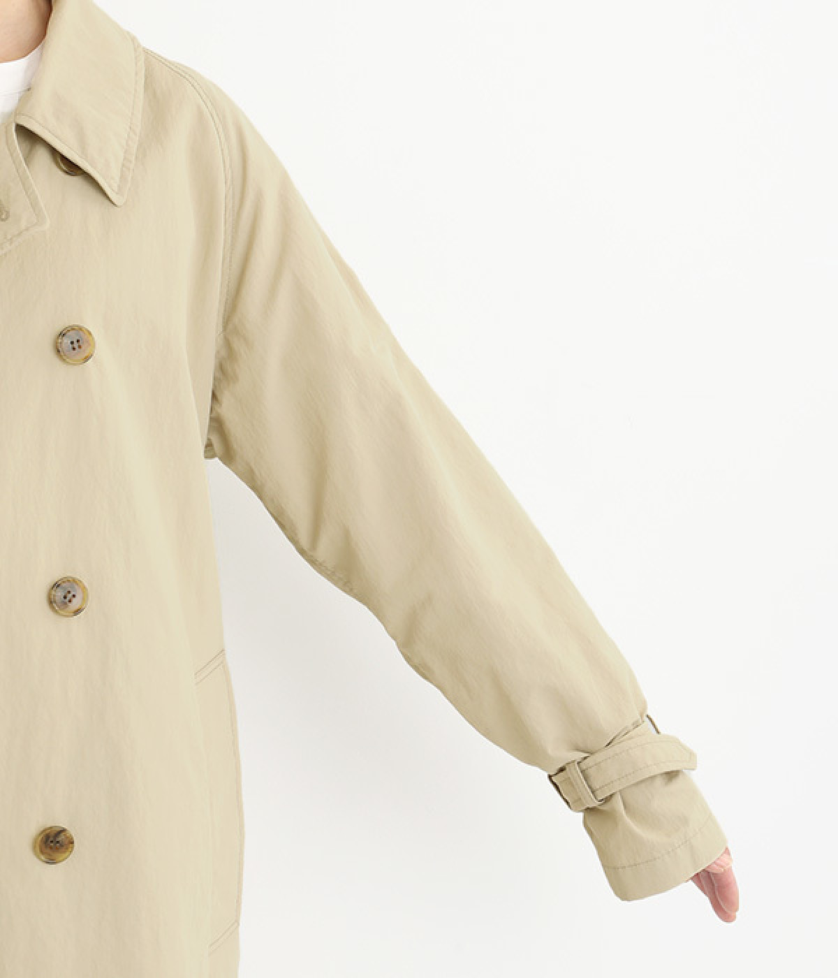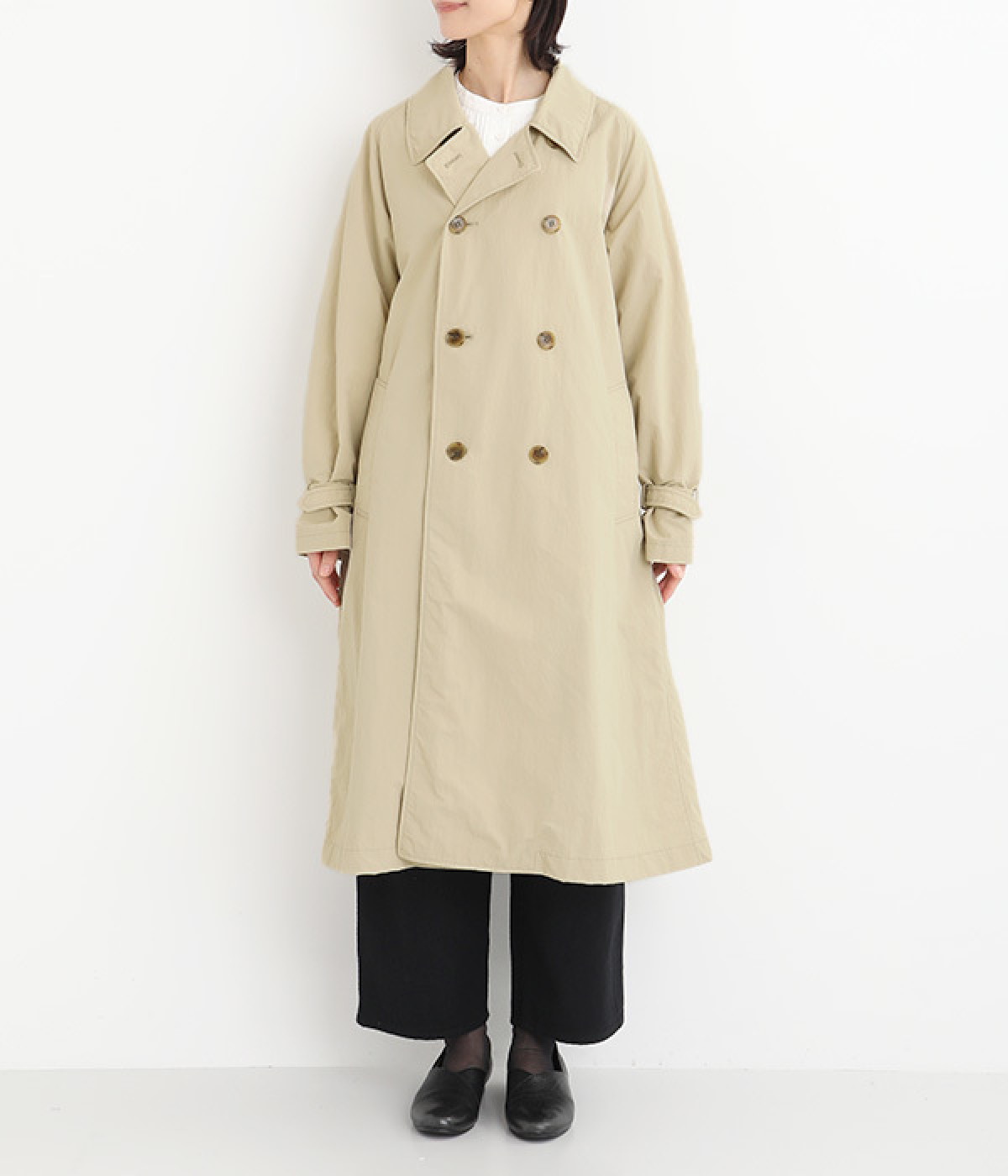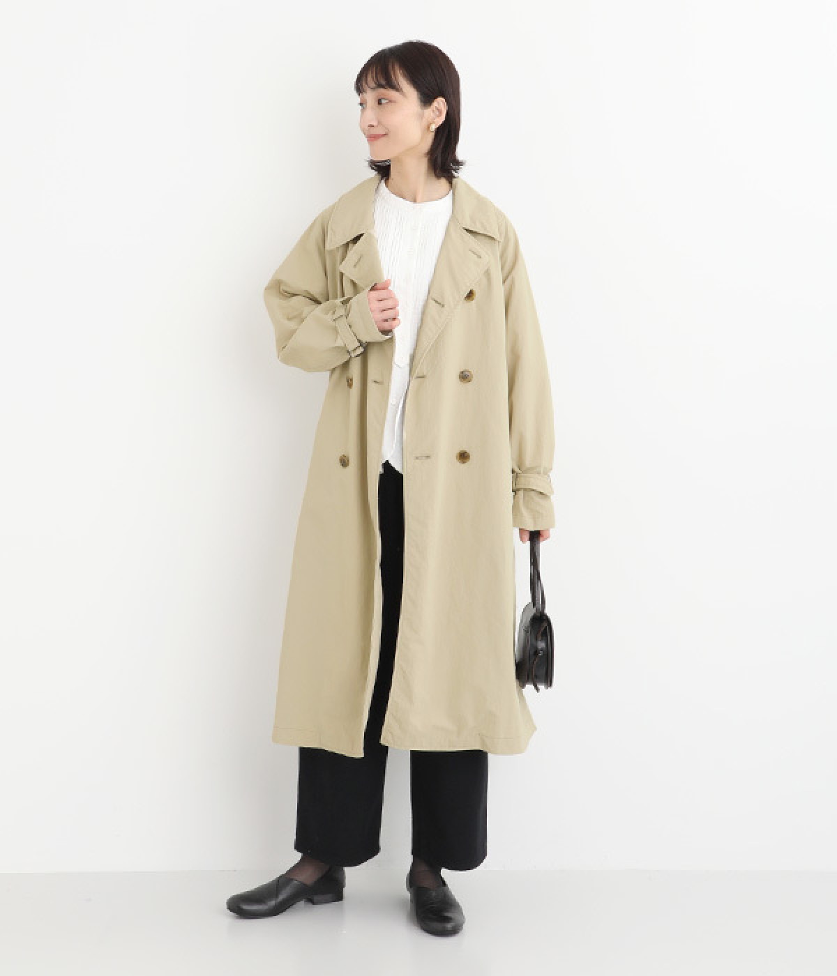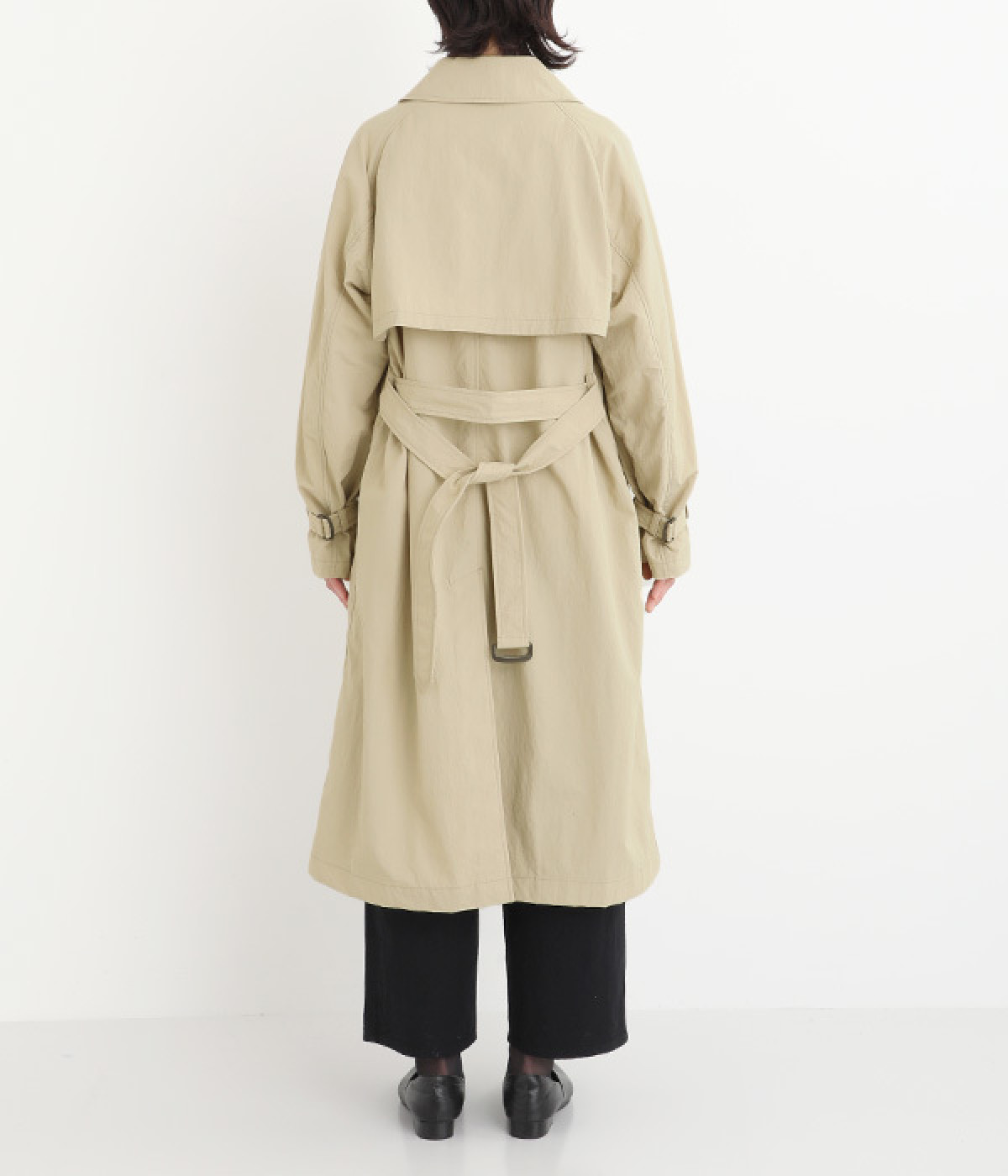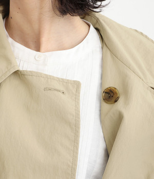 ゆったりと着こなせる、こなれ感漂うトレンチコート。腕を動かしやすいラグランスリーブもポイントに。よそいきの着こなしはもちろん、前をあけてラフに羽織って合わせるのもおすすめな一枚です。