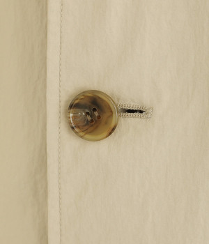 撥水加工をほどこした、軽量のナイロン生地を使用しています。しっかりと陰影のつく生地は、シャリ感があり軽量で爽やかな質感です。