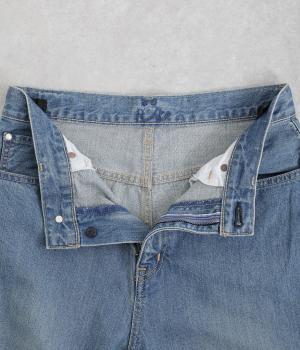 特徴的な丸みのあるラインながら、ややすっきりとしたバレルシルエットに仕立てました。両サイドの内側にあるボタンホールゴムでウエストの微調整がきき、ハイライズ特有の締めつけ感が少なく、腰が浮かない美しいウエストラインにこだわりました。