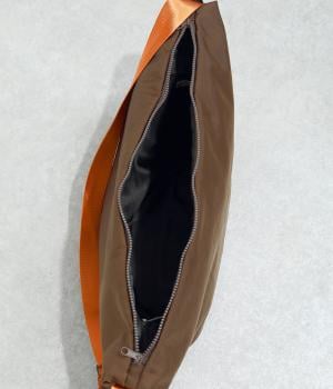 強度と耐久性に優れたナイロン素材。厚みのあるナイロンツイルに染めとシワ加工を同時に行うことにより、やわらかなツヤと自然な立体感が出る仕上がりになっています。とても軽く、心地よく使用できます。