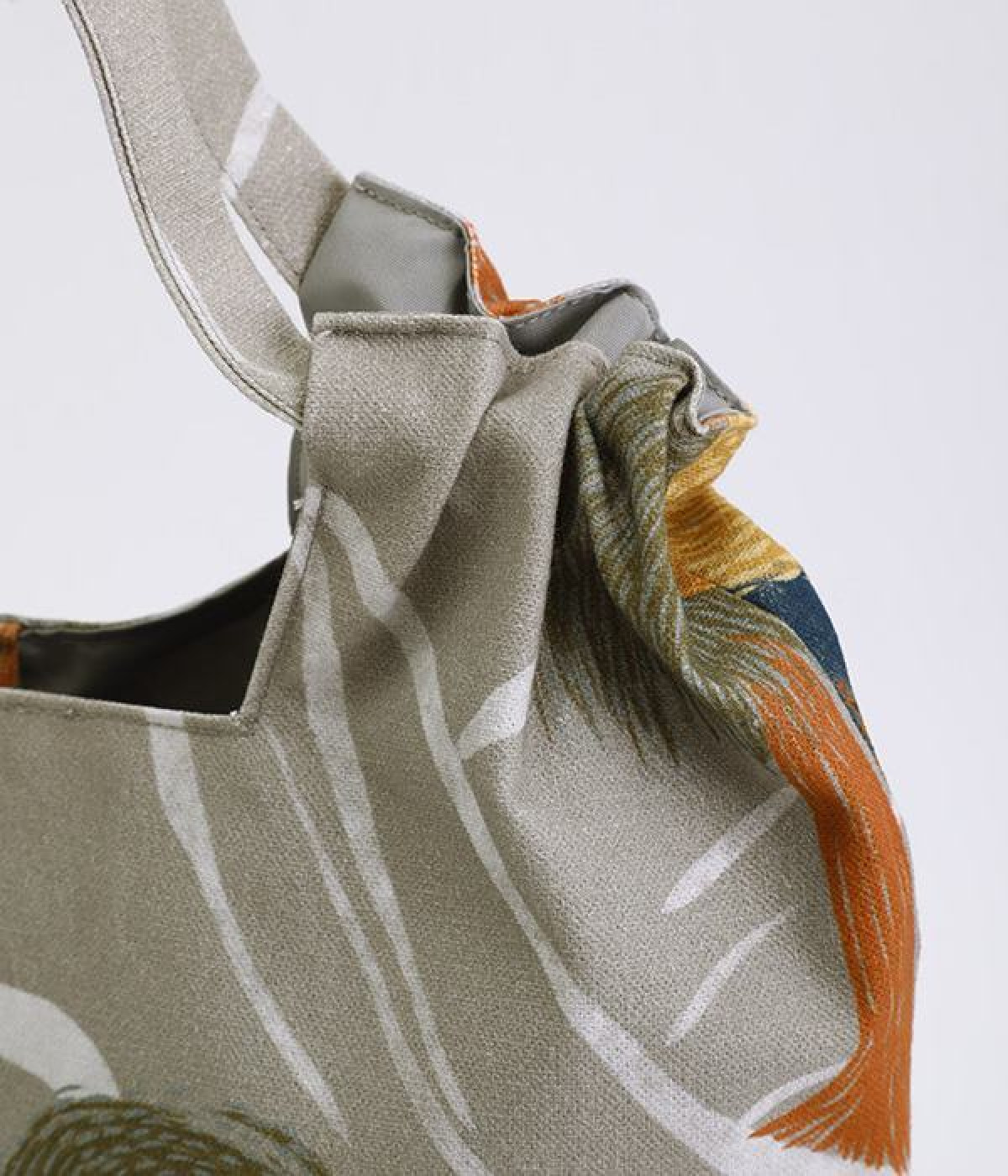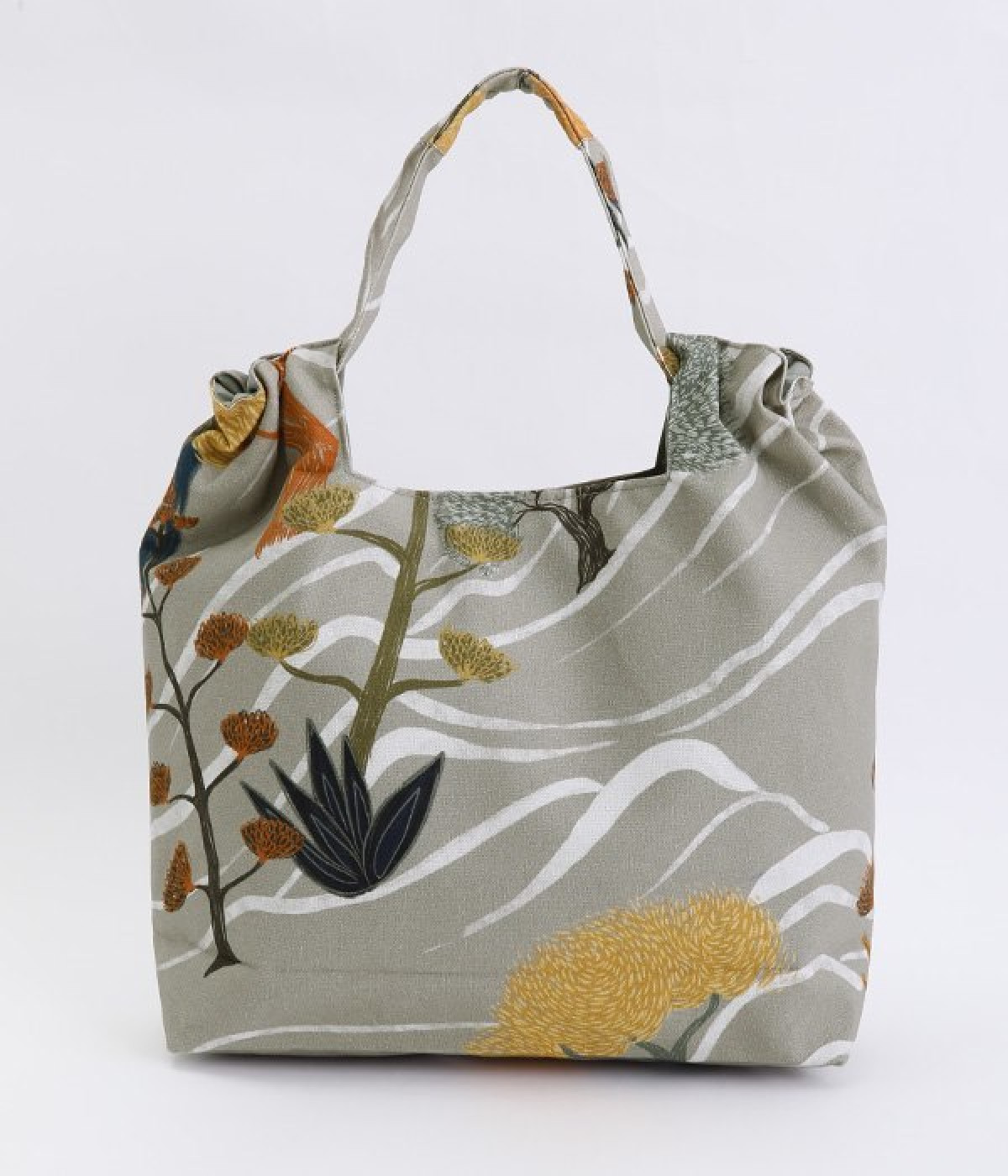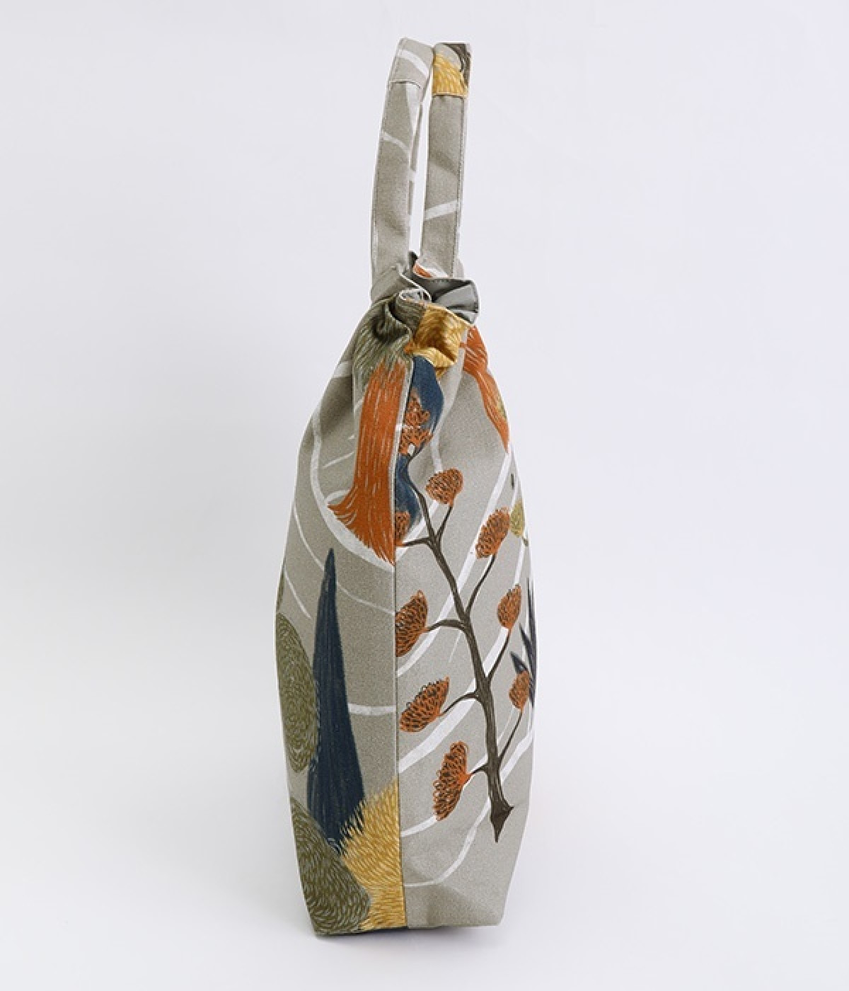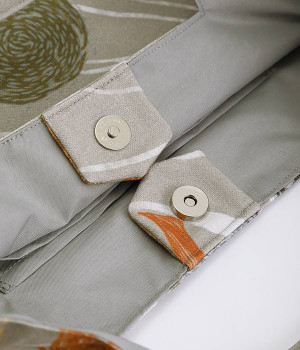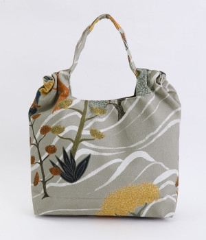 北欧風のタッチで描かれた自然の風景が素朴なバッグ。ハンドル部分を引っ張ると丸みのあるフォルムに変形するので、その日の気分に合わせたアレンジが楽しめます。内側には大きめポケットが3つ備わり、中身の飛び出しを防ぐマグネットボタンつきなど使い勝手も◎。裏地はポリエルテルで扱いやすく、手洗いもできるためデイリーづかいにぴったり。無難になりがちなデイリースタイルにプラスすると、グッと雰囲気を変えてくれます。