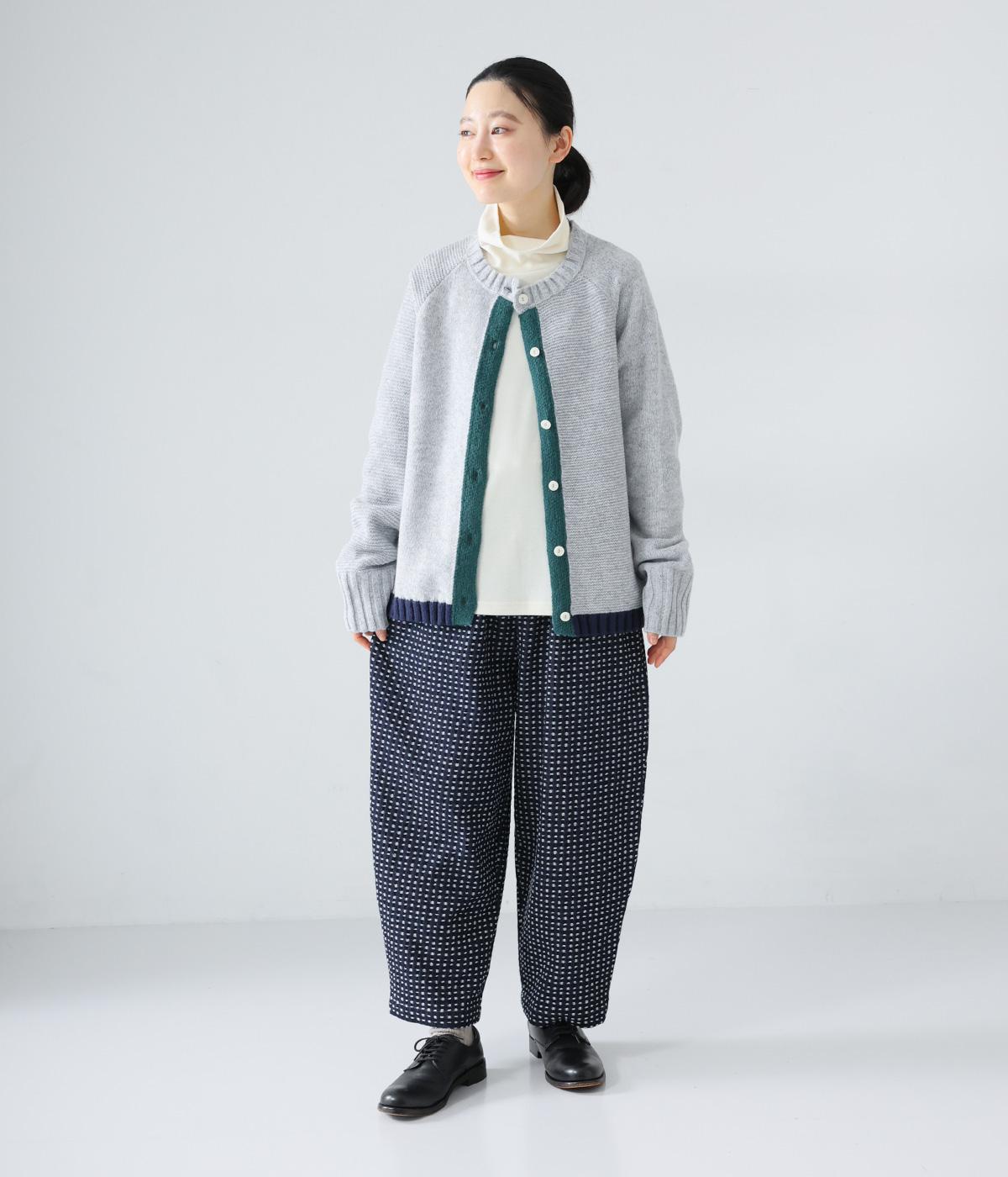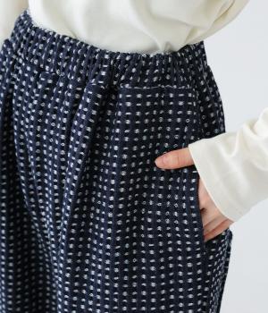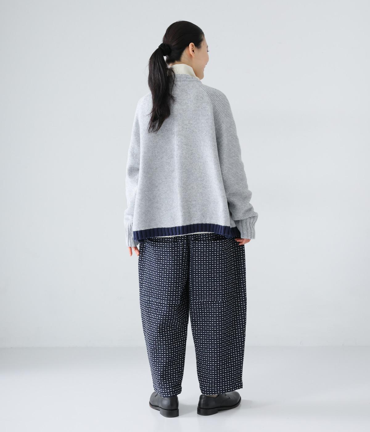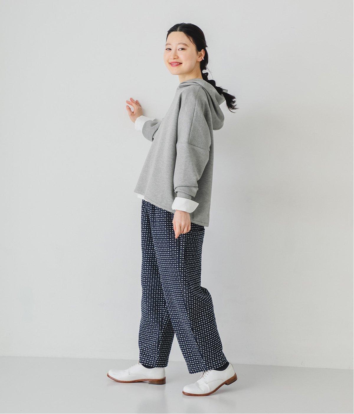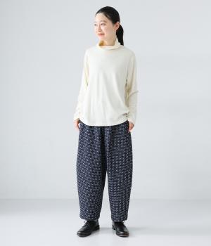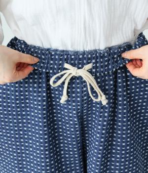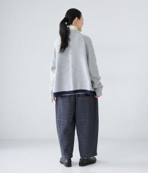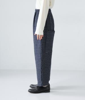 曲線を描くゆとりのあるシルエットが特徴のデニムパンツ。全体にほどこされた細かなステッチが、無地デニムにはない奥行きとあたたかみを感じさせます。ヒップのやや下の位置に配した大きなポケットがアクセントに。ウエストは総ゴム仕様で内紐つきです。