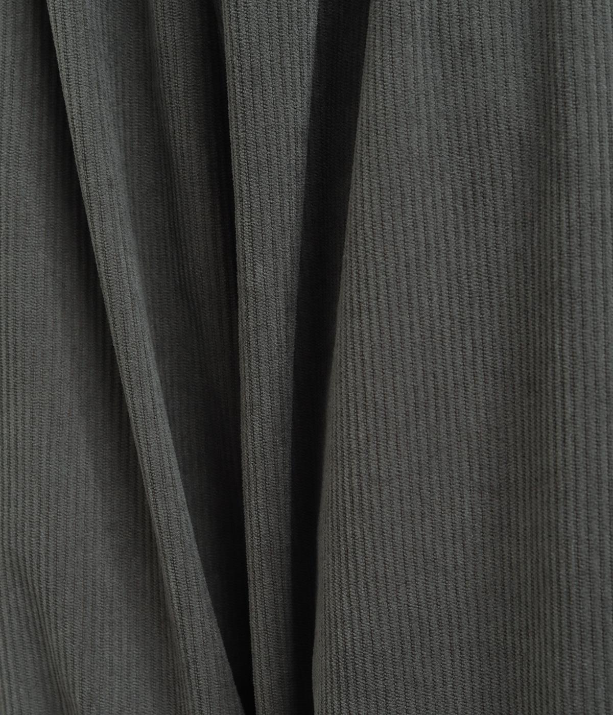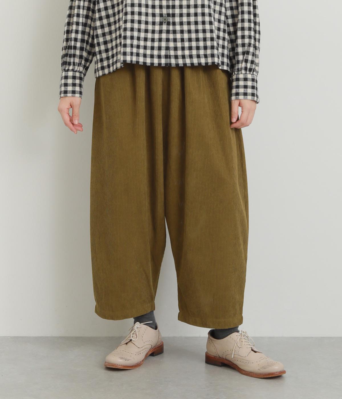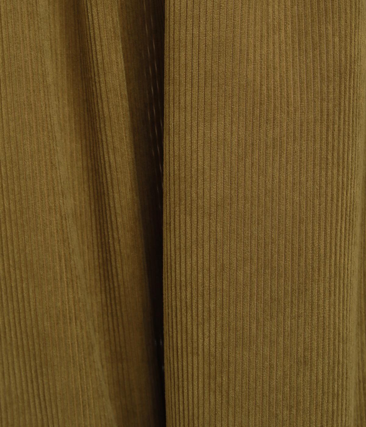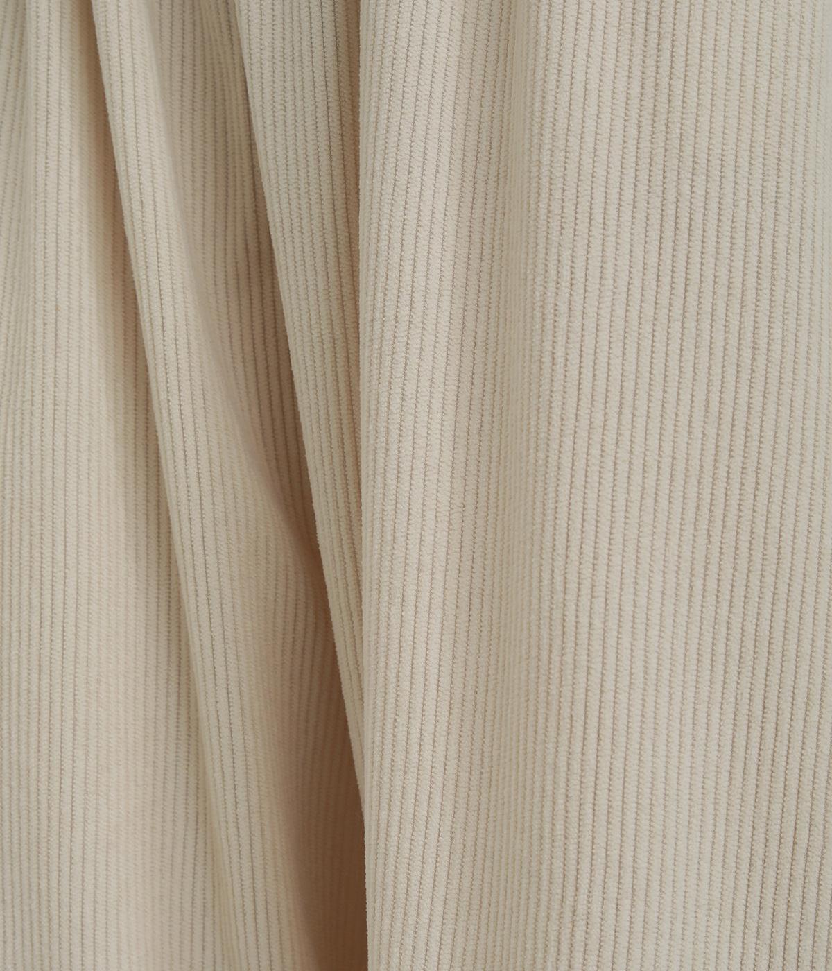 起毛感のある縦ラインの畝が特徴のコーデュロイ生地。ハリの少ないやわらかな風合いと軽さが魅力のやや薄手の生地感です。ストレッチ性も備え、はき心地のよさにこだわりました。