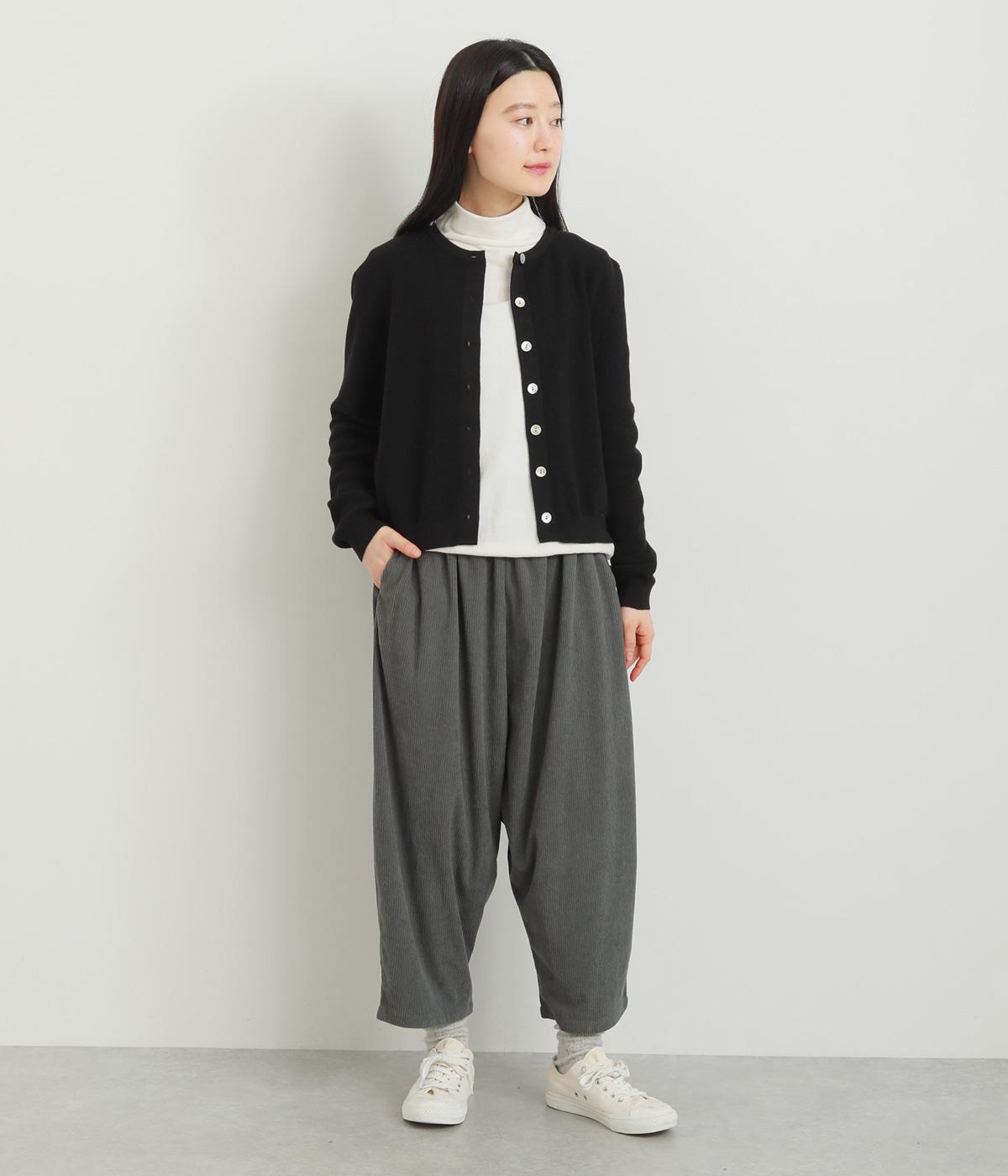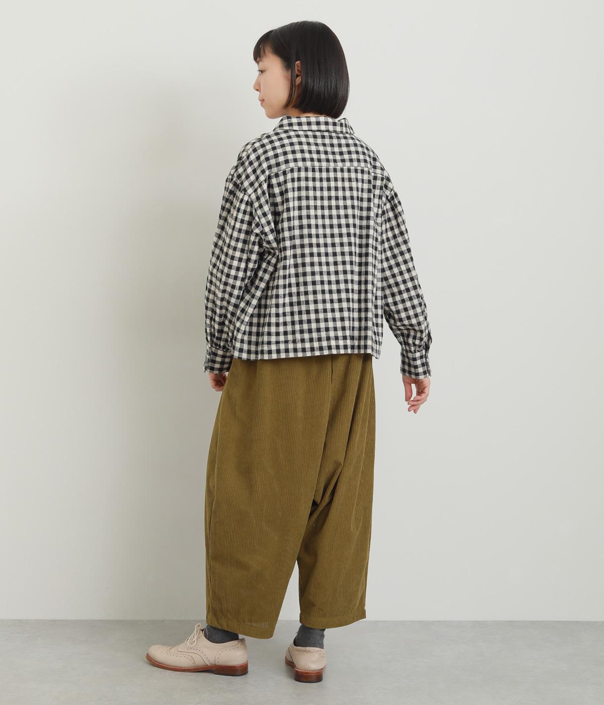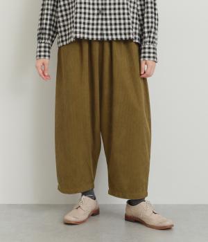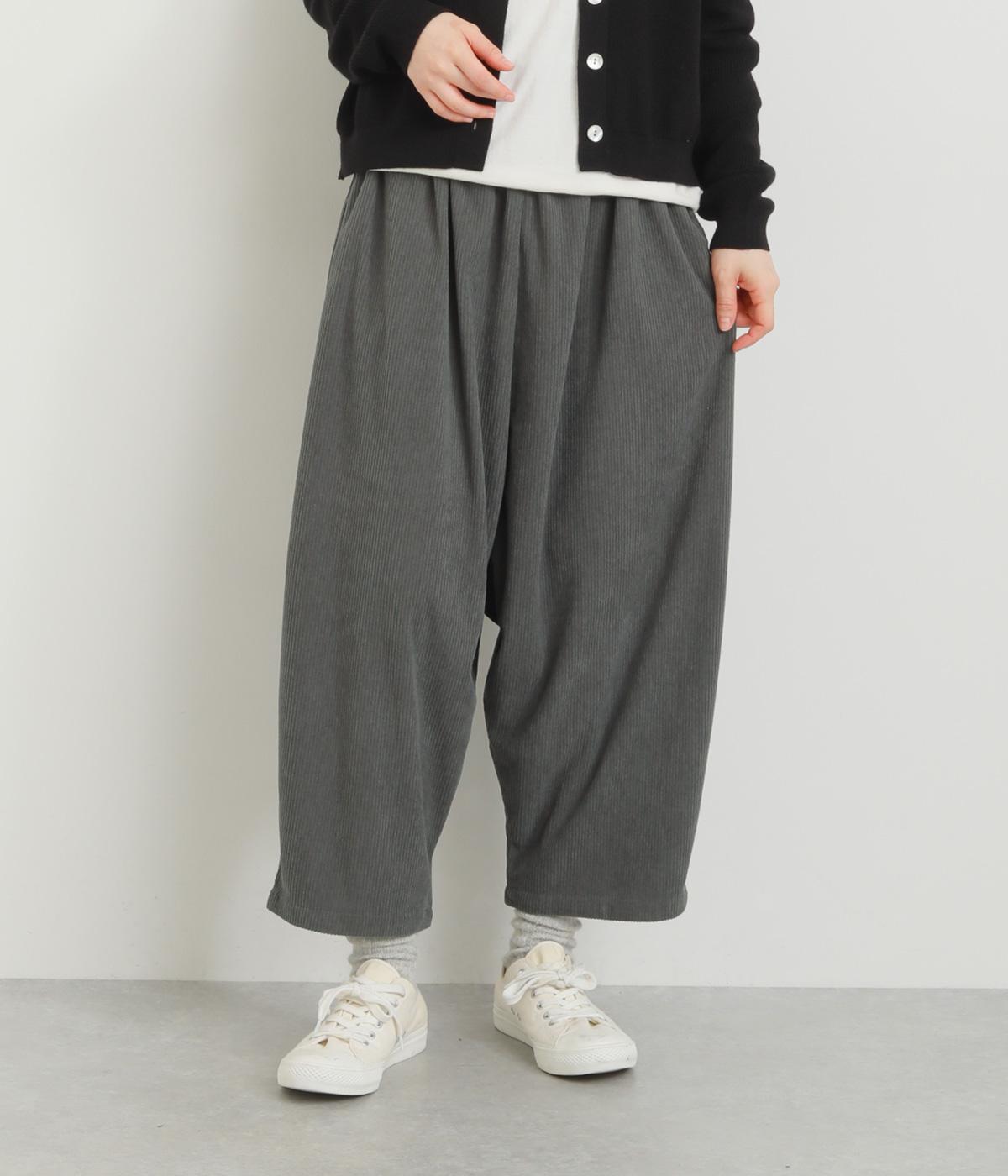 起毛感のある縦ラインの畝が特徴のコーデュロイ生地。ハリの少ないやわらかな風合いと軽さが魅力のやや薄手の生地感です。ストレッチ性も備え、はき心地のよさにこだわりました。