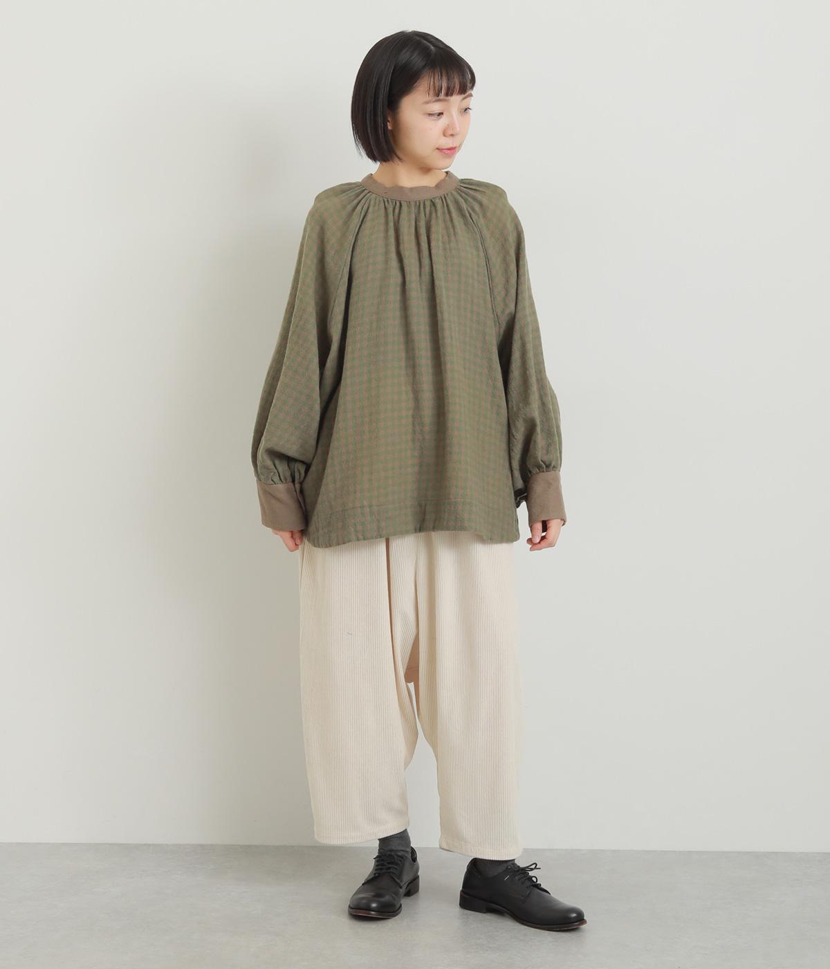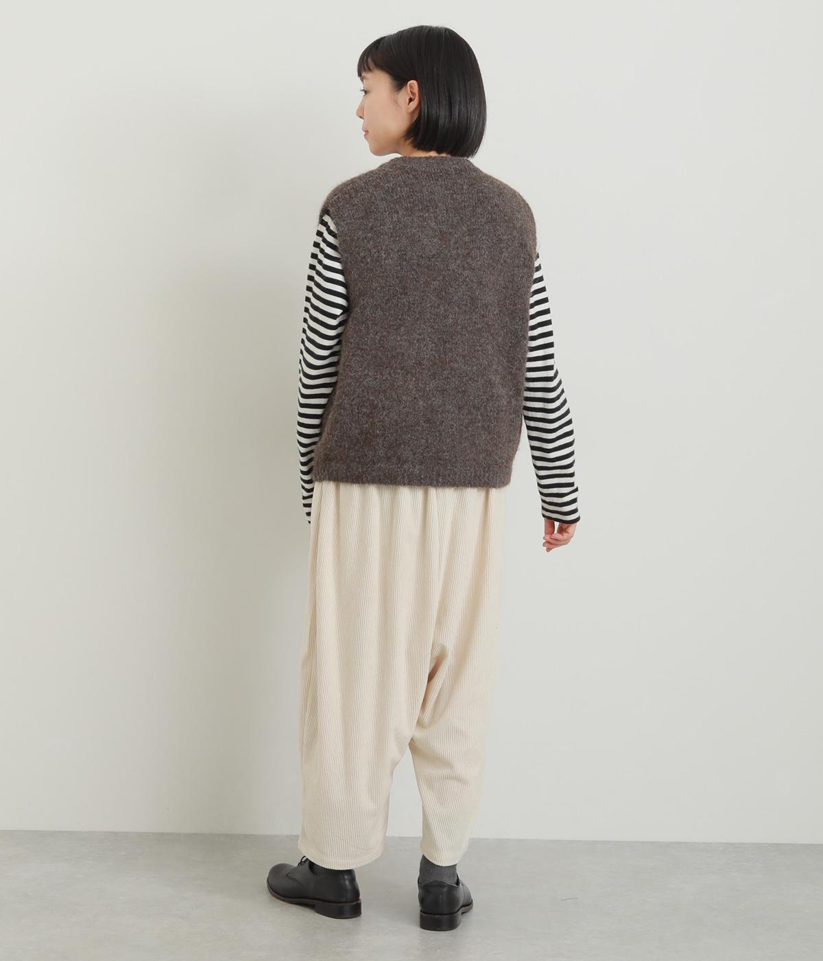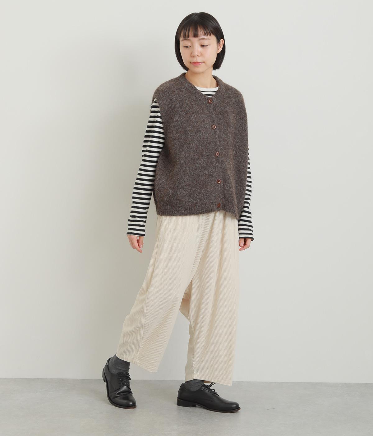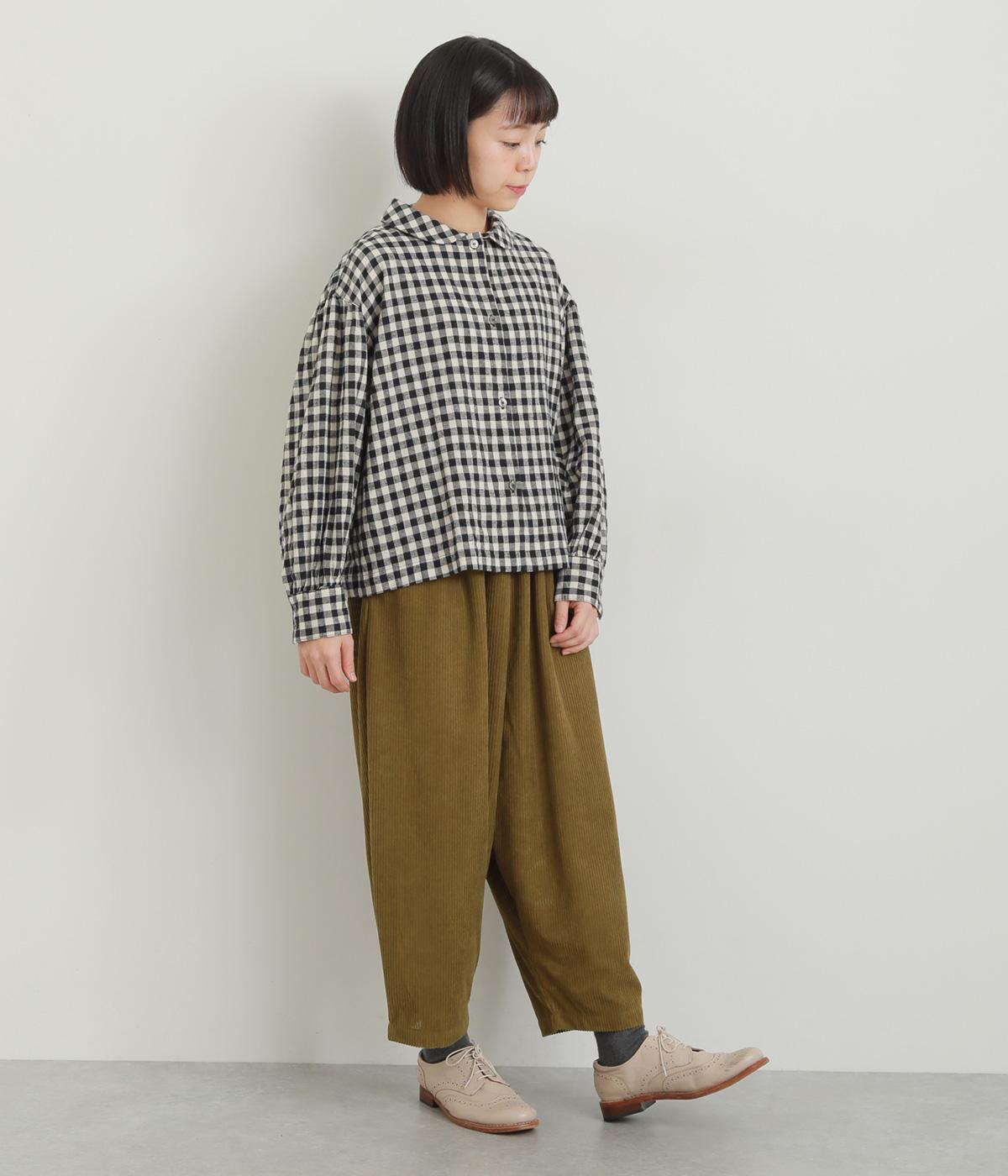 起毛感のある縦ラインの畝が特徴のコーデュロイ生地。ハリの少ないやわらかな風合いと軽さが魅力のやや薄手の生地感です。ストレッチ性も備え、はき心地のよさにこだわりました。