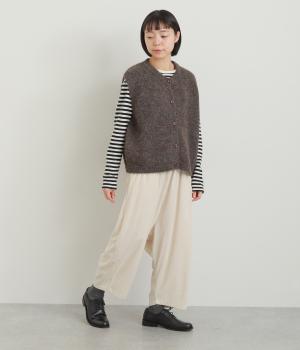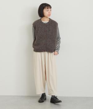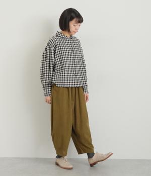 深い股上と、太ももから腰まわりにゆとりを持たせたシルエットが特徴のサルエルパンツ。気になる体のラインを自然に隠しつつ、スタイリッシュで個性のある着こなしを叶えてくれます。ウエストは総ゴム仕様で、フィット感を高める内紐をプラスしました。
