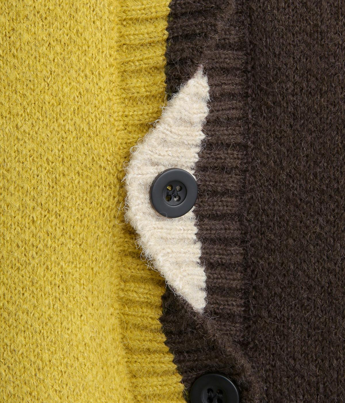 ニット配色カーディガン(マスタード×ブラウン-F)