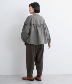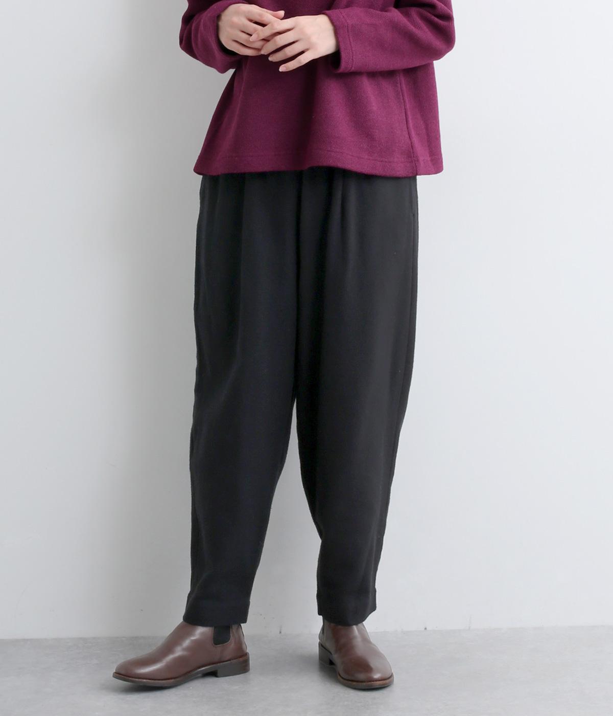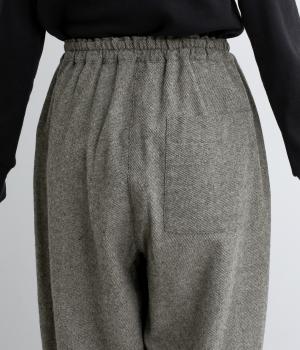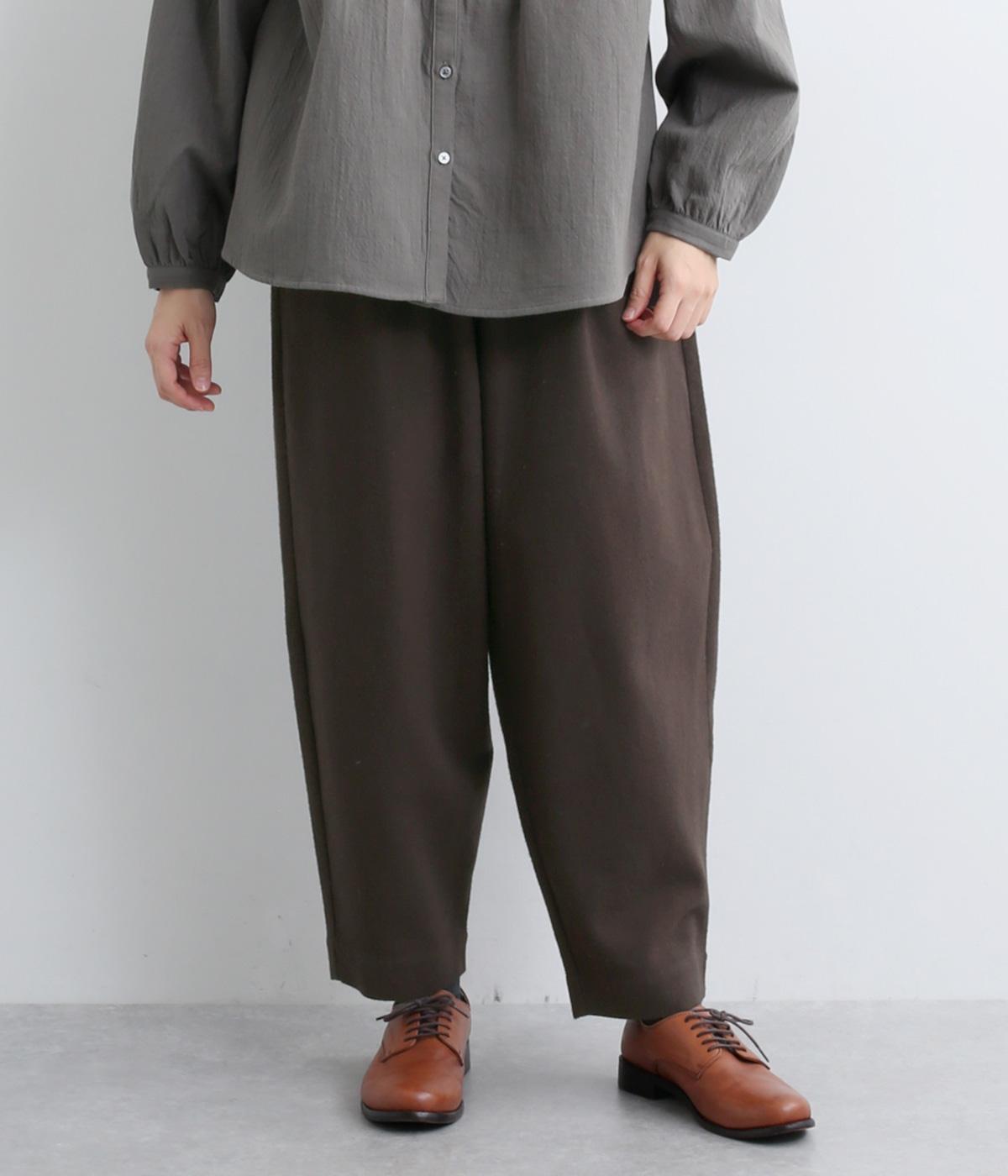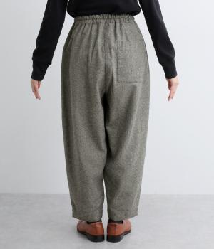 丸みのあるシルエットが魅力のバレルパンツ。脚のラインを拾いにくく、足首にすっきりとした抜け感を添えてくれます。装いにこなれ感を与えるので、シンプルなトップス合わせでもサマ見え。ウエストはゴムと内紐を通してイージーなはき心地に仕上げました。