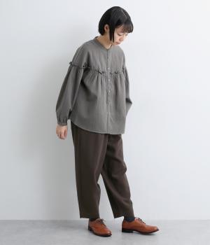 ふっくらとした起毛感とハリの少ないやわらかな風合いで、あたたかくストレスフリーな着用感を叶えるコットン生地。見た目にも上品さと季節感を添えてくれます。