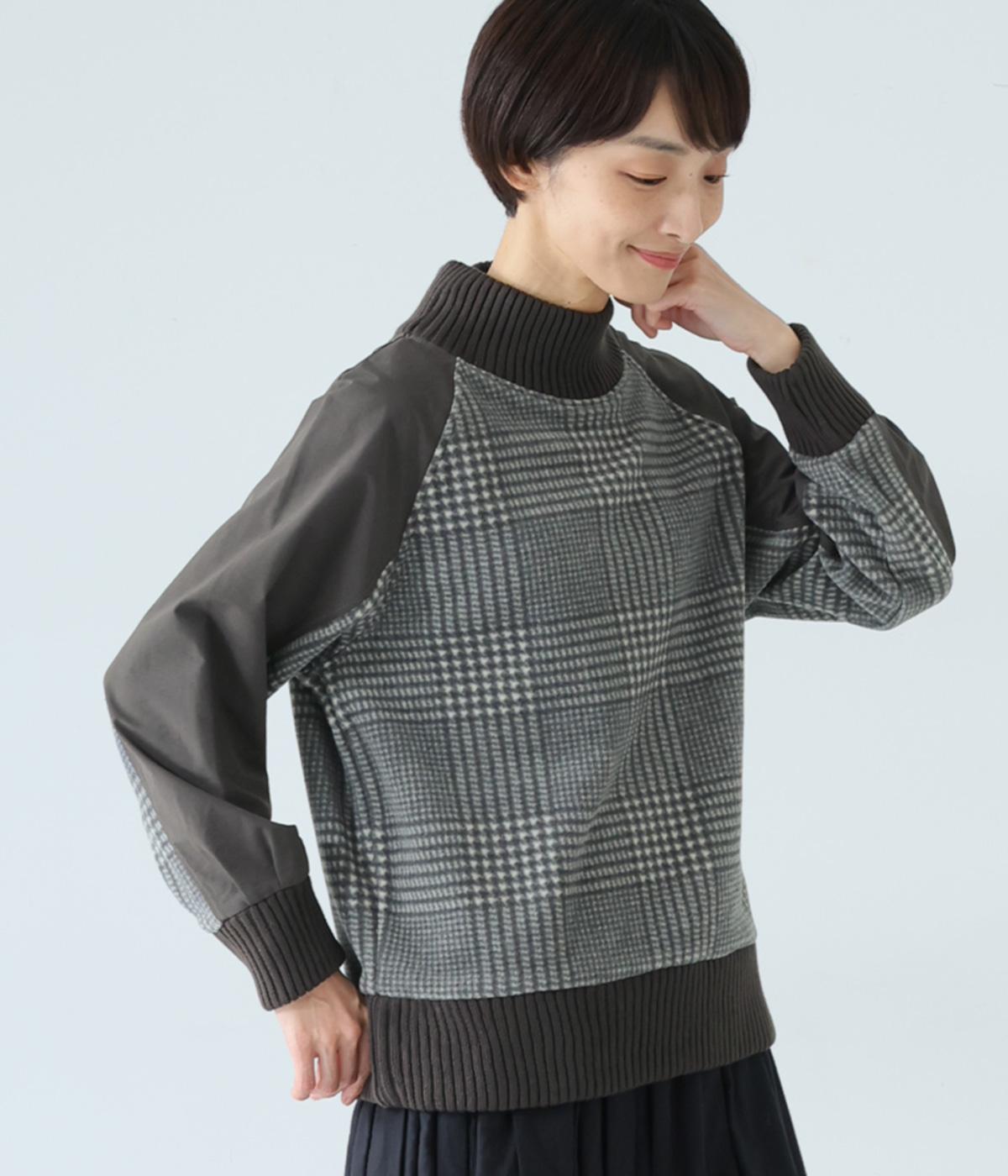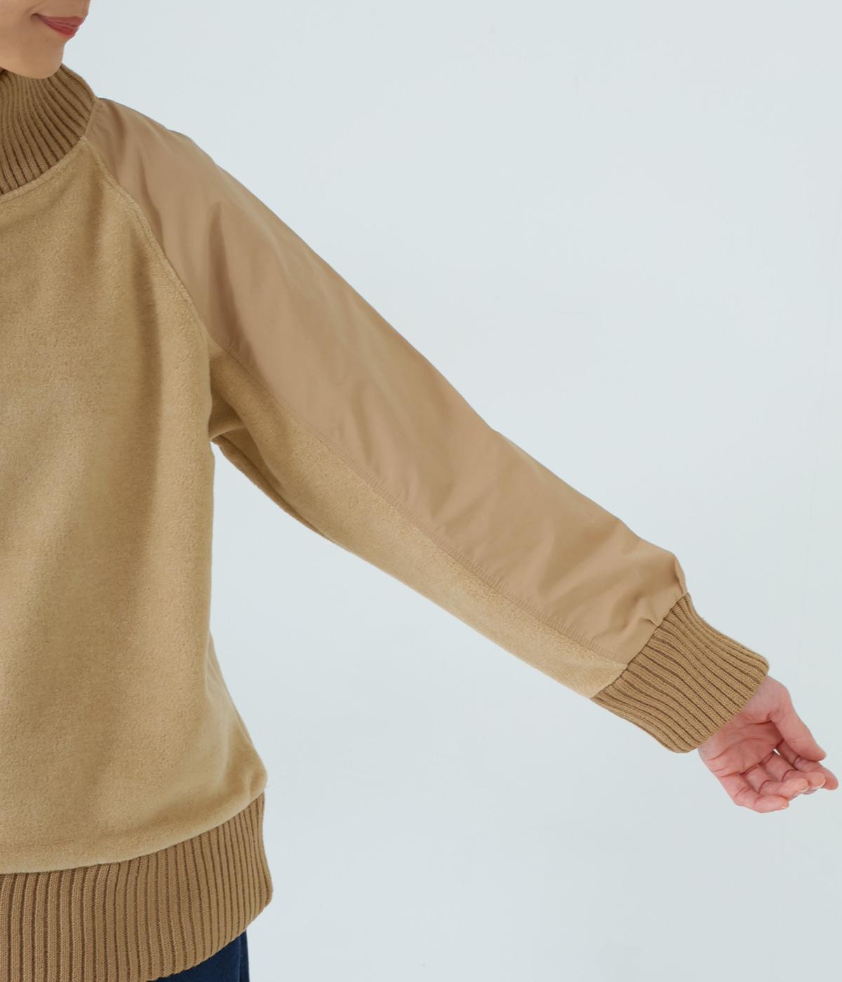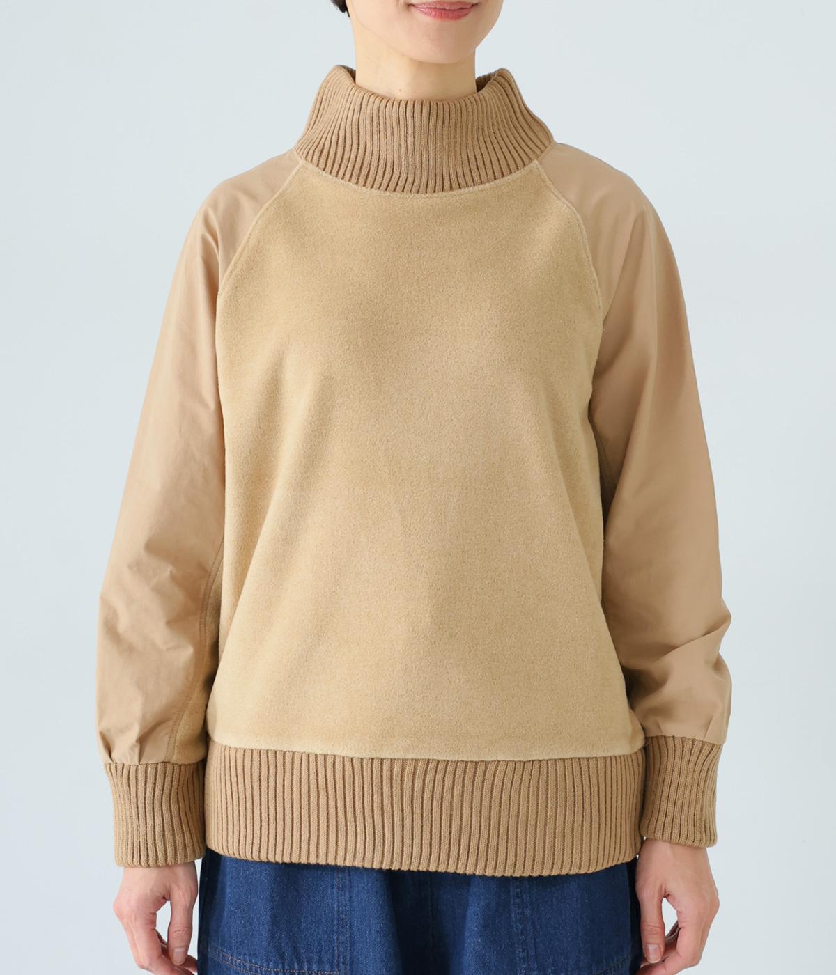 袖部分に布帛生地を組み合わせた表情豊かなプルオーバー。起毛感のある身頃に対し、さらりとした布帛生地が全体をすっきりと見せてくれます。ハイネックや裾と袖口には厚みのあるリブを使用して、カジュアルさとあたたかさをアップしました。