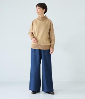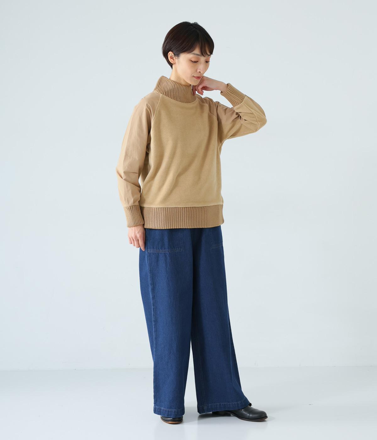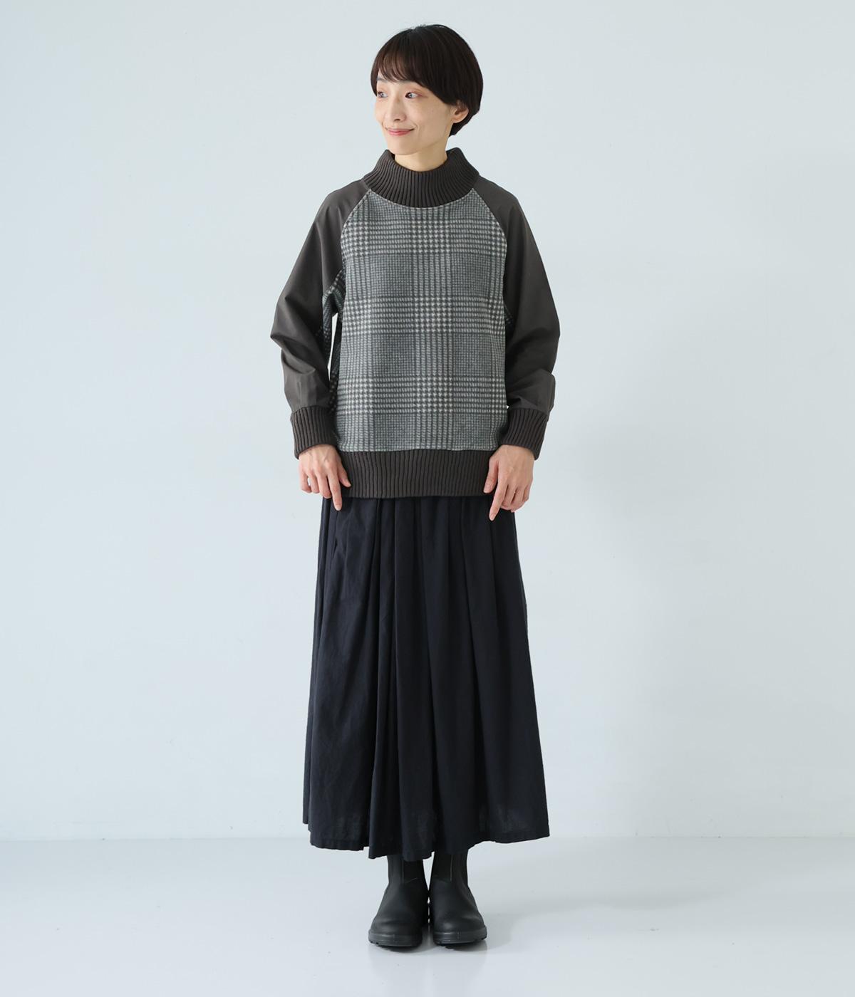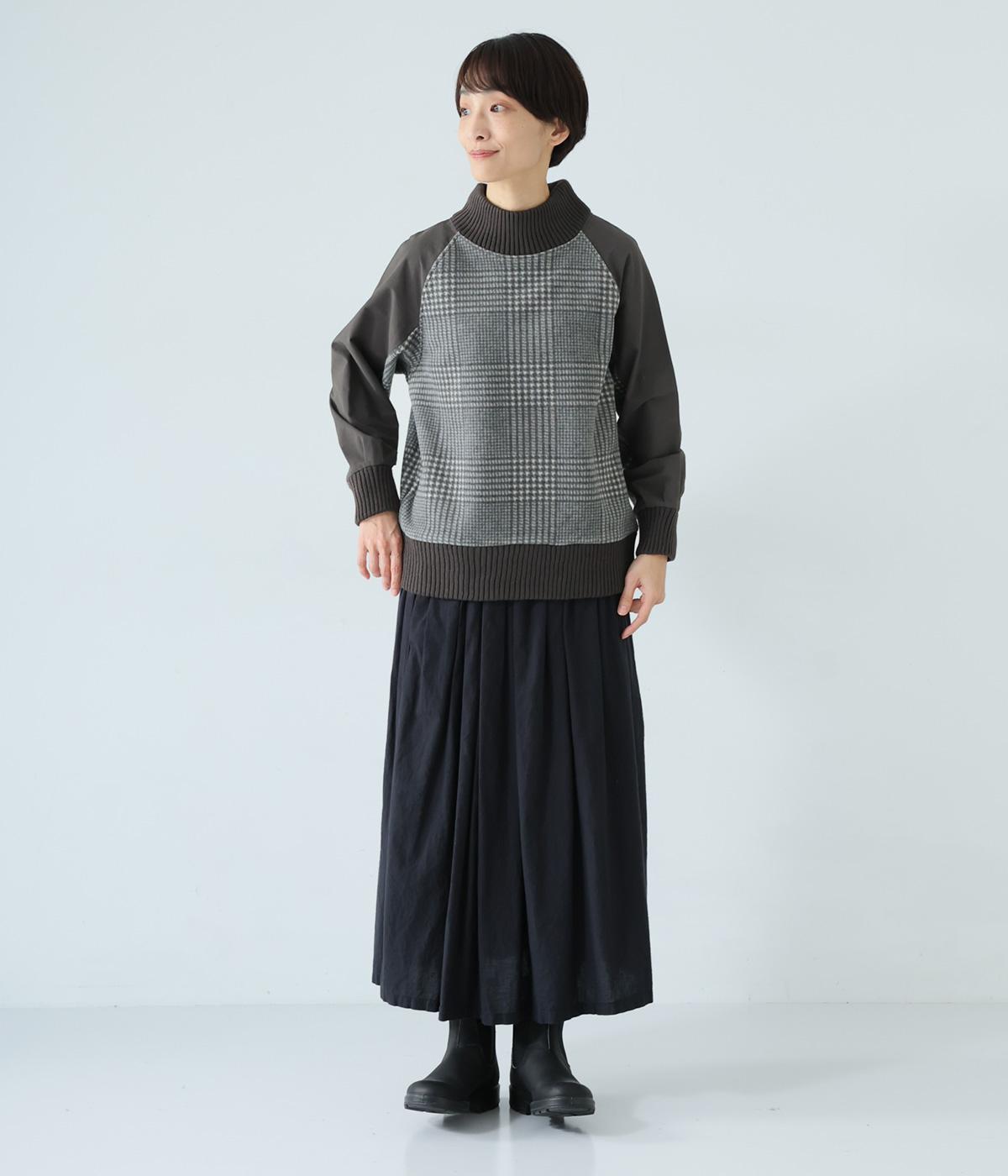 袖部分に布帛生地を組み合わせた表情豊かなプルオーバー。起毛感のある身頃に対し、さらりとした布帛生地が全体をすっきりと見せてくれます。ハイネックや裾と袖口には厚みのあるリブを使用して、カジュアルさとあたたかさをアップしました。