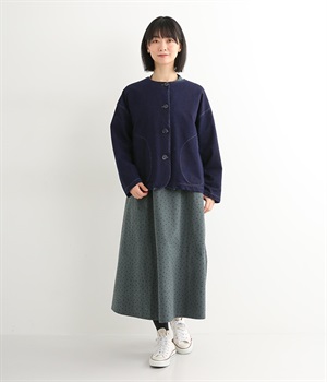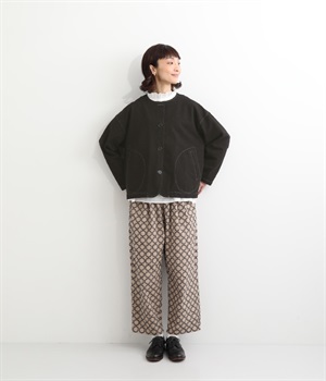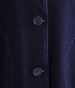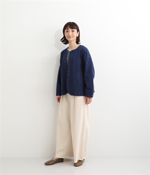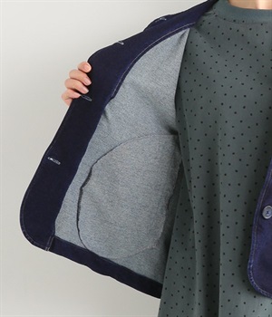 裏毛生地を使用したデニムジャケットです。ストレッチがきいているので動きやすく、ストレスフリーの着心地が楽しめます。顔まわりをすっきりと見せるノーカラーと、ポケットのステッチがポイント。タートルニットやフリルカラーのブラウスとの相性も抜群です。季節の変わり目にはもちろん、ストールやマフラーを合わせれば肌寒い日にも活躍します。