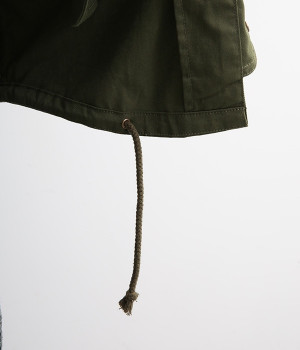 ハリのあるコットンツイル素材で仕立てたフーディーブルゾンです。シックなアースカラーのボディに、前立てやポケットにあしらわれたアンティークゴールドのボタンがさり気ないアクセントに。ラフに羽織れる軽めのアウターは、季節の変わり目に頼れる一着です。ほどよくゆったりとした作りで、インナーにニットなどの厚手アイテムを合わせても窮屈感なく着用できます。バックスタイルはモッズコートのような燕尾デザインがミリタリーな要素をプラス。裾のひもを絞ってシルエットに変化をつけた着こなしも楽しめます。