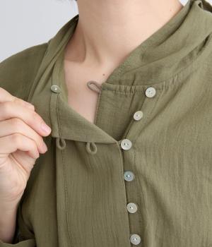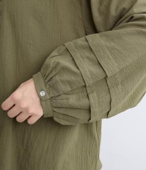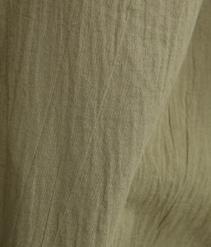 強撚糸で織った生地を加工で撚り戻したコットンクレープ生地。自然なシワ感とドライタッチが特徴です。肌ばなれよく軽やかな着心地です。