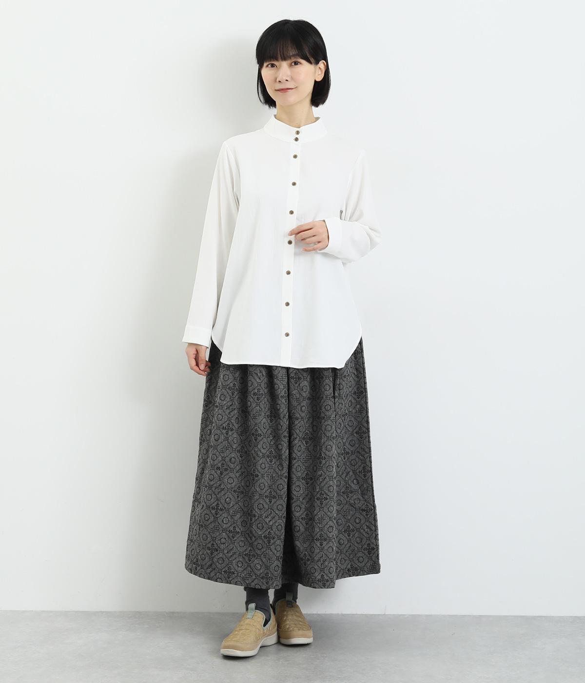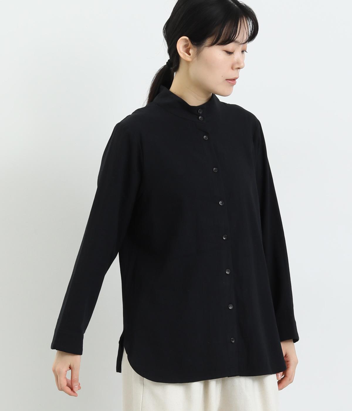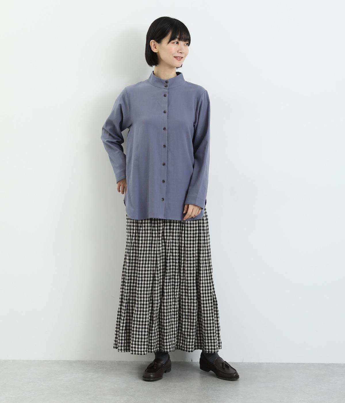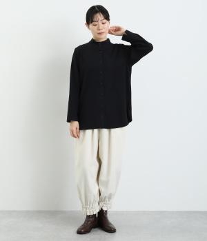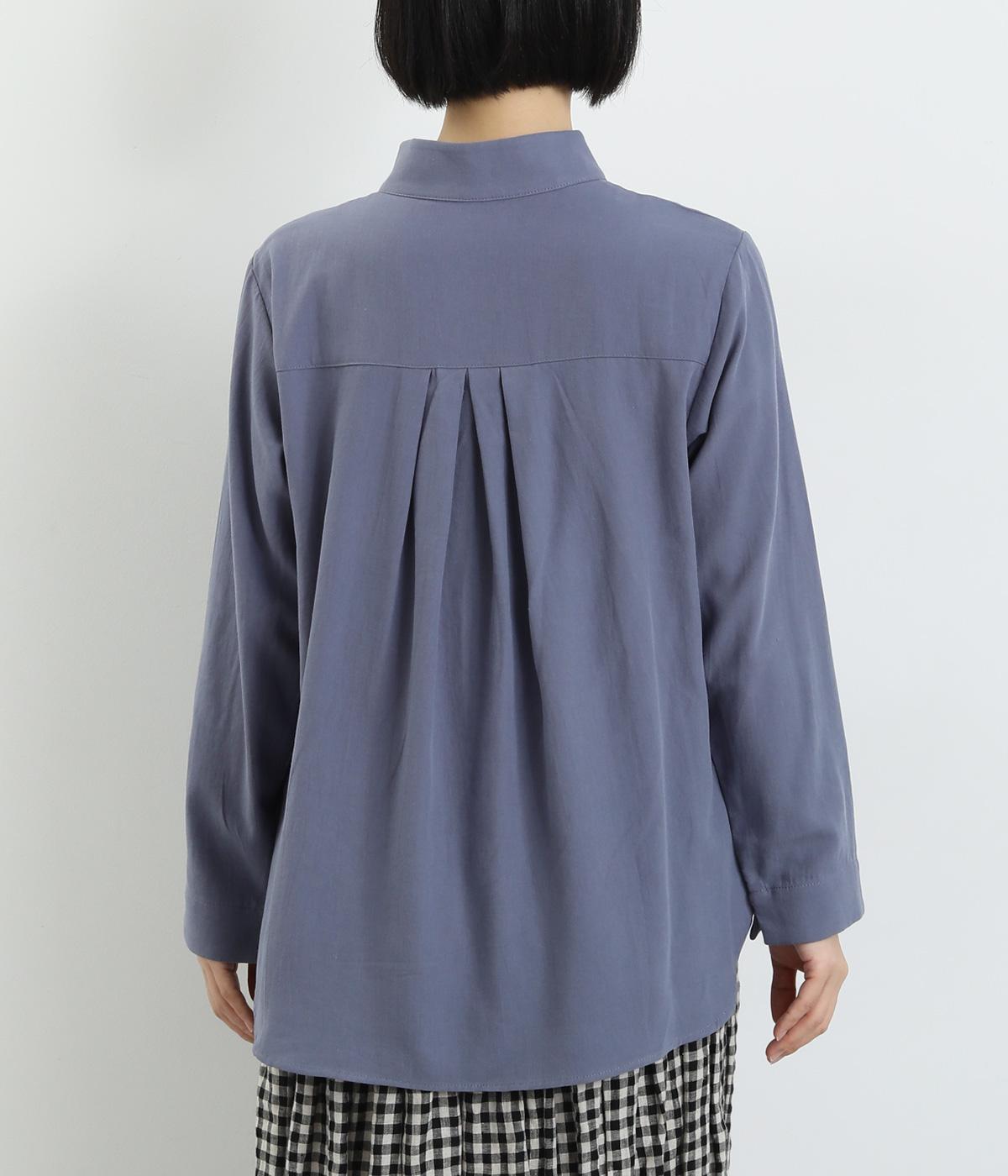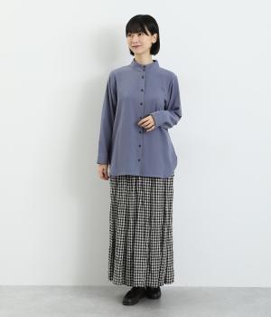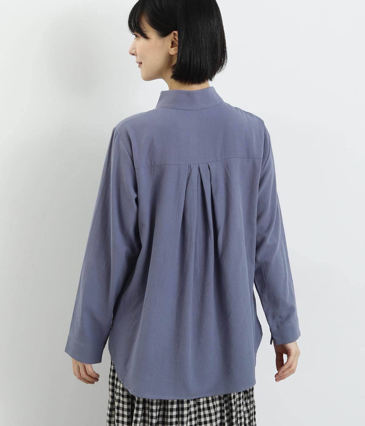 品のあるモックネックが特徴的なブラウス。前はすっきりと、後ろは切り替えタックを施して、動きのあるデザインに仕上げています。袖口には抜け感を添えるスリット入り。ニットやジャンパースカートなどのインナーとしても重宝します。