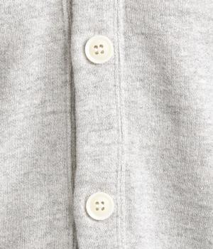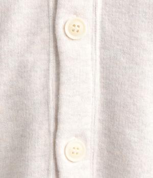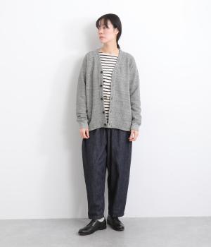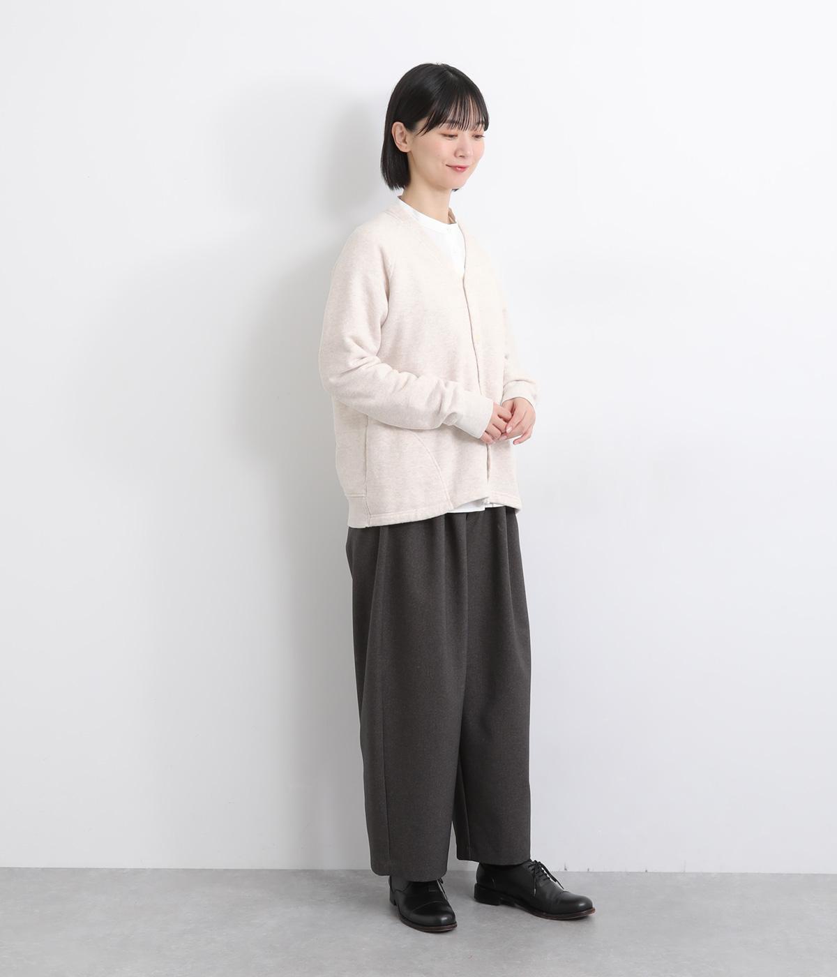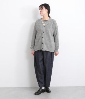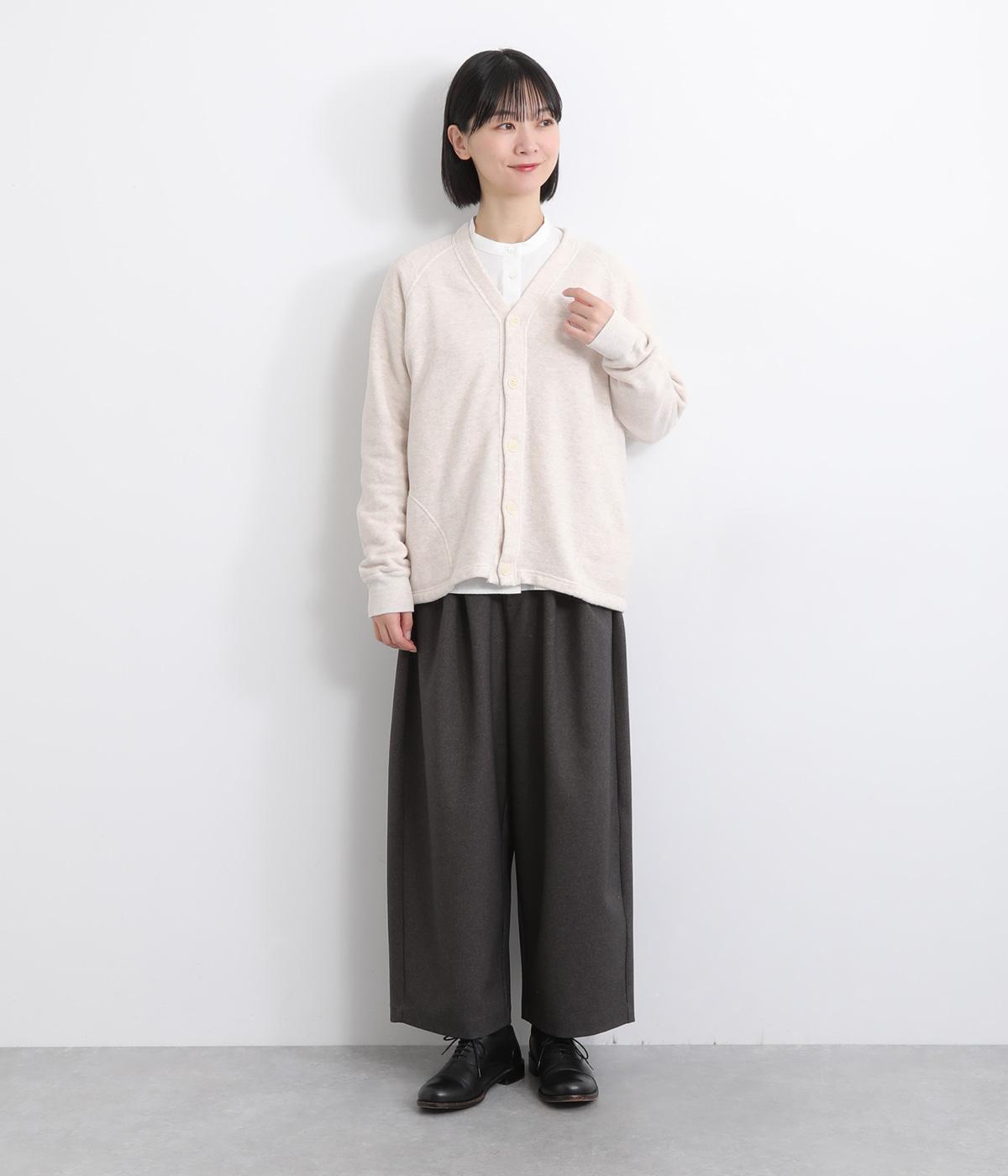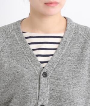 シンプルなVネックカーディガンを肌ざわり抜群のコットンガーゼ裏毛生地で仕立てました。ラグラン袖が抜け感のあるリラックスした着心地です。ポケット部分の曲線のステッチがアクセントになっています。