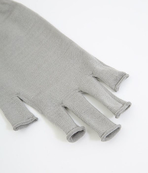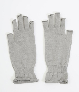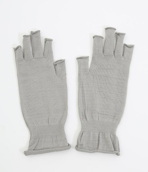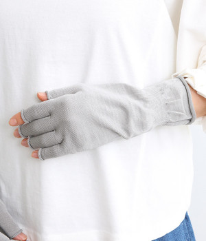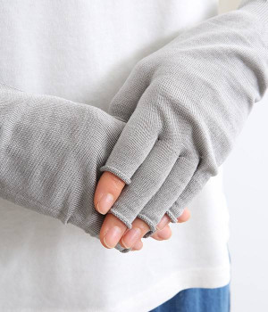 シルクの絹紡糸を肌に触れる内側部分に贅沢に使ったアームカバーです。シルクは天然のUVカット効果があり、お肌に優しい素材でつけ心地も抜群。ショート丈は春先の陽射しの強い時季から秋口まで長く使えて、手元の日焼けや手の甲のシミ防止にもおすすめです。指先は出る仕様なので、スマートフォンの操作やスポーツ、屋外での作業もしやすいのが嬉しいポイント。