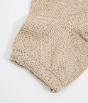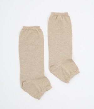 熱がこもりにくく、通気性にすぐれたコットンリネンを混紡したレッグウォーマー。ゆったりとはけるシルエットにしつつ、かかとがおさまるようにつくることで安定感を持たせました。内側にはシルクの糸を用いて汗ムレをしっかりと防止。リラックスしたいおうち時間だけでなく、サンダルに合わせていつもと違う足元スタイルをつくるのも素敵です。
