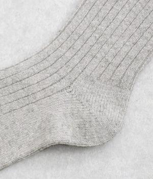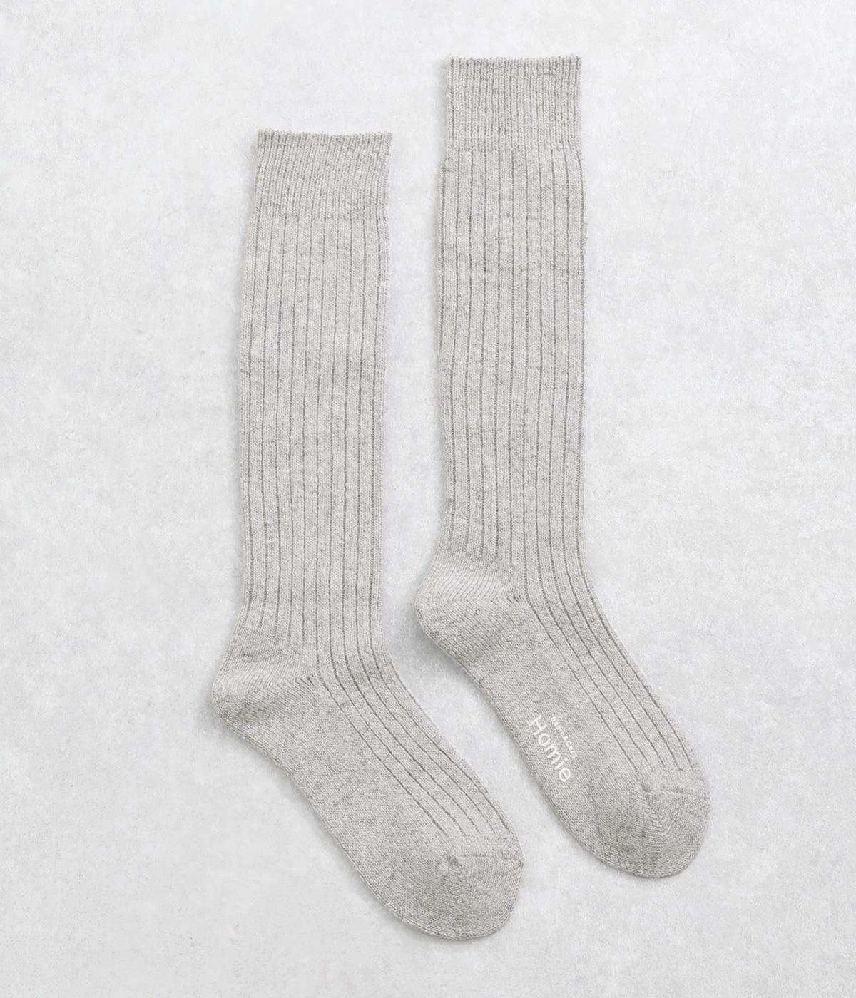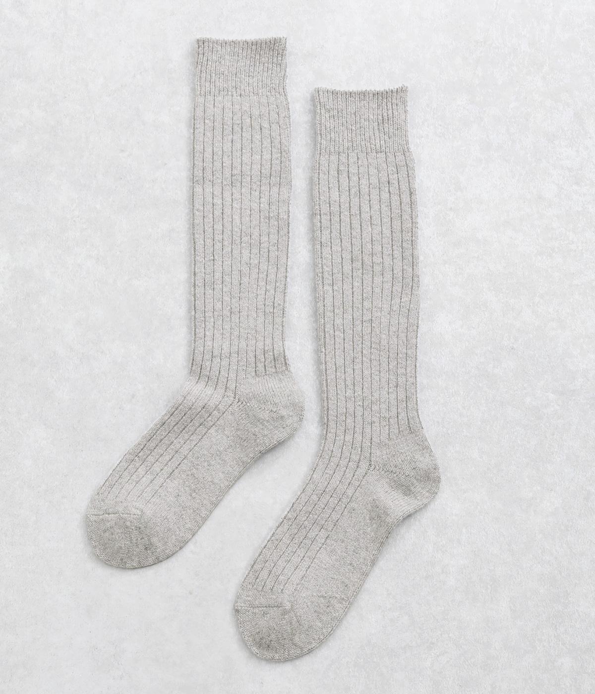 シンプルなリブ編みは、ナチュラルにもきれいめなスタイルにもなじみます。膝下までとどくハイソックス丈で、スカートやワンピース、ショートブーツとの相性もばつぐんです。ていねいな編み立てなので、しめつけ感が少なく、長時間はいても快適な一足。