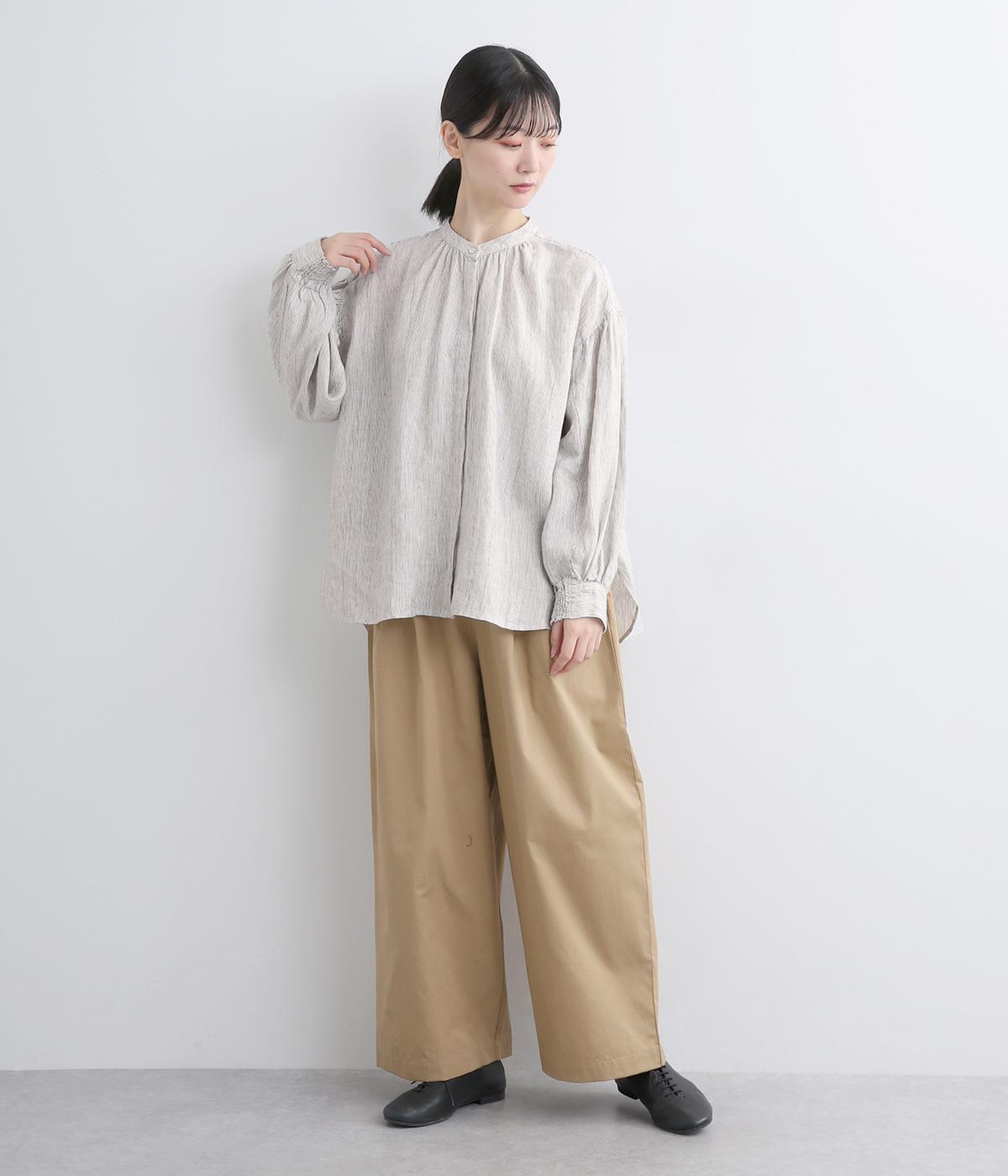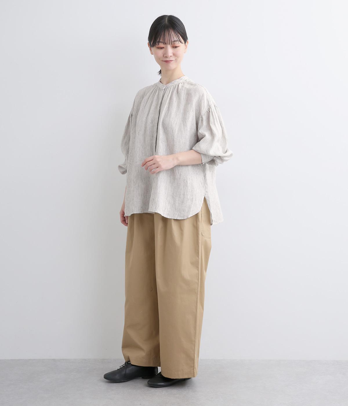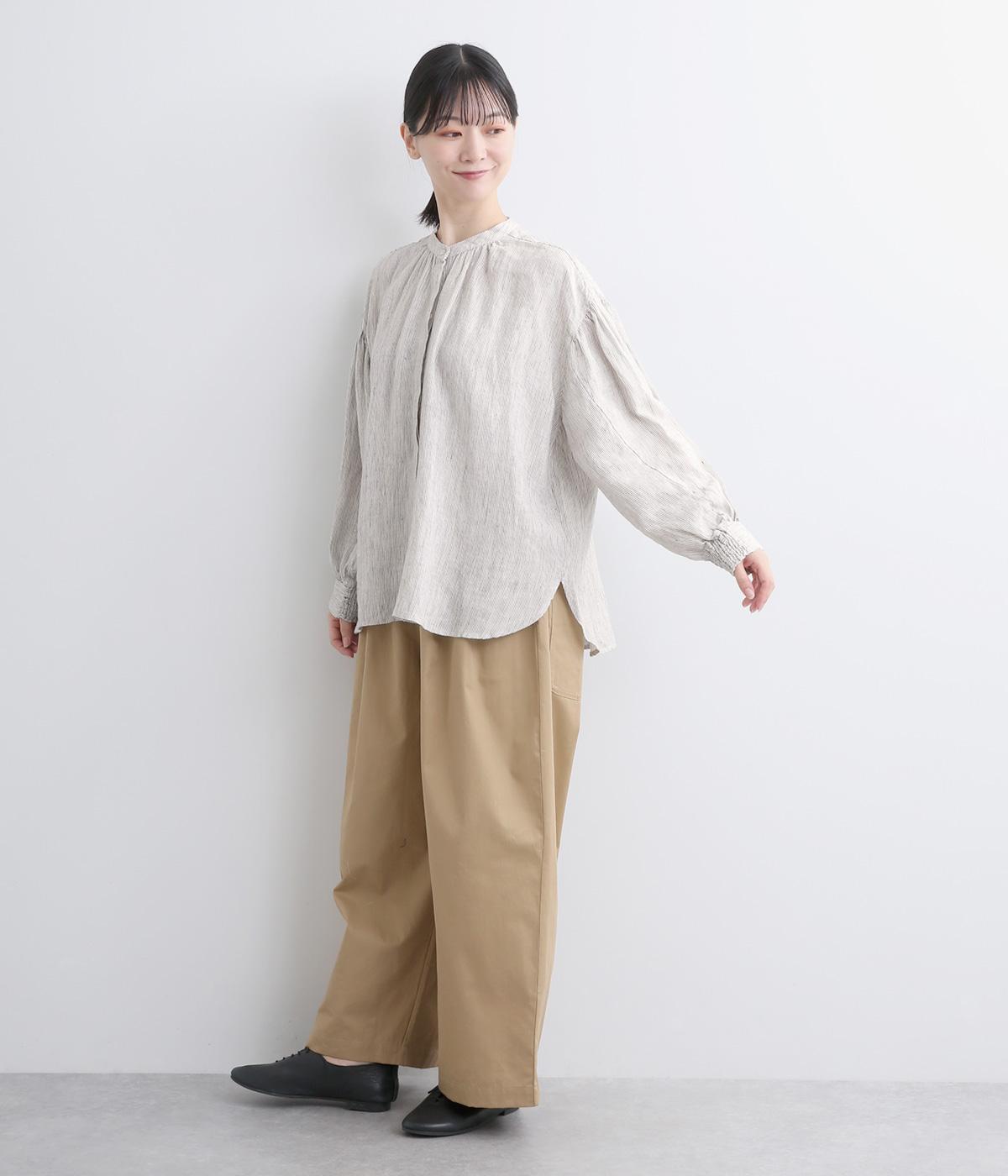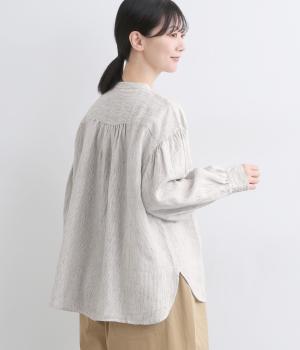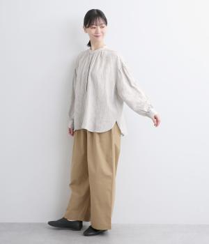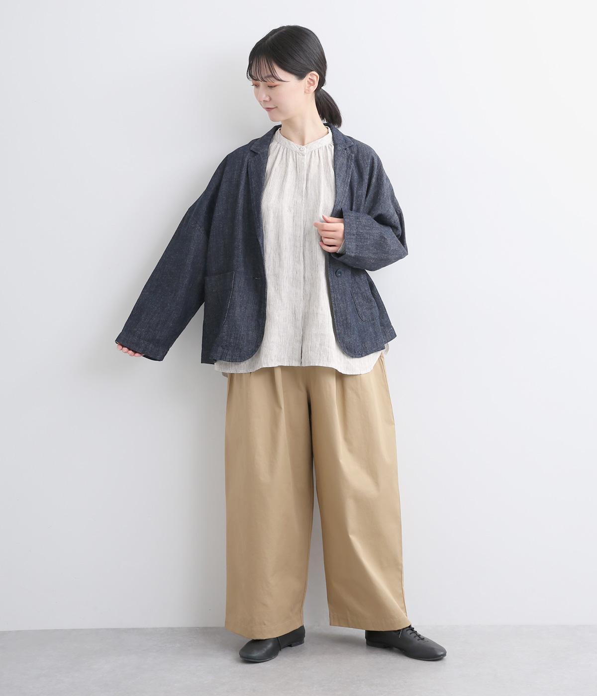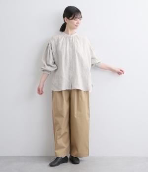 適度にやわらかで羽織りやすく、ナチュラルな風合いが魅力のリネン生地を用いています。特有の落ち感とほどよいふくらみで着心地も快適です。