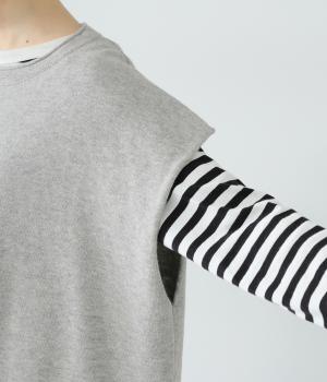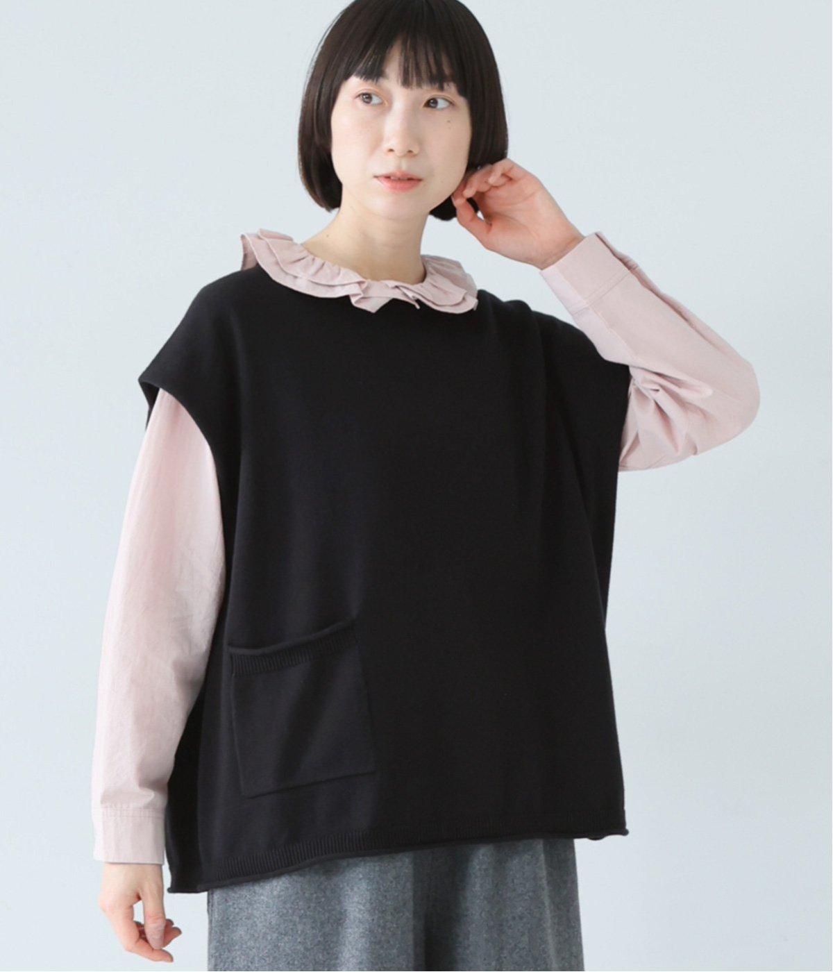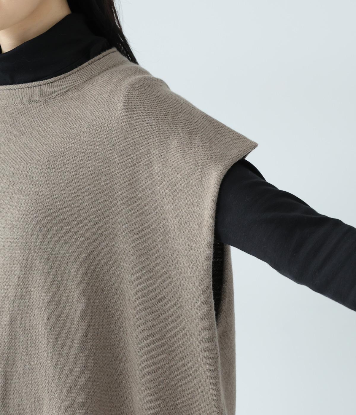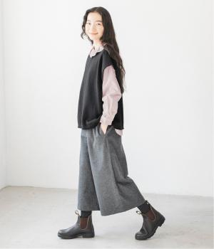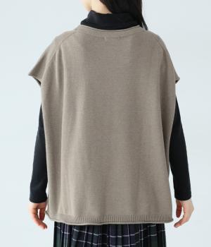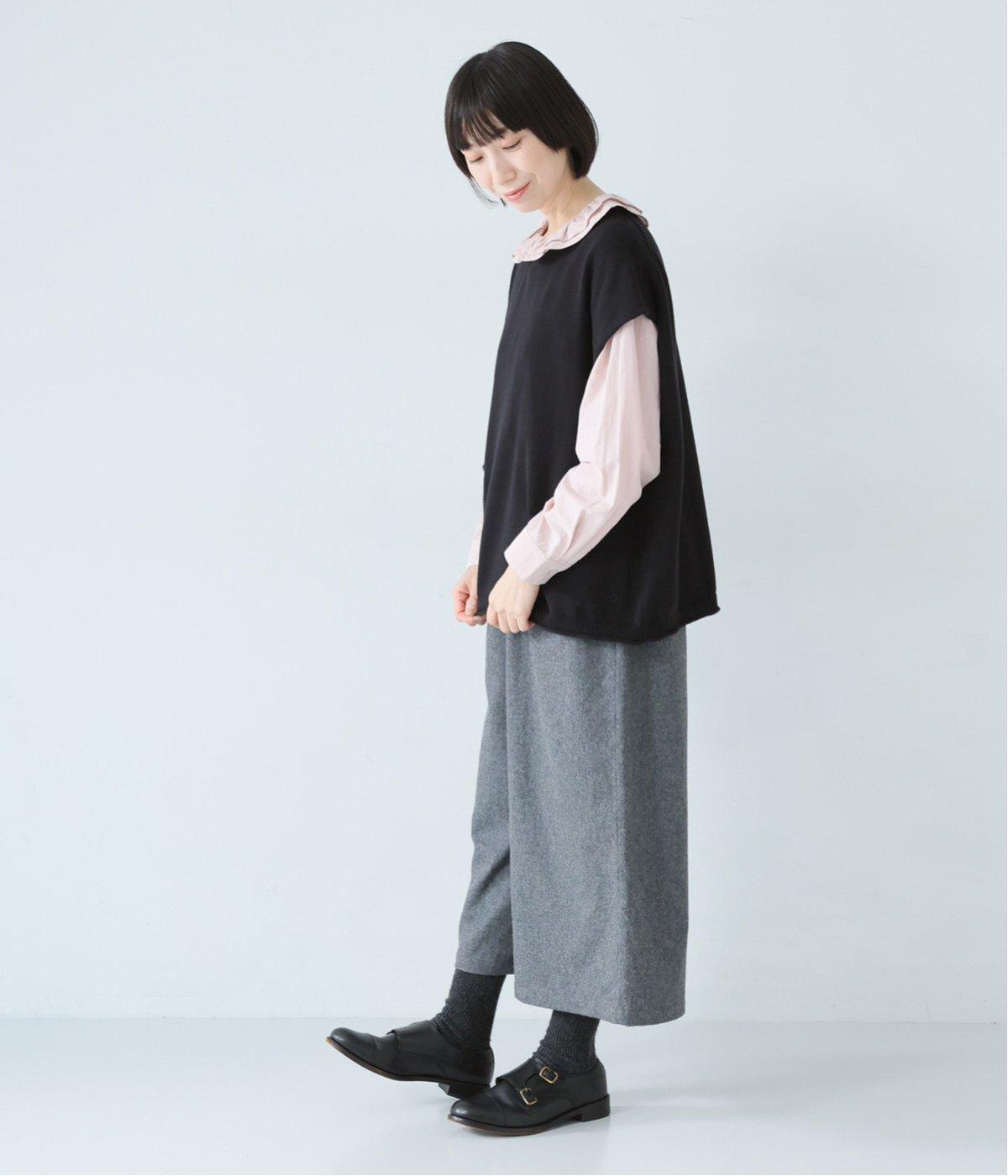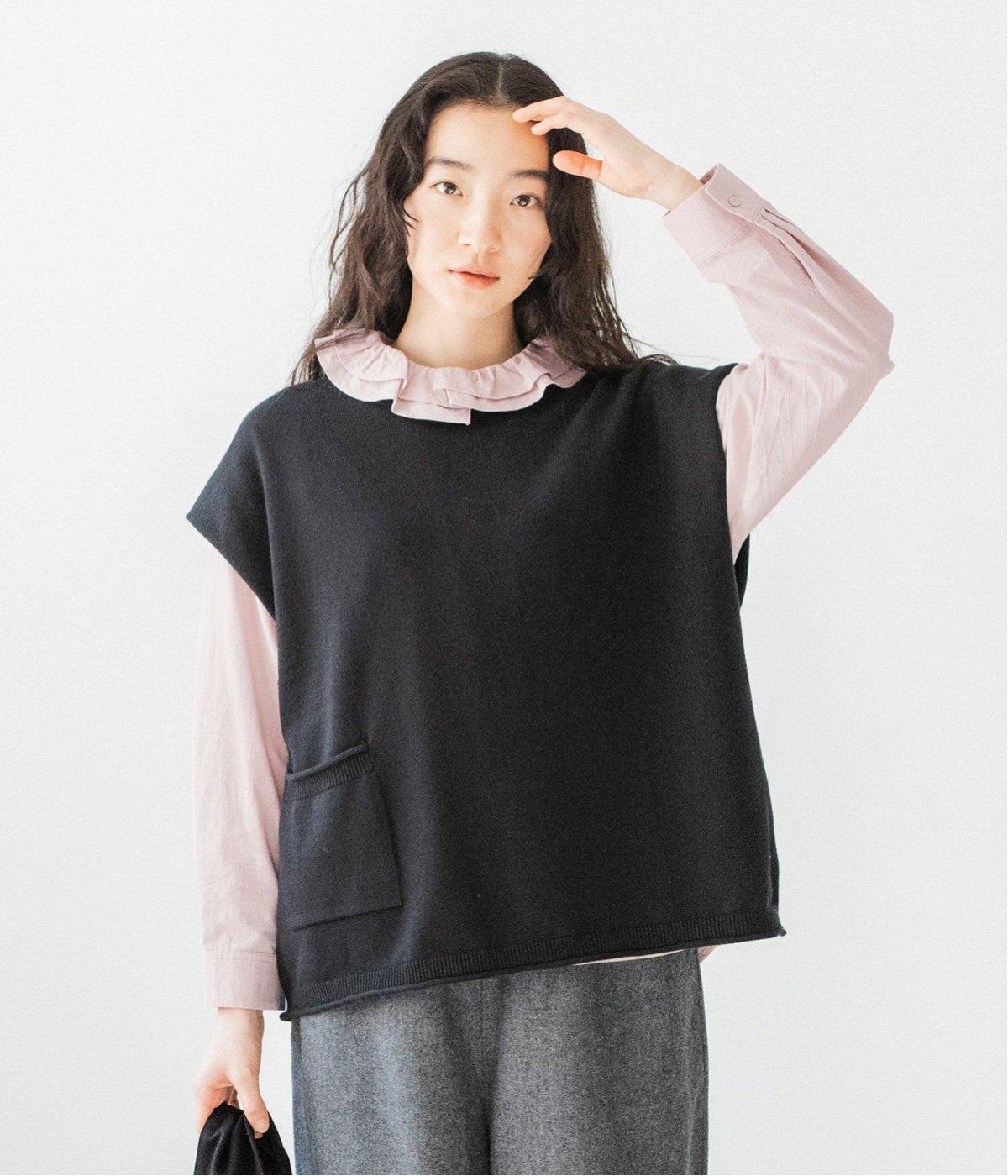 襟やポケット口のロール仕様やドロップした肩ラインなど、ディテールにこだわりを感じるベストです。ゆったりとしたシルエットで、リラックスした雰囲気が楽しめる一枚。アームホールが広いので、合わせるインナーを選ばないのもうれしいポイントです。