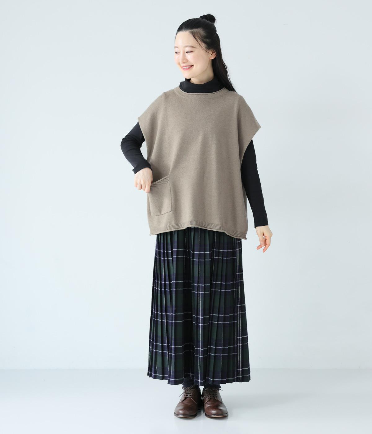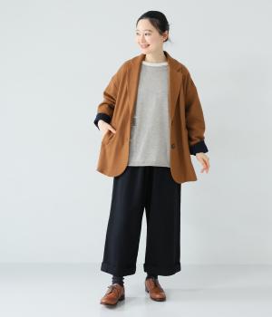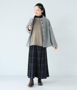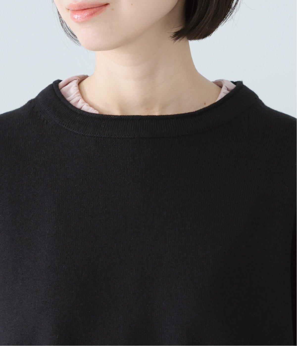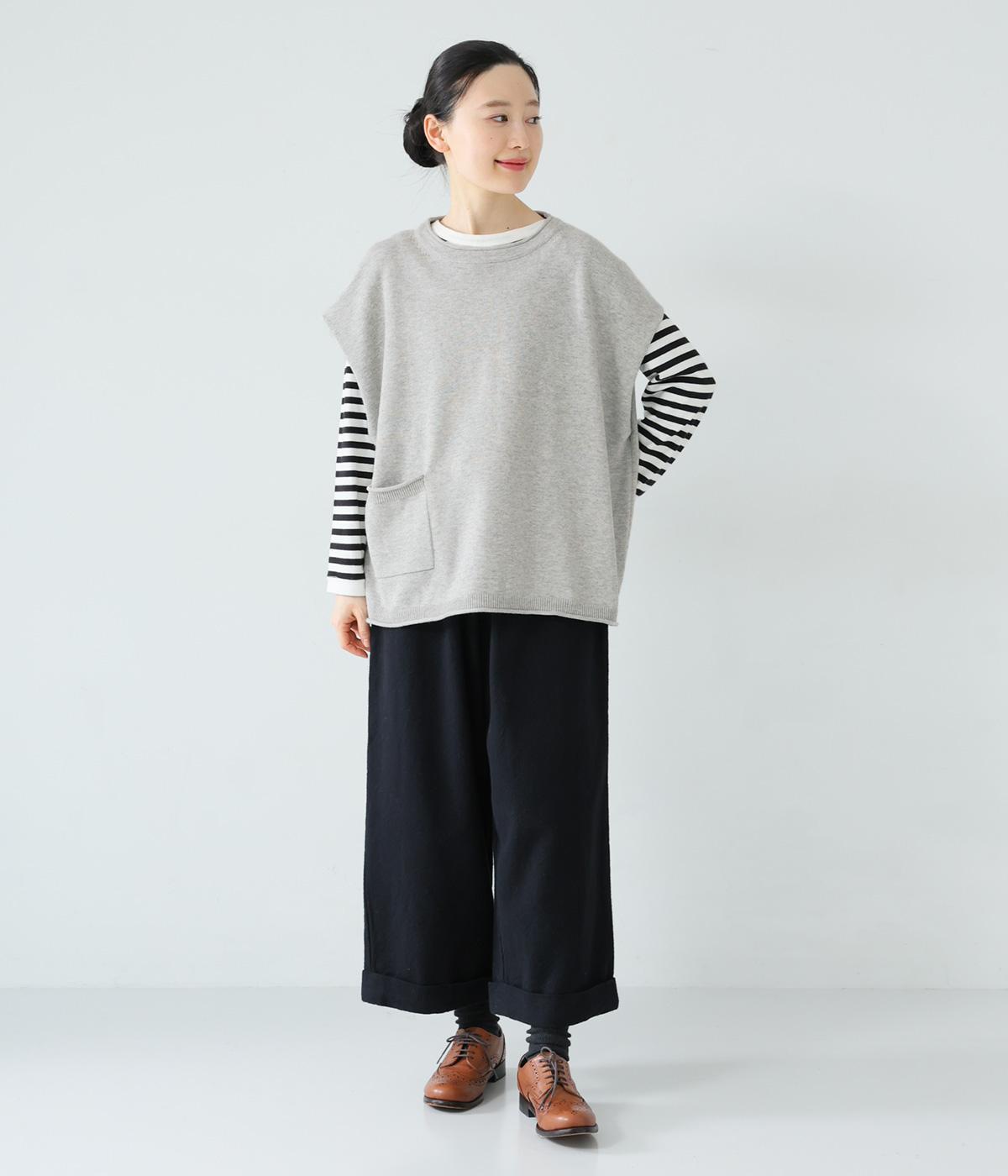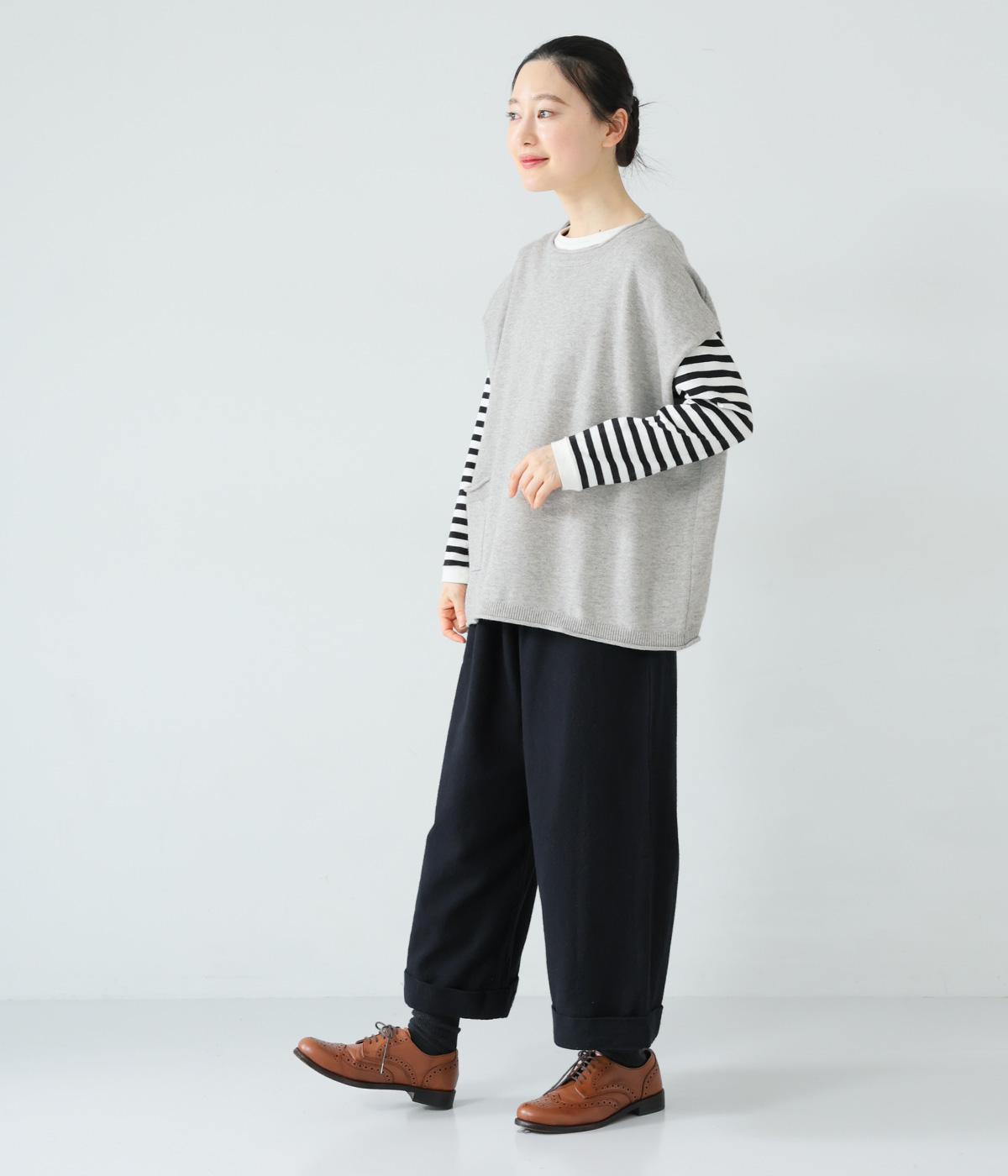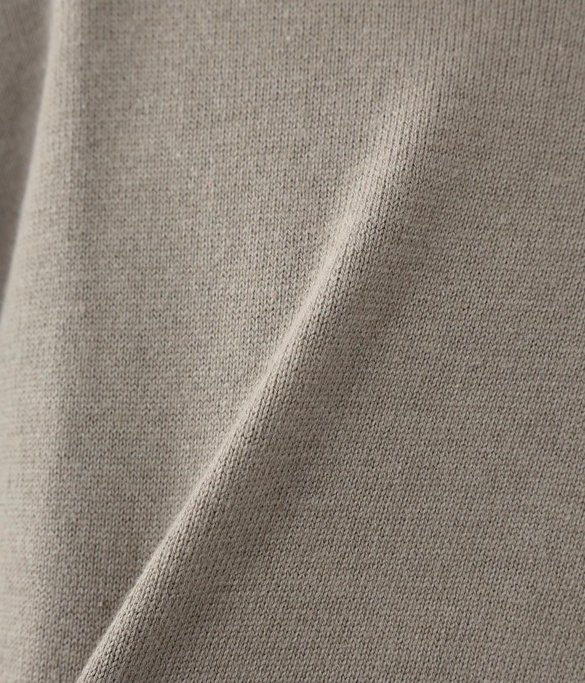 コットンとウールを混紡したあたたかみのあるニット生地。チクチクしにくいやさしい風合いで、素肌に触れても安心です。重ね着してもごわつきにくい、ほどよい厚みに仕上げています。