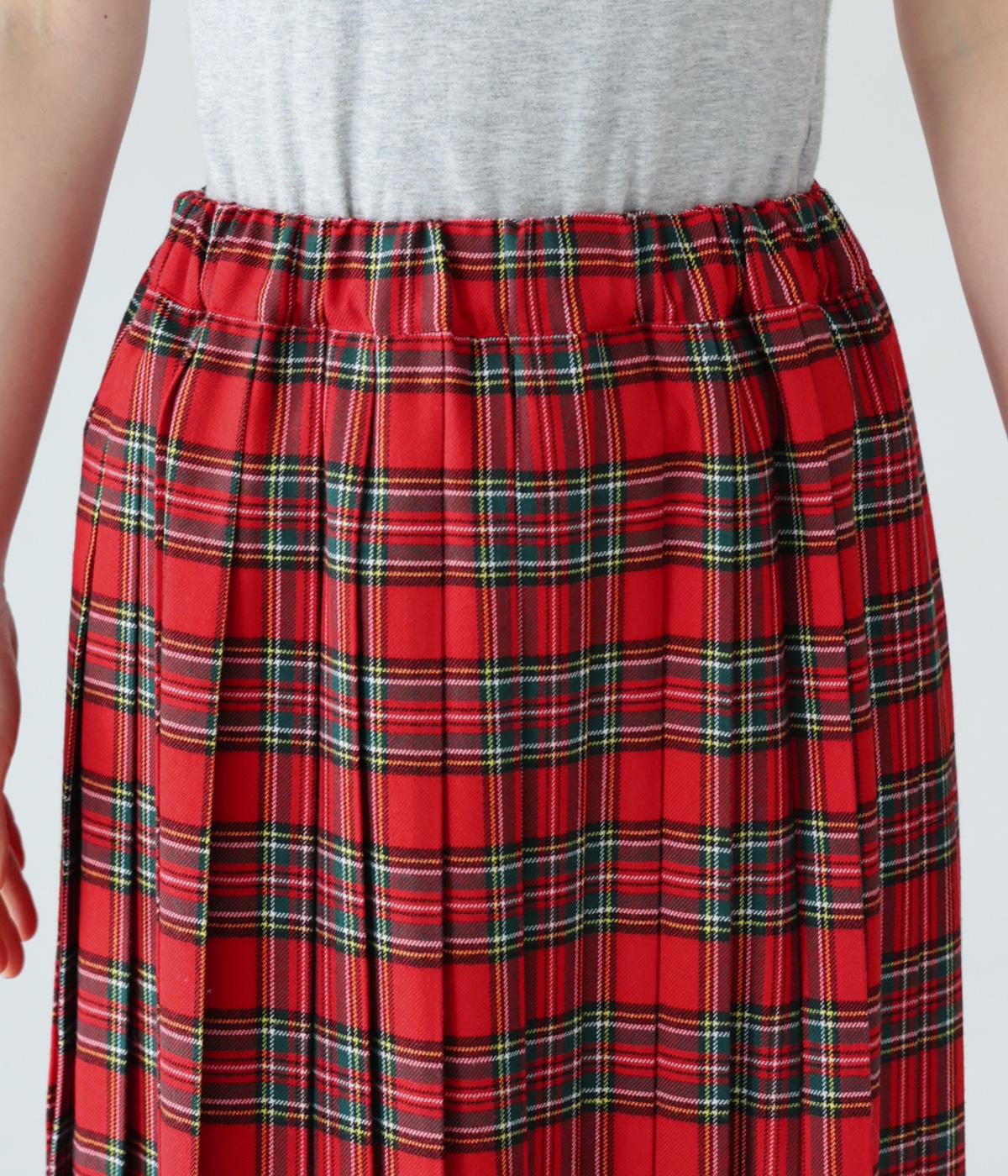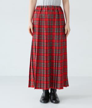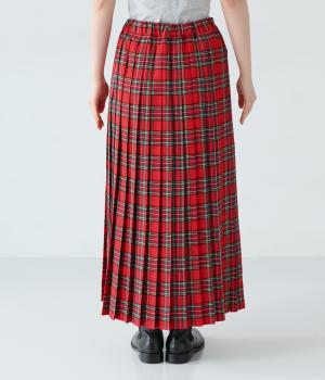 美しいプリーツ加工と英国風のタータンチェックがトラッドな雰囲気を醸し出すロングスカート。流行に左右されない王道のデザインは、大人のコーディネートにもぴったり。ウエストはオールゴム仕様で、紐で調節ができます。