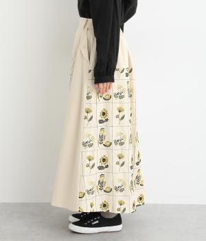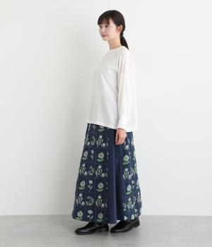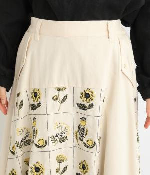 コットンお花とライン刺繍スカート(アイボリー-F)