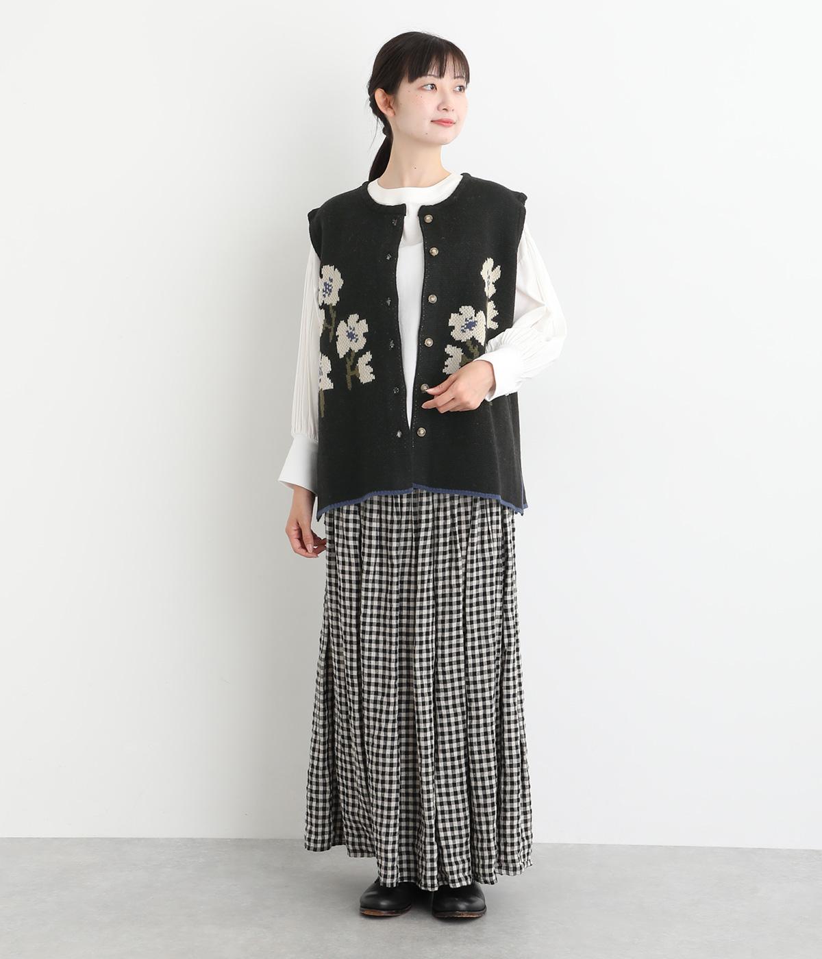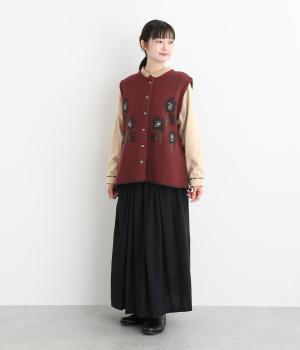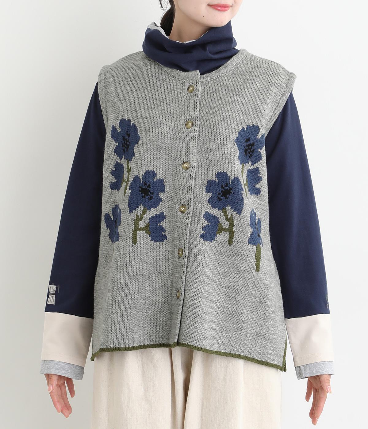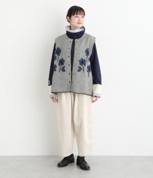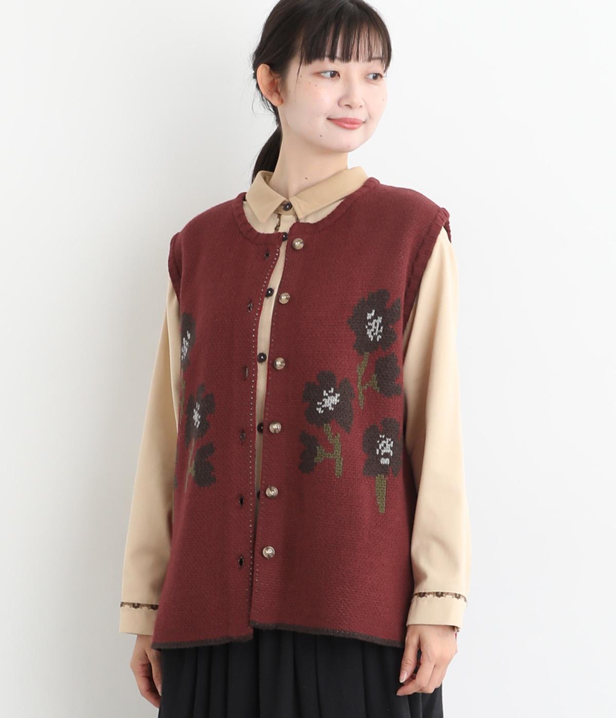 大胆ながらも品がありシックな印象の花柄ジャカードベスト。裾のパイピングがさりげないアクセントになっています。ゆったりしたシルエットとサイドのスリットでインナーを選ばず着こなせます。サッと羽織るだけで主役になる一枚です。