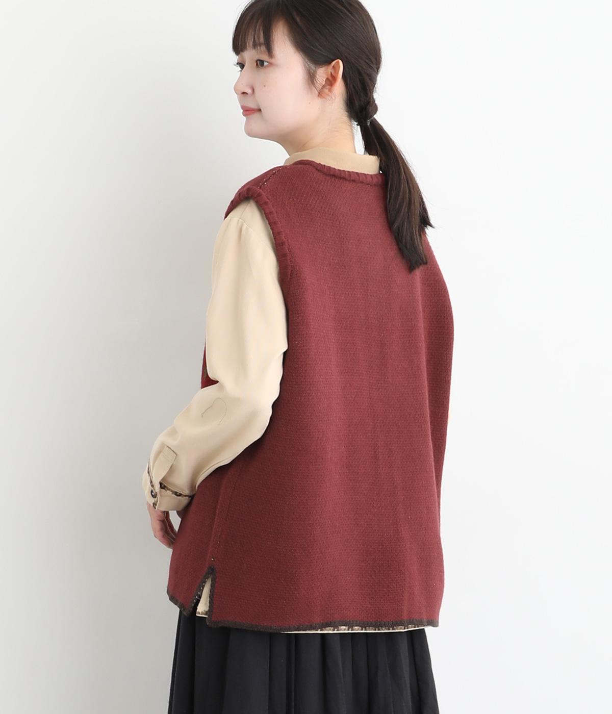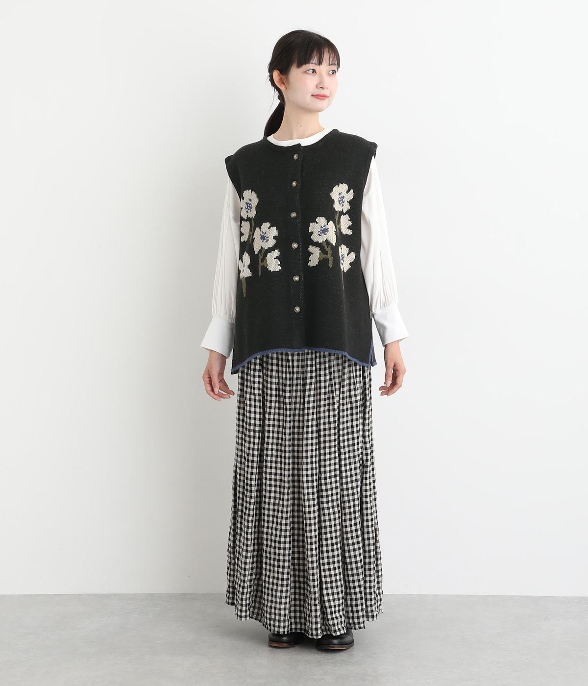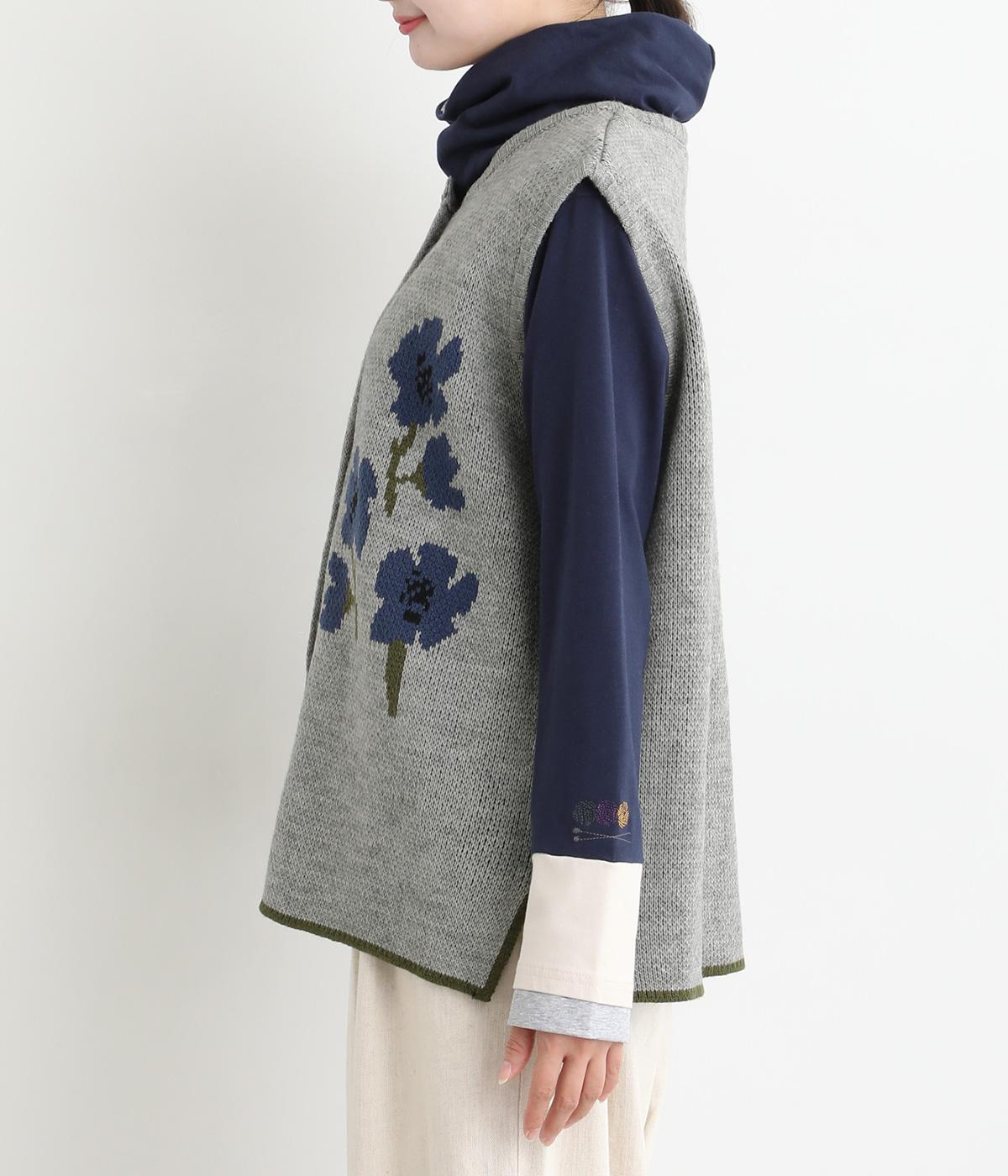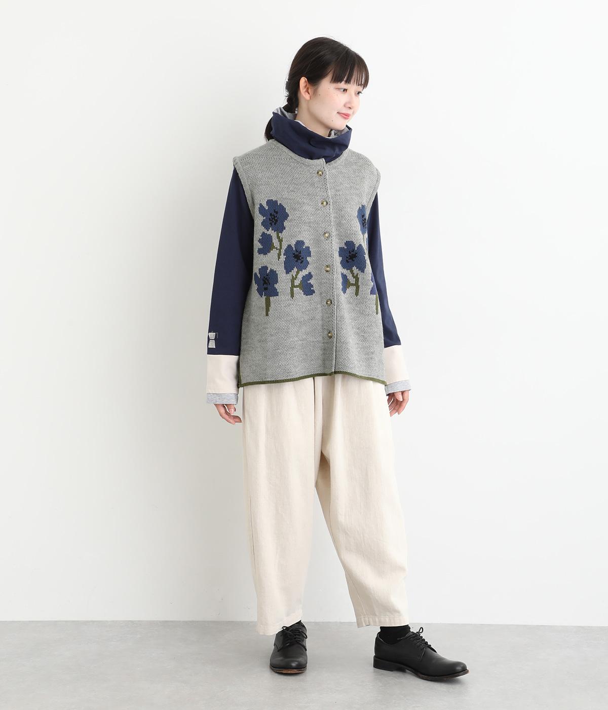 大胆ながらも品がありシックな印象の花柄ジャカードベスト。裾のパイピングがさりげないアクセントになっています。ゆったりしたシルエットとサイドのスリットでインナーを選ばず着こなせます。サッと羽織るだけで主役になる一枚です。