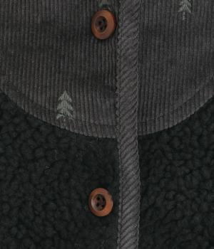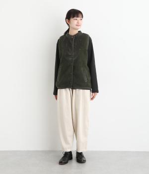 ぽこぽことした表情のボア生地にコーデュロイのブザム風の切り替えを合わせました。異素材があたたかみのある風合いにまとまっています。
