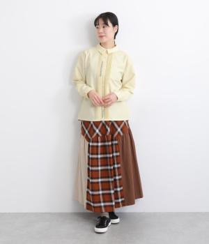 適度にしっかりとしていてきちんと見えを叶えてくれる混紡生地を使用。レーヨンのなめらかな光沢感を活かしつつポリエステルベースで心地よく仕上げた、いいとこどりな生地感です。