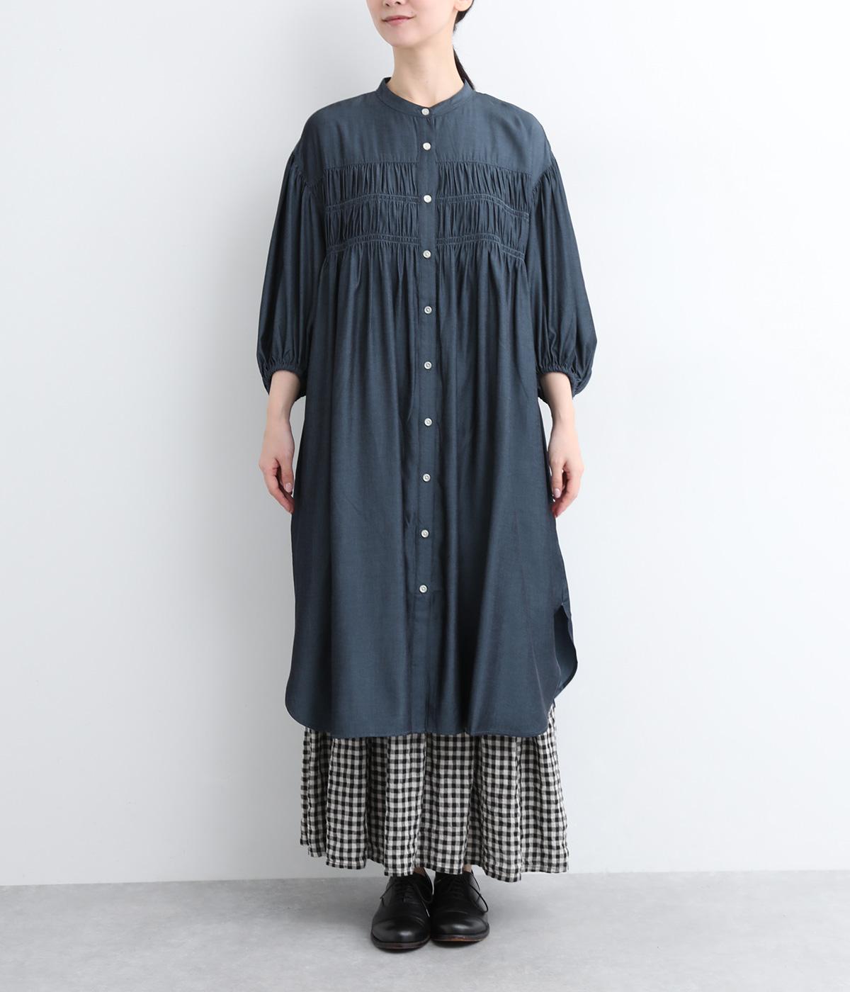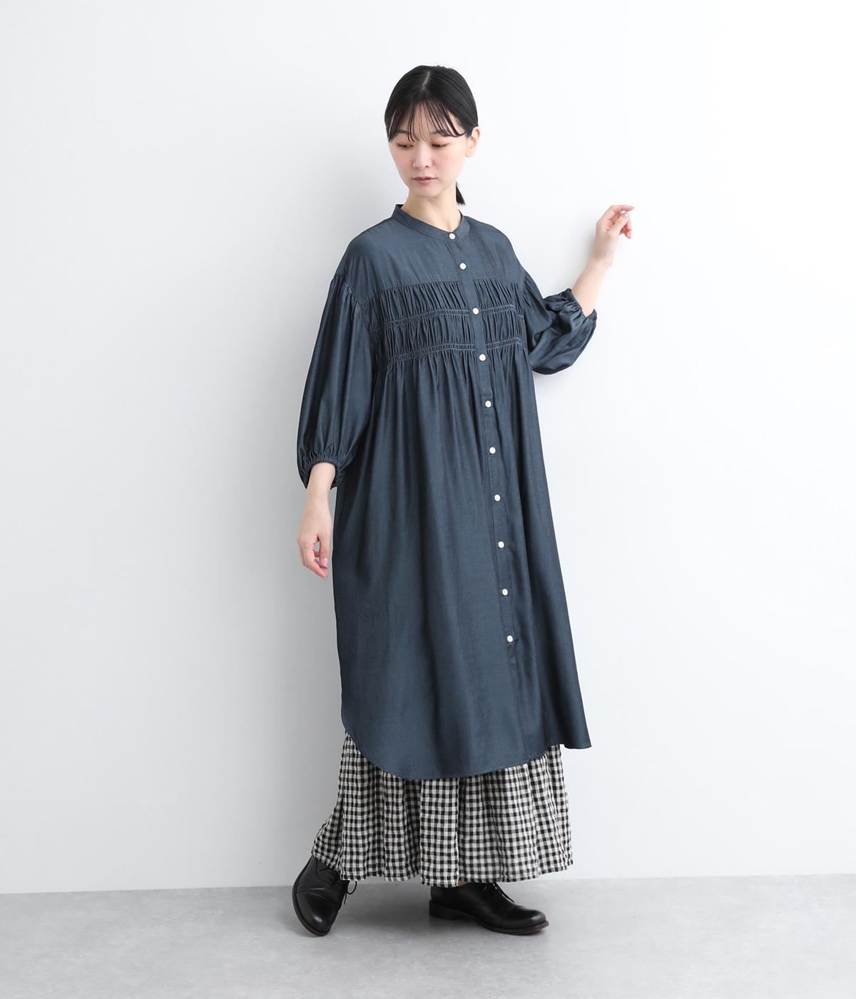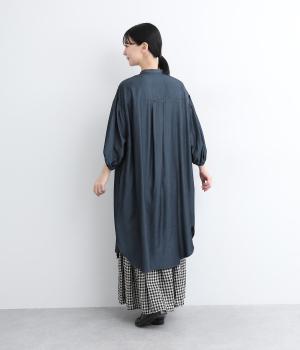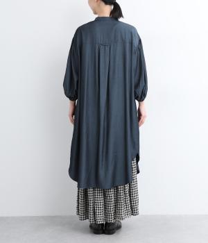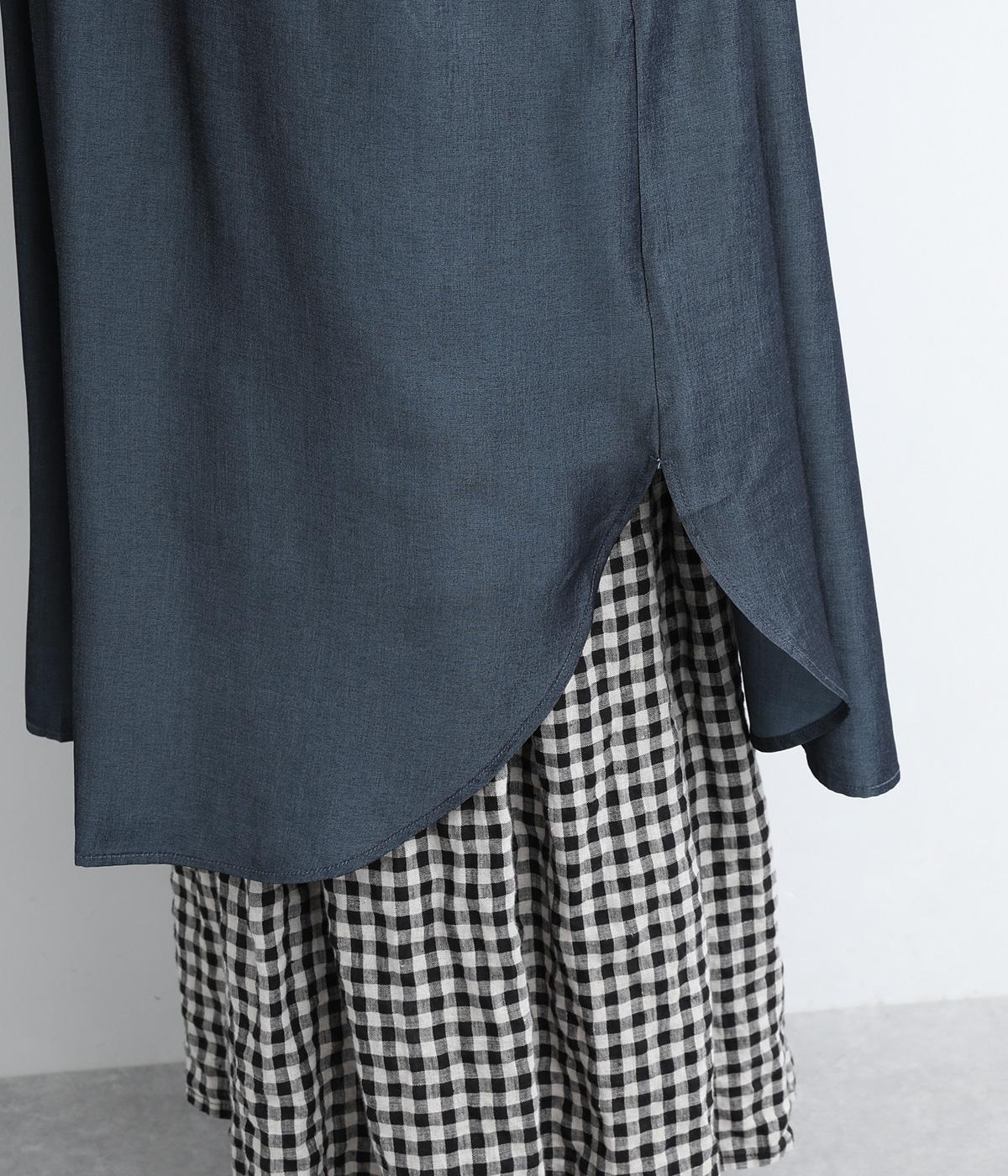 きれいめな印象に仕立てた、デニムライクなレーヨン混紡素材です。さらりとした滑らかな肌ざわりと、優しい光沢感が品の良さを高めます。