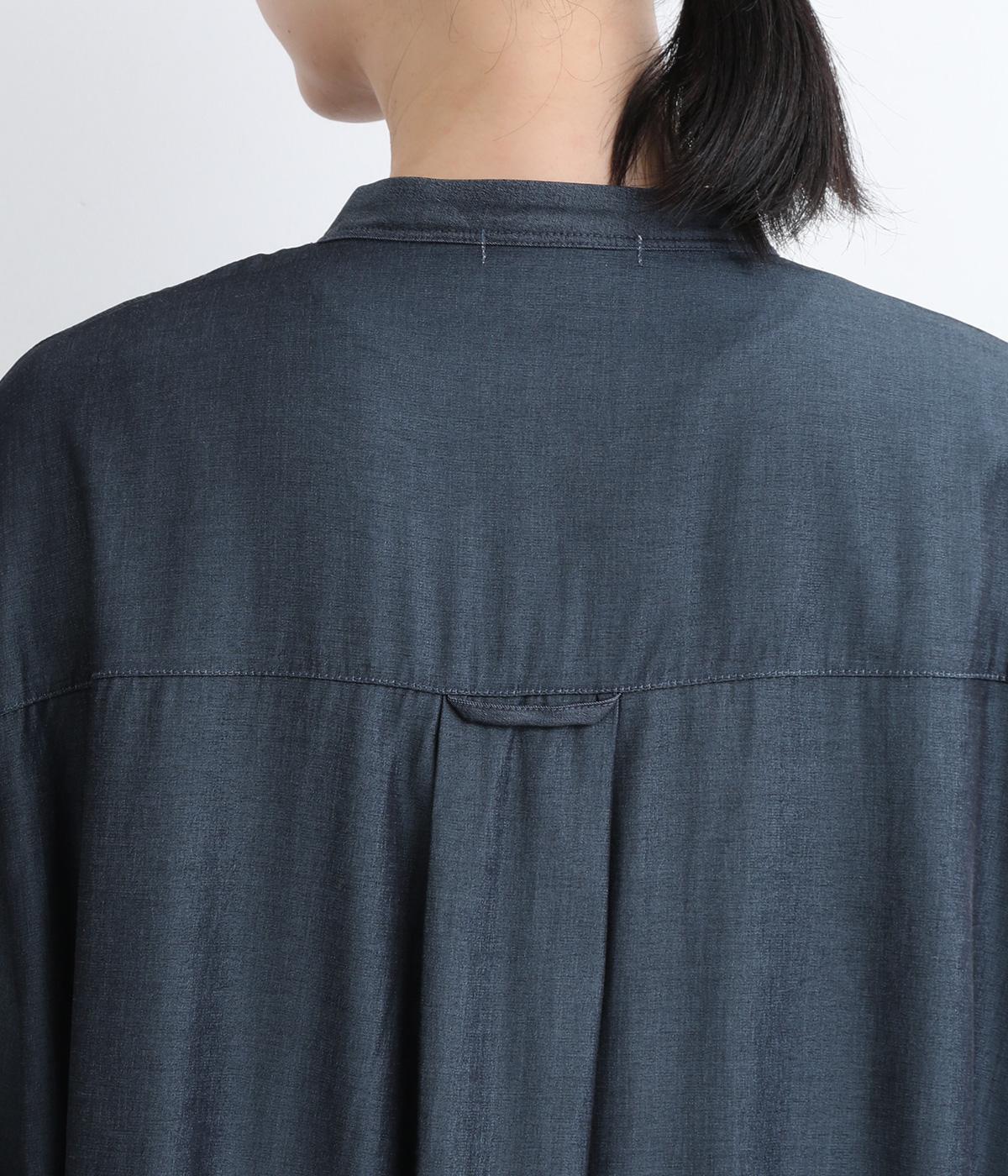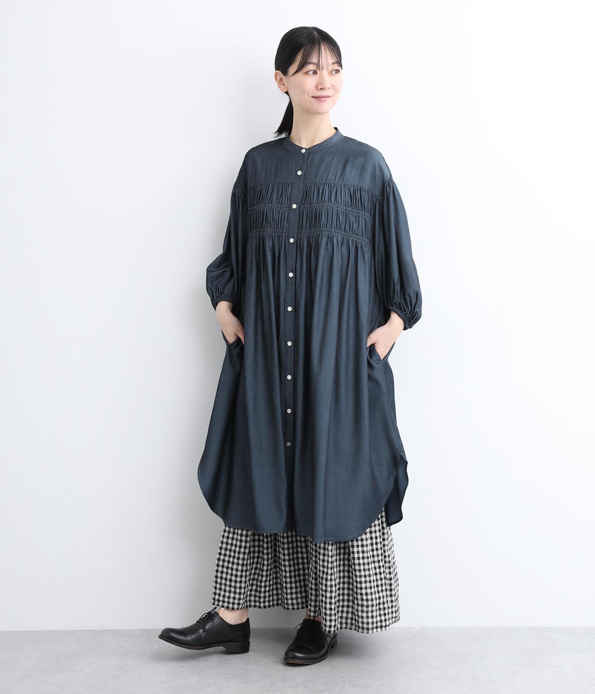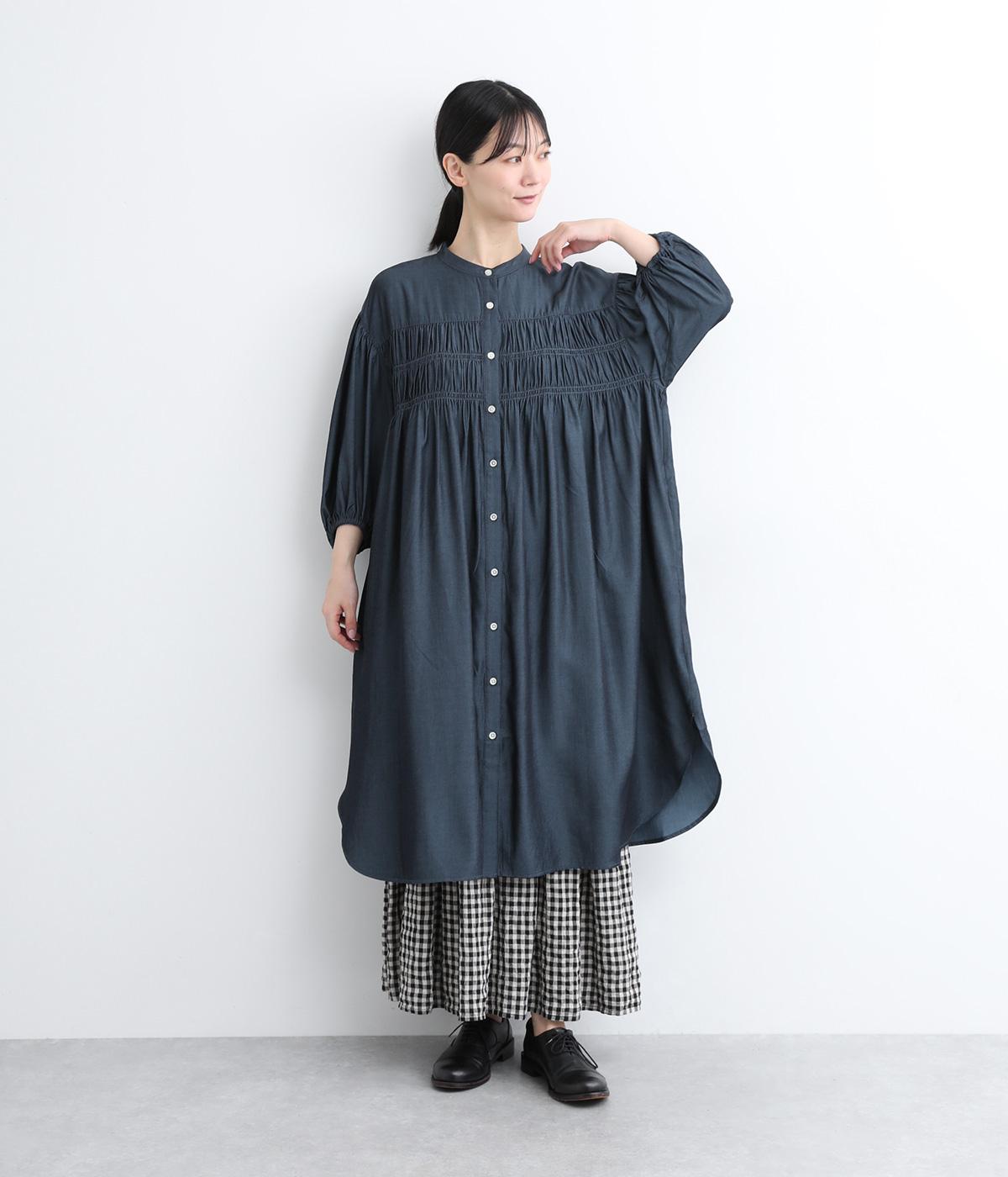 きれいめな印象に仕立てた、デニムライクなレーヨン混紡素材です。さらりとした滑らかな肌ざわりと、優しい光沢感が品の良さを高めます。
