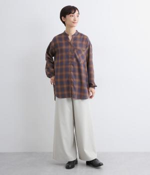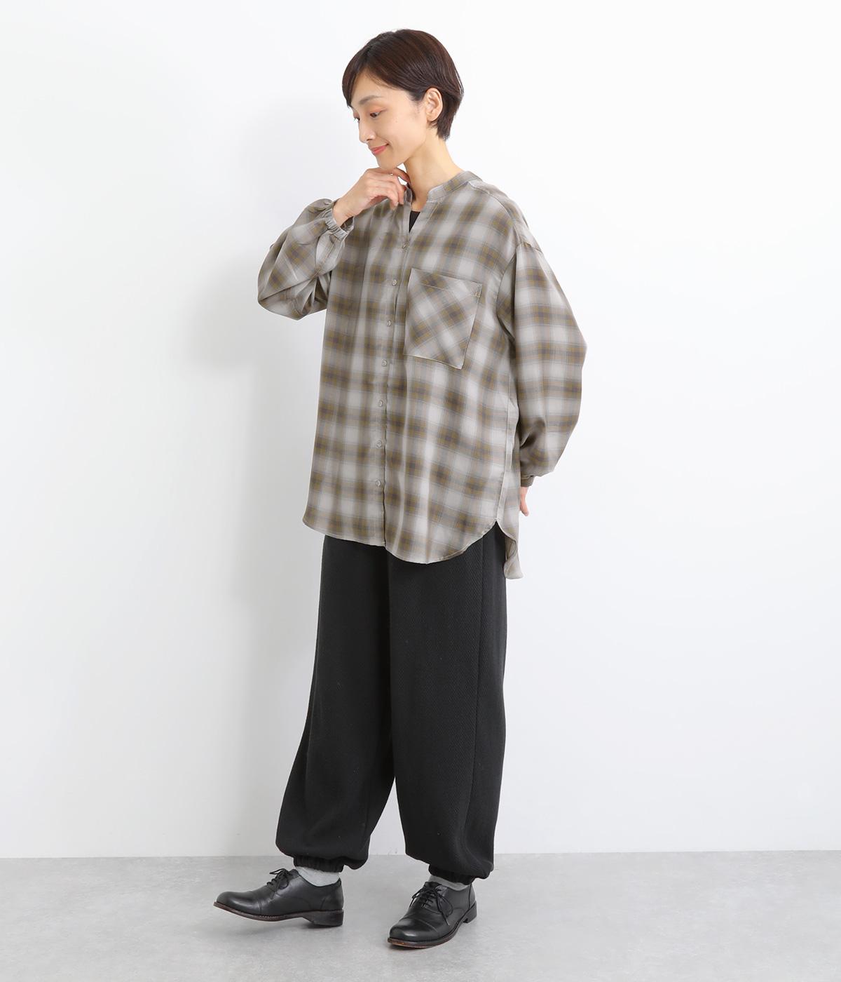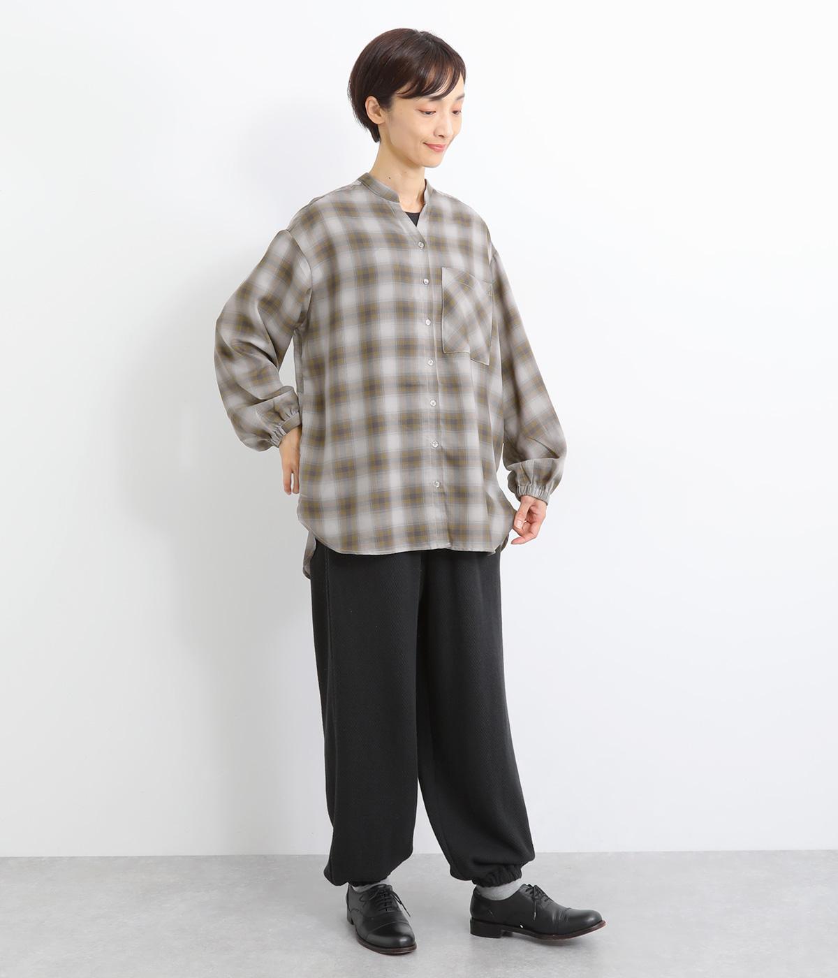 シンプルなスキッパーチュニックでインナー使いもしやすいよう、着丈を長めにしています。袖口は袖下の半分がゴム仕様になっており、楽に袖丈調整ができるのがポイントに。後ろ身頃にはタックをあしらって、着心地のよさを高めています。