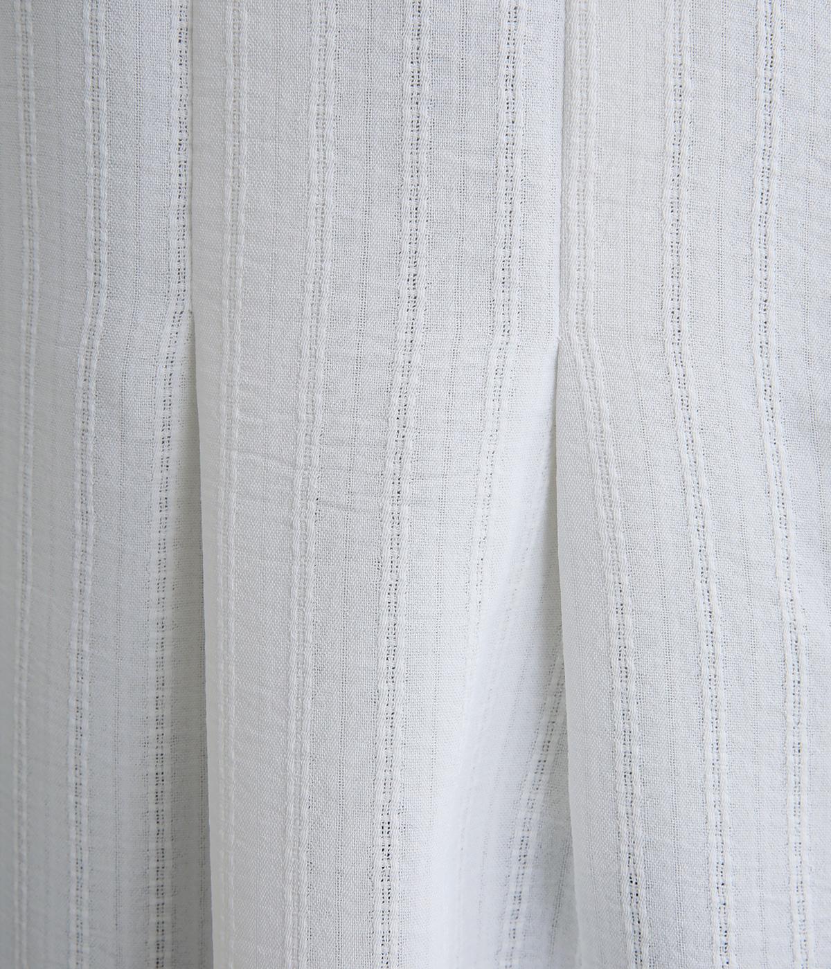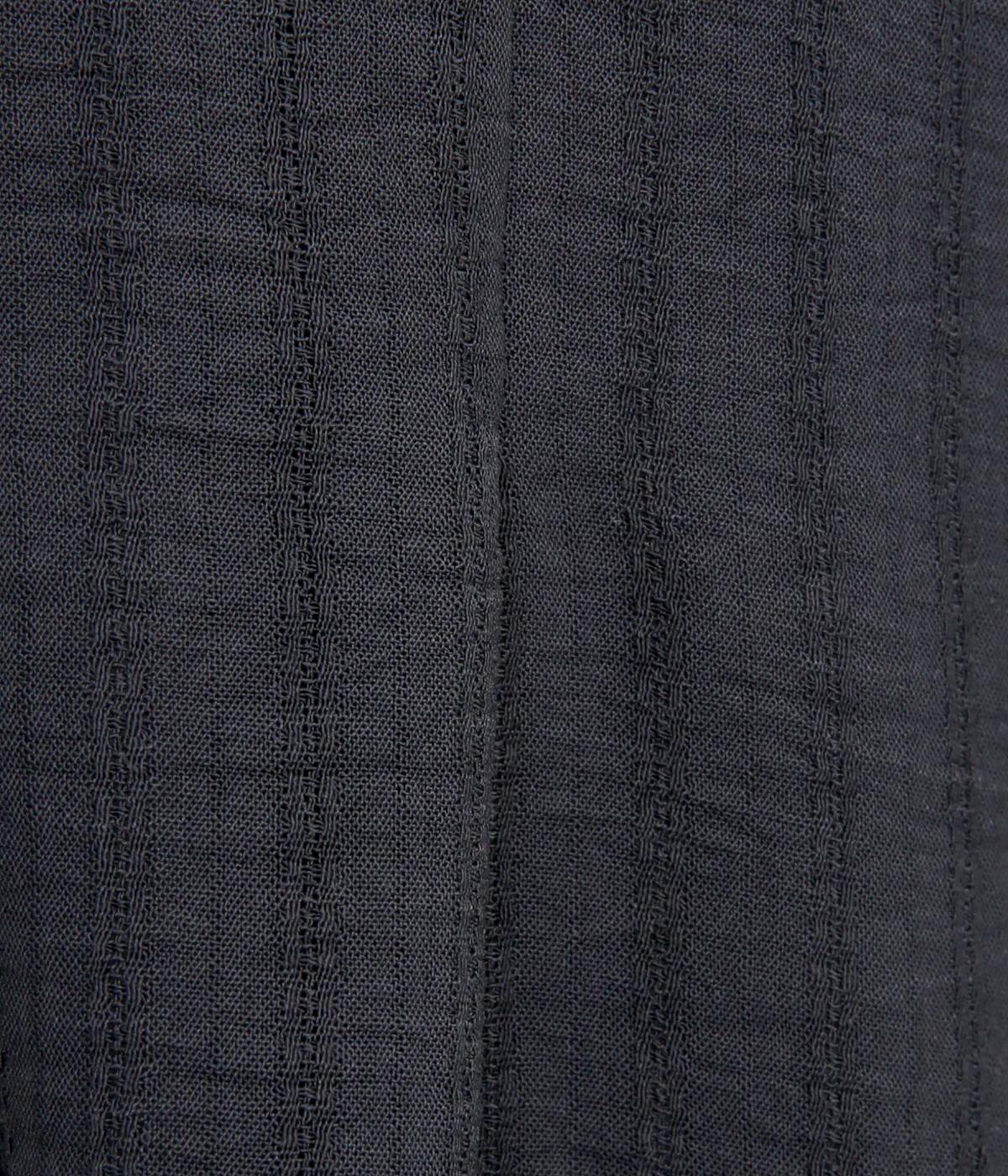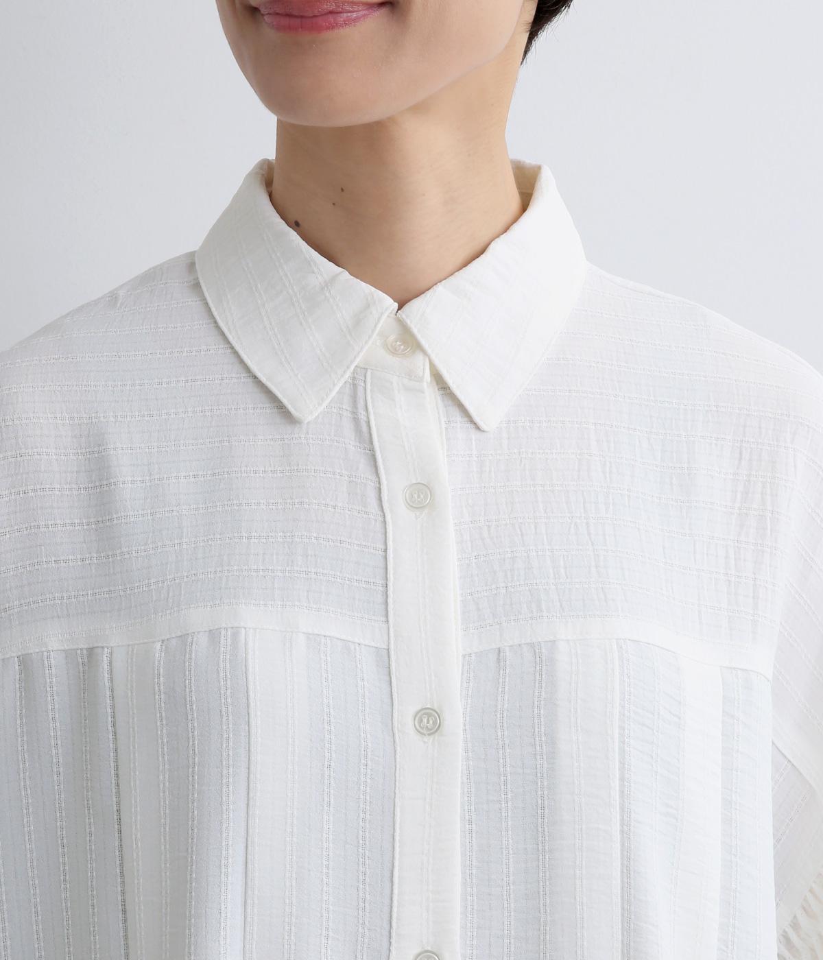縦ストライプに編み柄が入っている、合繊カラミ生地を使用しました。さらりとしたしなやかな肌ざわりで、軽い着心地が特徴です。