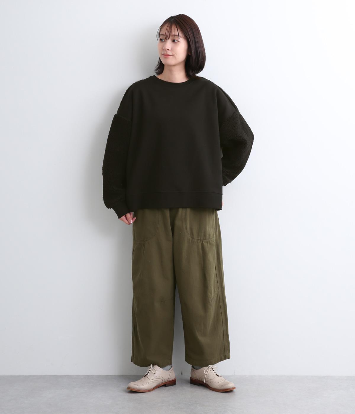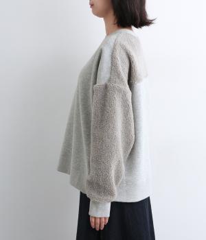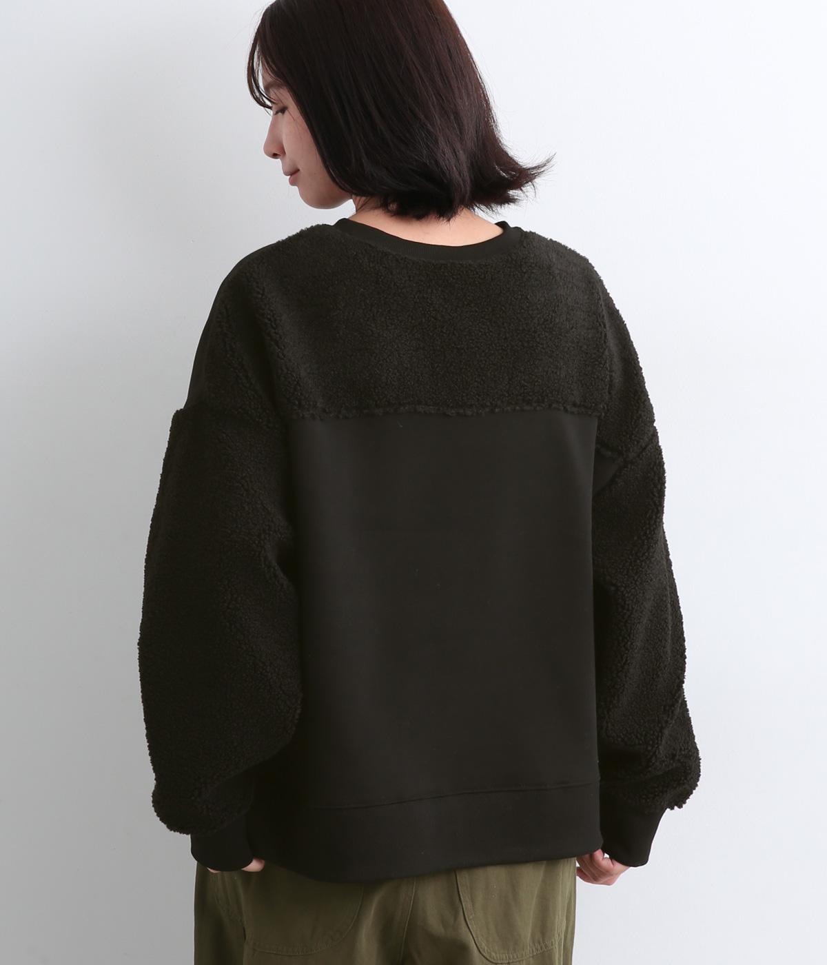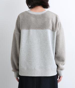 袖からバックサイドにかけて、ボア仕立てのデザインに仕上げた、おしゃれなプルオーバー。カジュアルなスウェット生地とのドッキングで、個性が光る一枚になっています。オーバーサイズなので体のラインを拾いにくく、デニムやラフなパンツとも相性抜群。