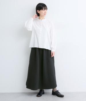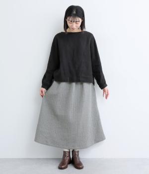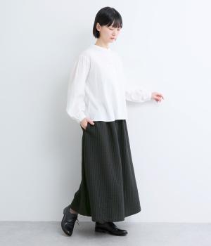 適度に肉感のある生地できれいなフレアシルエットを描きました。優雅さとカジュアル感のバランスが良く、きれいめにもデイリースタイルにも活躍。ウエストはリブのオールゴムに内紐入りでフィット感の調整も可能です。
