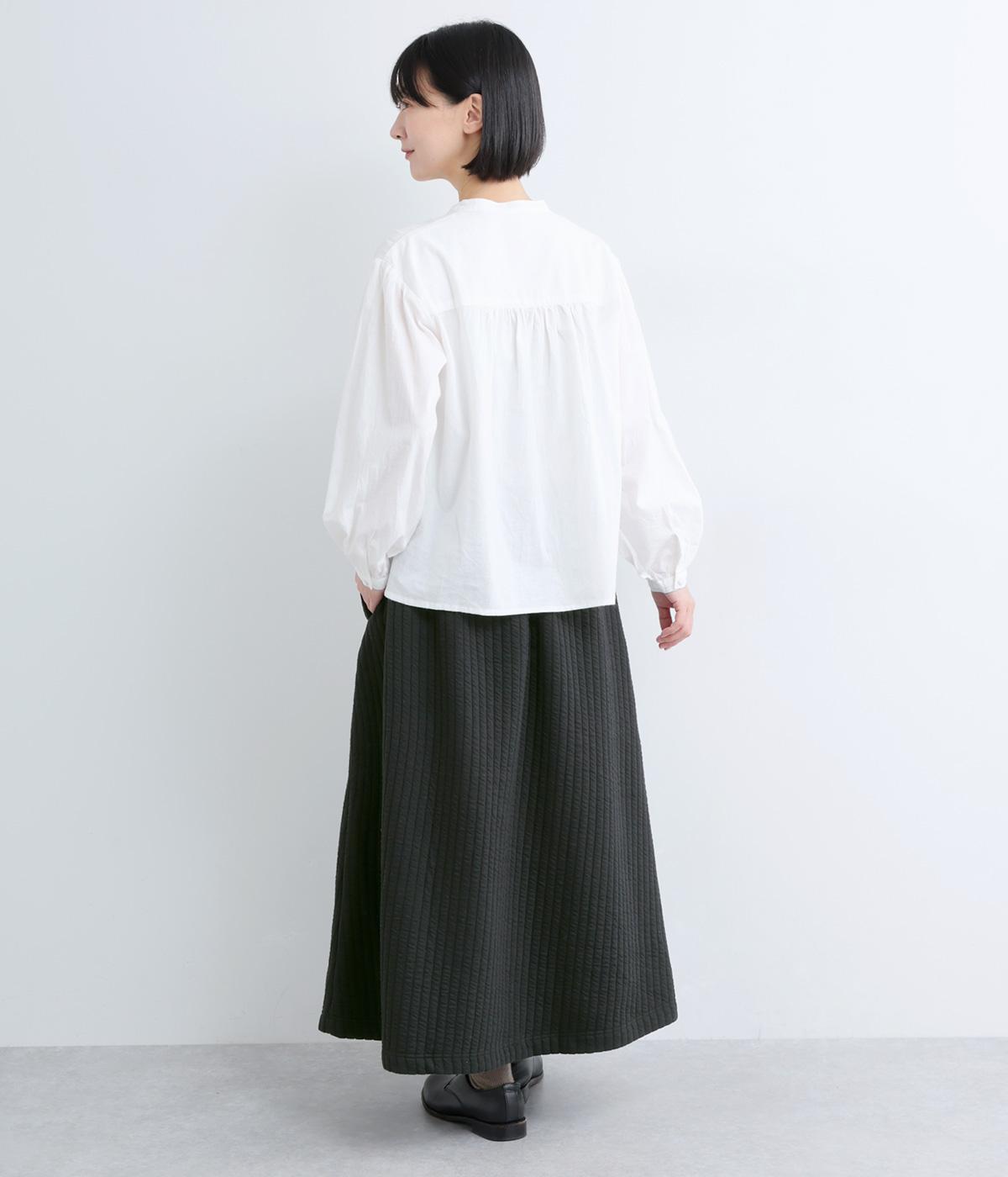 ソフトで肌あたりやわらかなコットン混のキルティング生地を使用しています。ポリエステルなども混ぜて適度な軽さと若干の伸縮性を持たせた着用感のいい仕上がり。