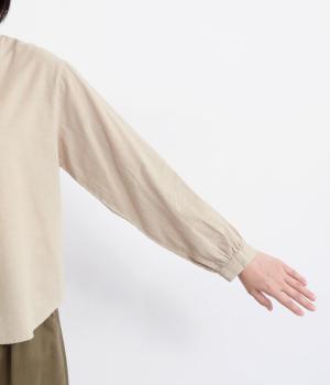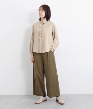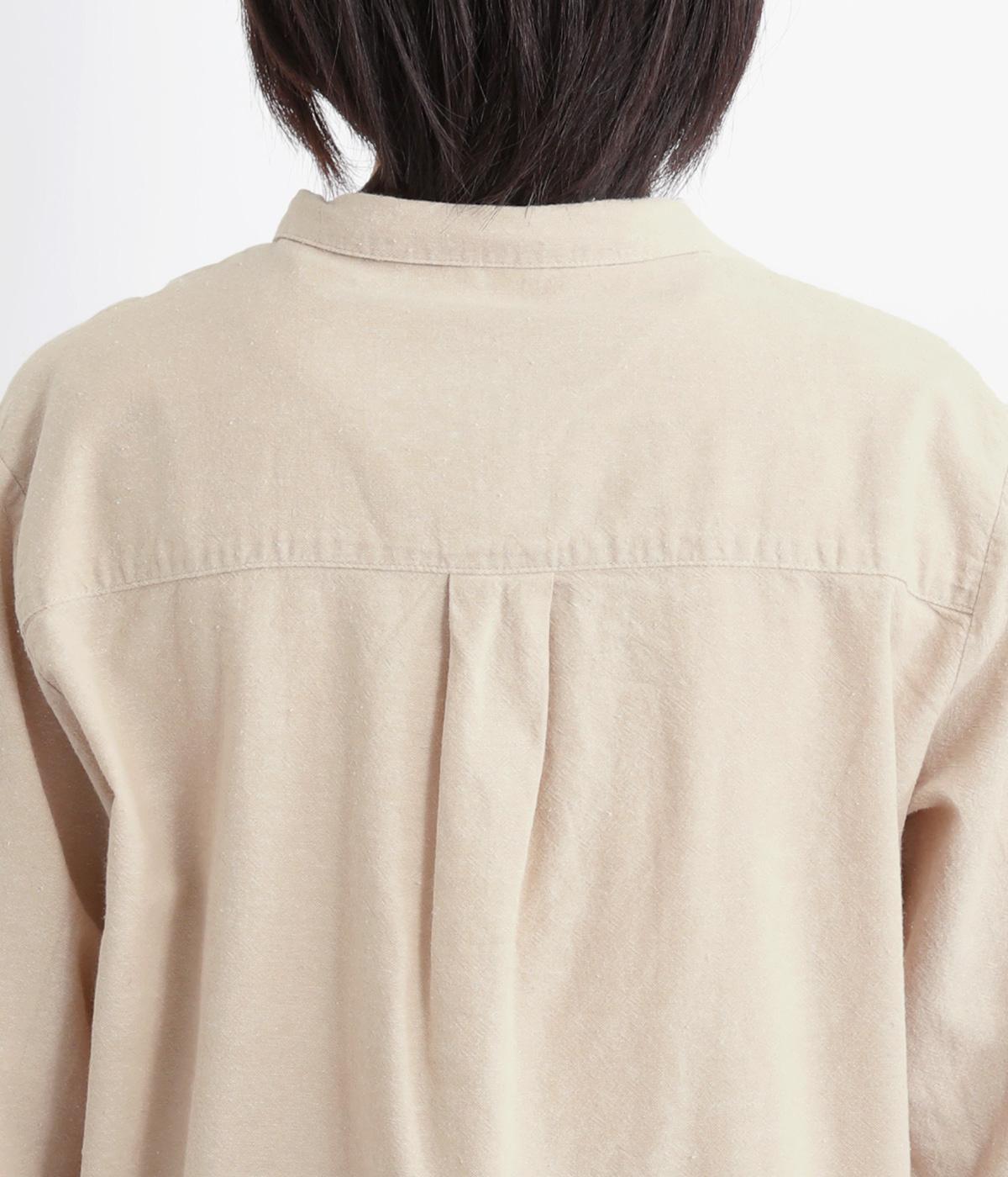 麻のようにシャリっとしたドライな質感が特徴的なコットンオックス生地を採用。適度なコシと薄めの中厚手で風通しがよく、ロングシーズン快適に着用できます。