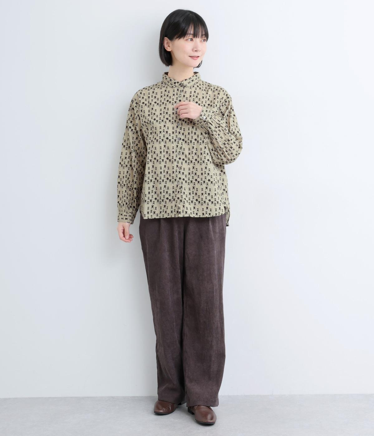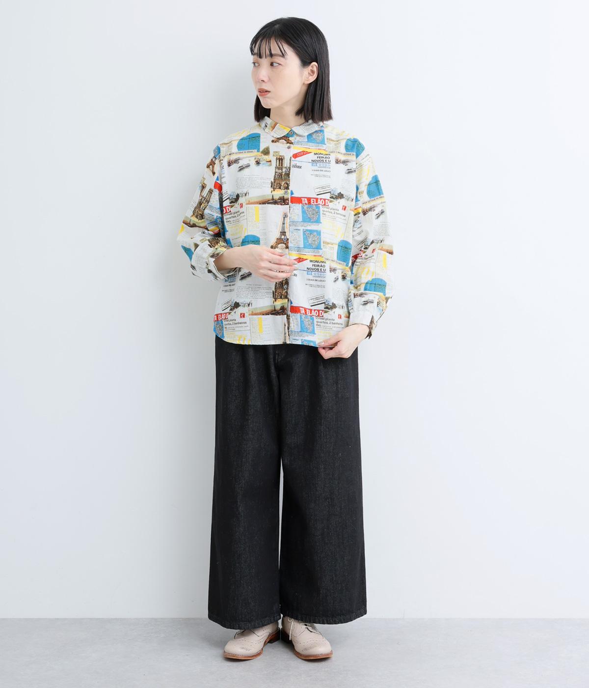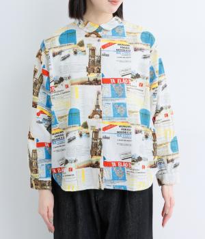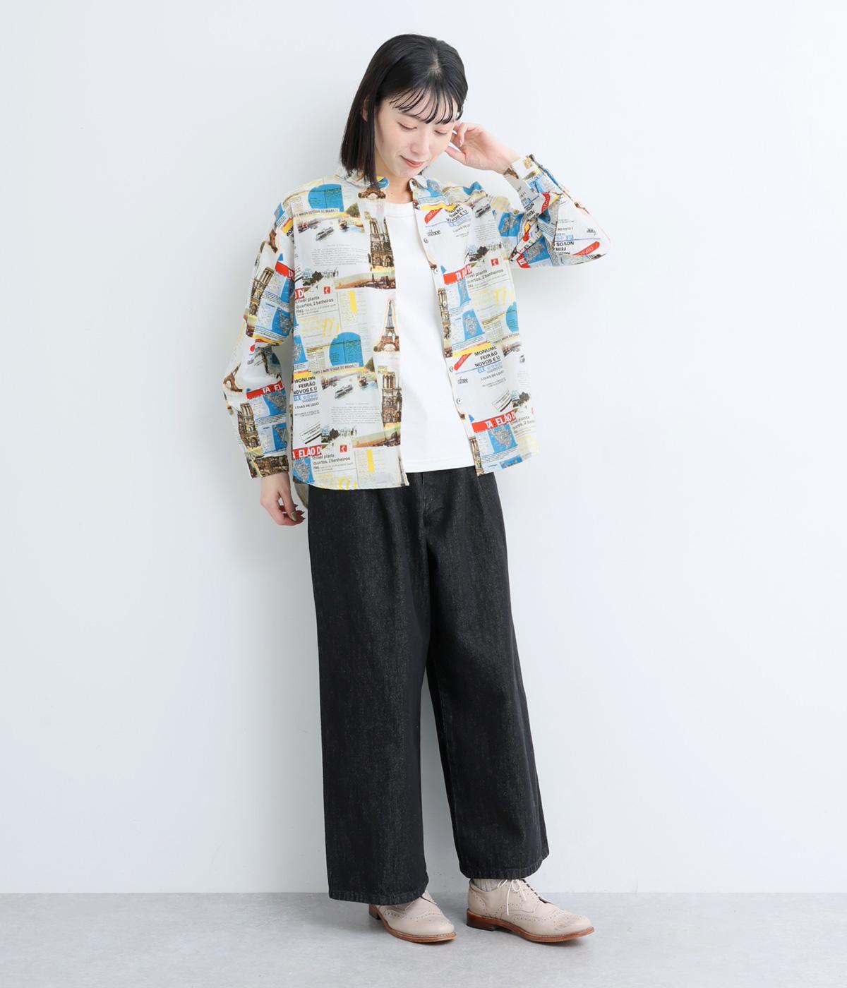 ベーシックなレギュラータイプなのでスタイリングしやすく、それでいて総柄プリントが着こなしのポイントになる一枚。チビ襟で顔まわりはすっきりと。後ろ着丈をやや長めにしているので、ラフなトップスアウトもさまになります。